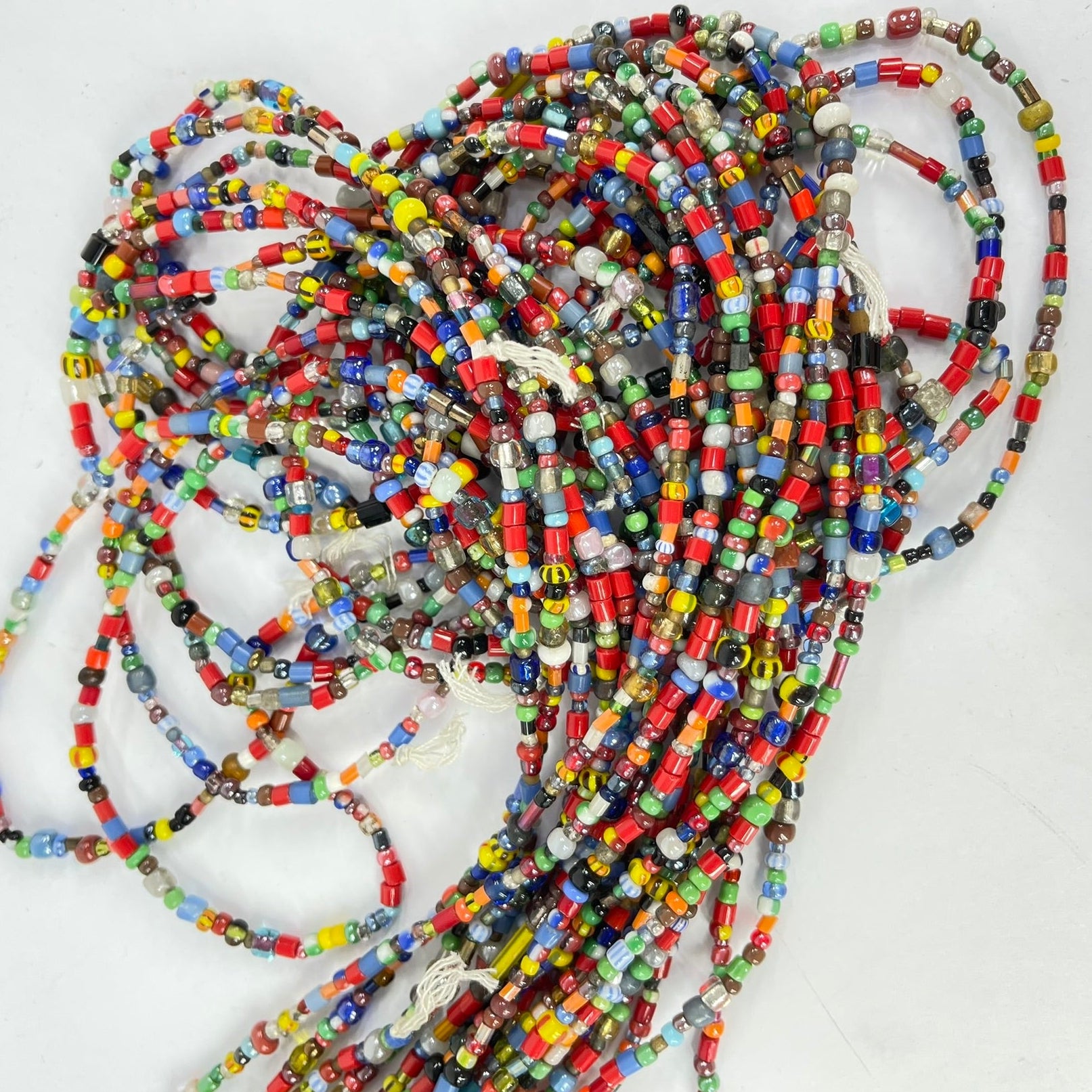 These beautiful strands of Christmas Love Beads—sometimes known simply as Love Beads—are a classic and highly collectible form of African trade bead. Produced in Europe (most commonly in Venice or Bohemia) during the late 19th to early 20th century, these beads traveled through the African trade routes and became treasured ornaments across West and East Africa.