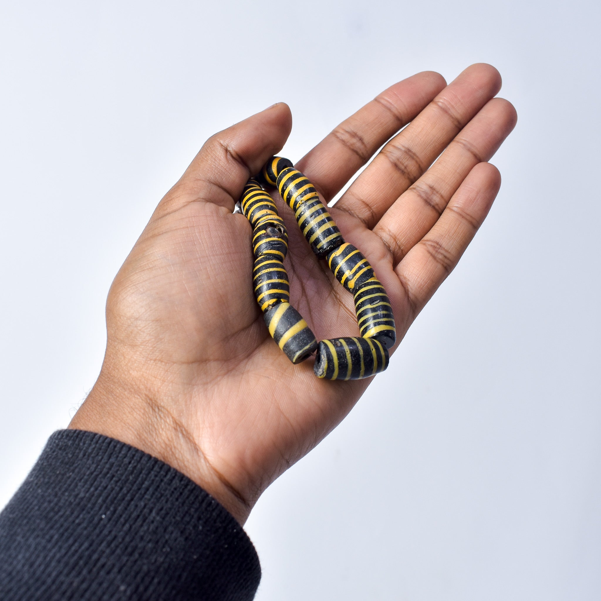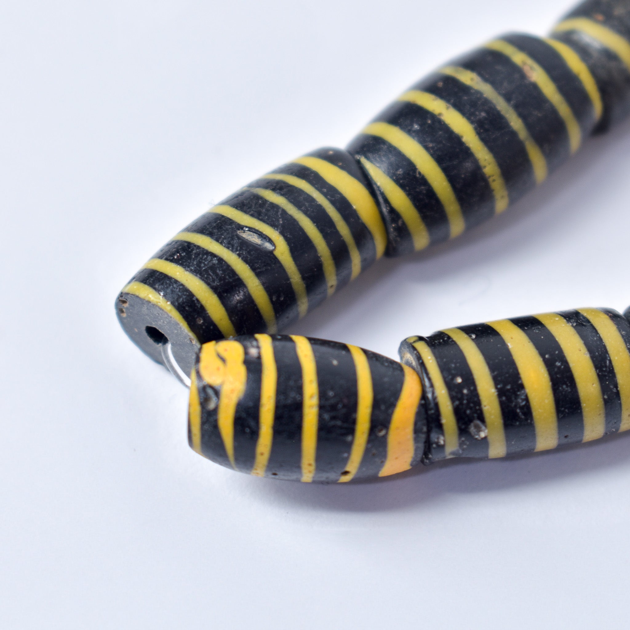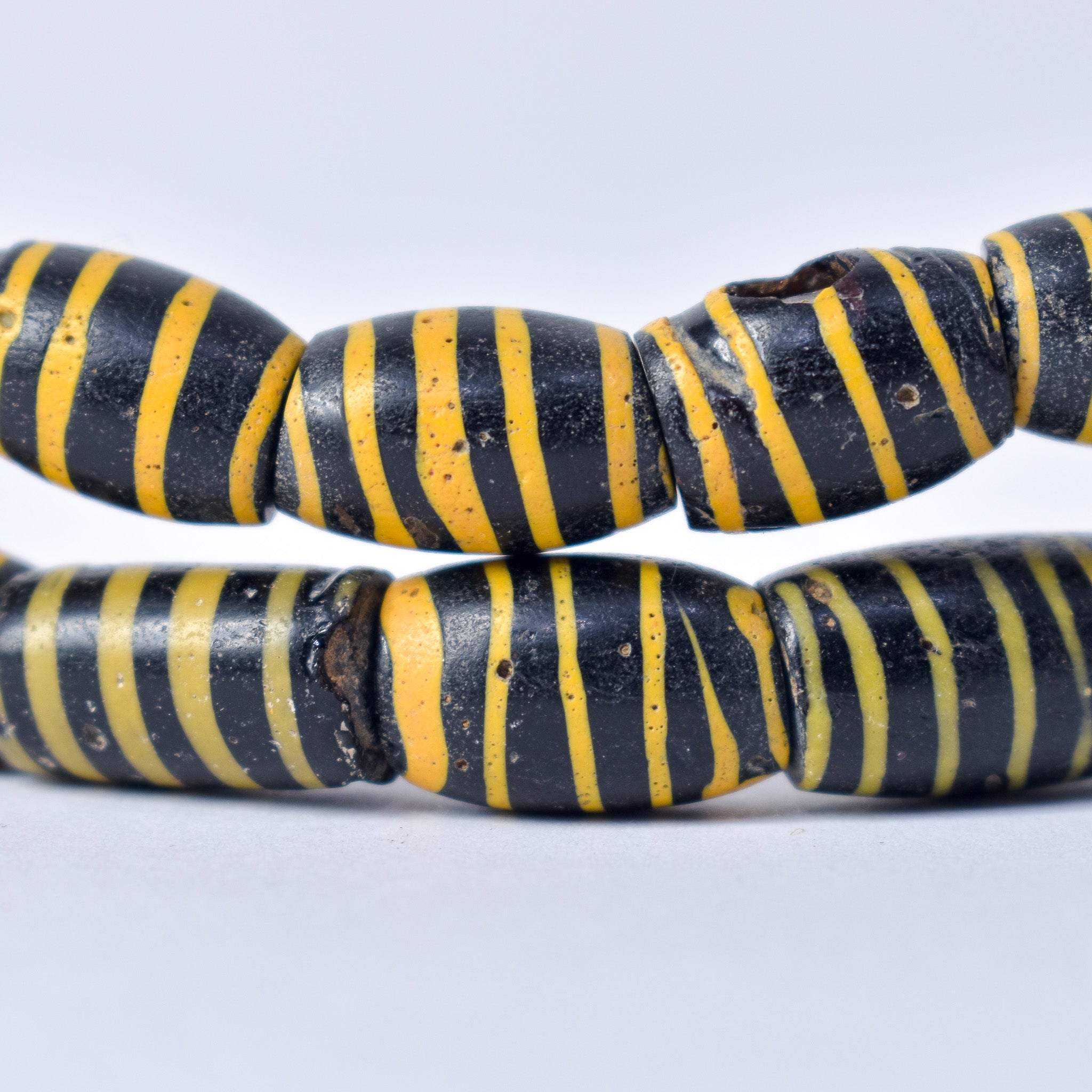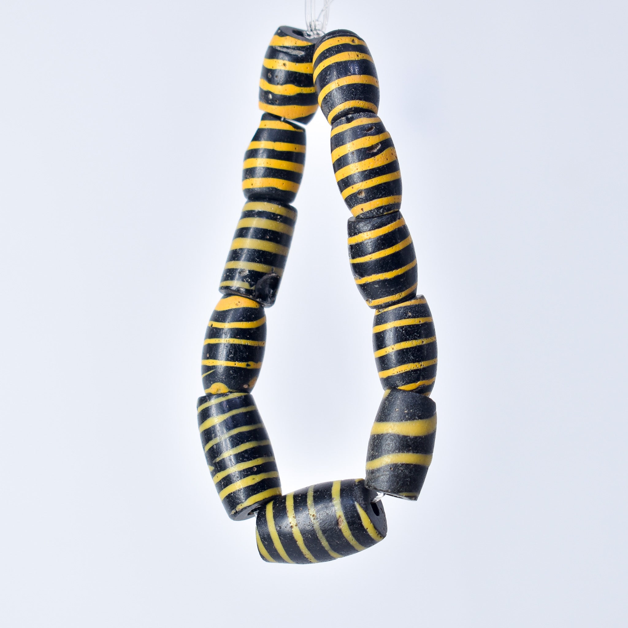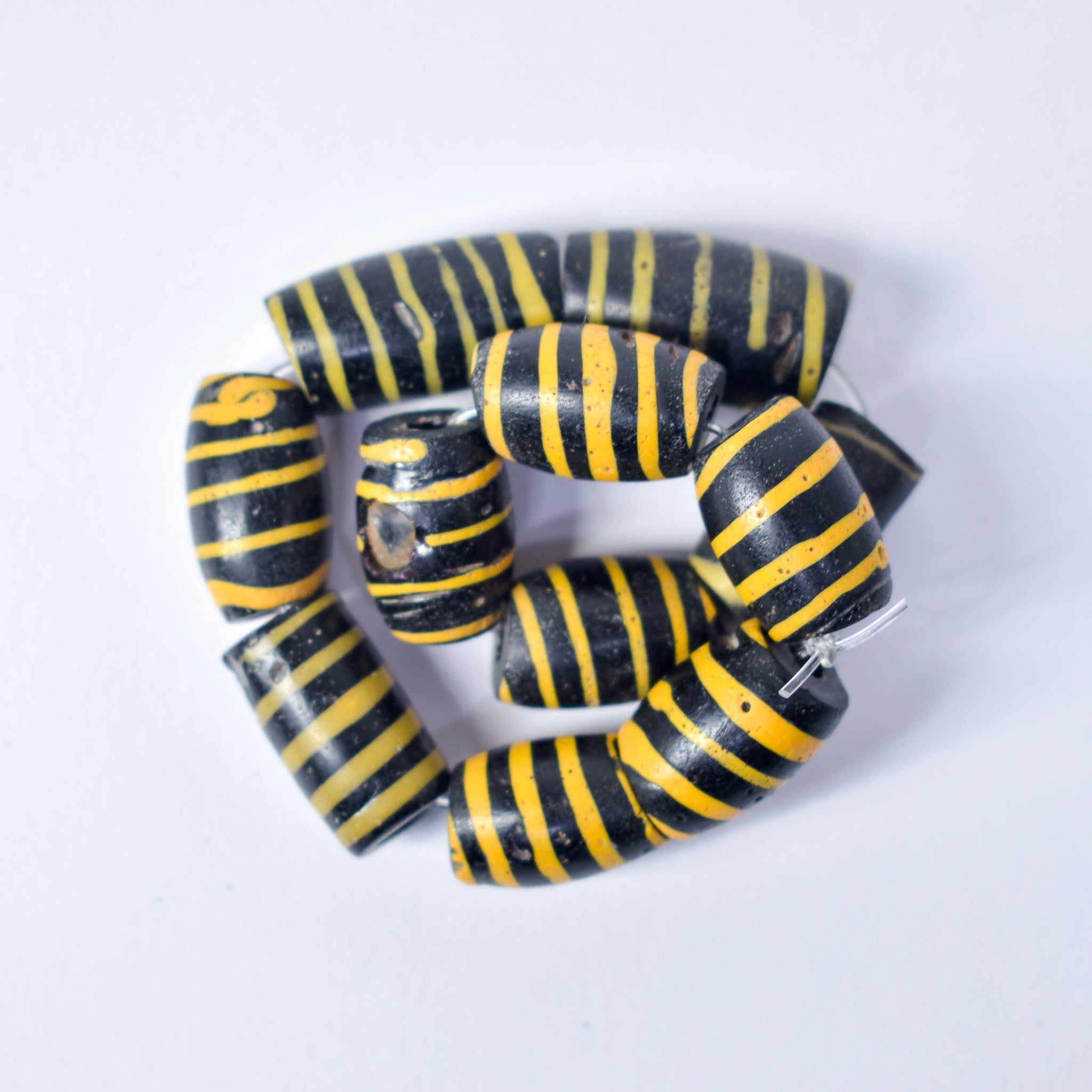 "Trade Beads" refer to beads primarily produced in Venice, Bohemia, and other European countries from the late 1400s to the early 1900s, traded in Africa and the Americas. The peak of this trade occurred from the mid-1800s to the early 1900s, with the Venetians dominating production. J.F. Sick and Co. and Moses Lewin Levin played significant roles as bead brokers/importers. The beads gained renewed popularity in the late 1960s when exported from Africa to the U.S. and Europe. The term "Trade Beads" became widely used, and they were also known as "Love Beads" during the Hippie era. As demand grew, specific names like "Russian Blues" and "Dutch Donuts" emerged, contributing to the beads' collectability. Today, these beads are highly sought after, with some styles becoming rarer as African traders venture deeper into the continent to find them.