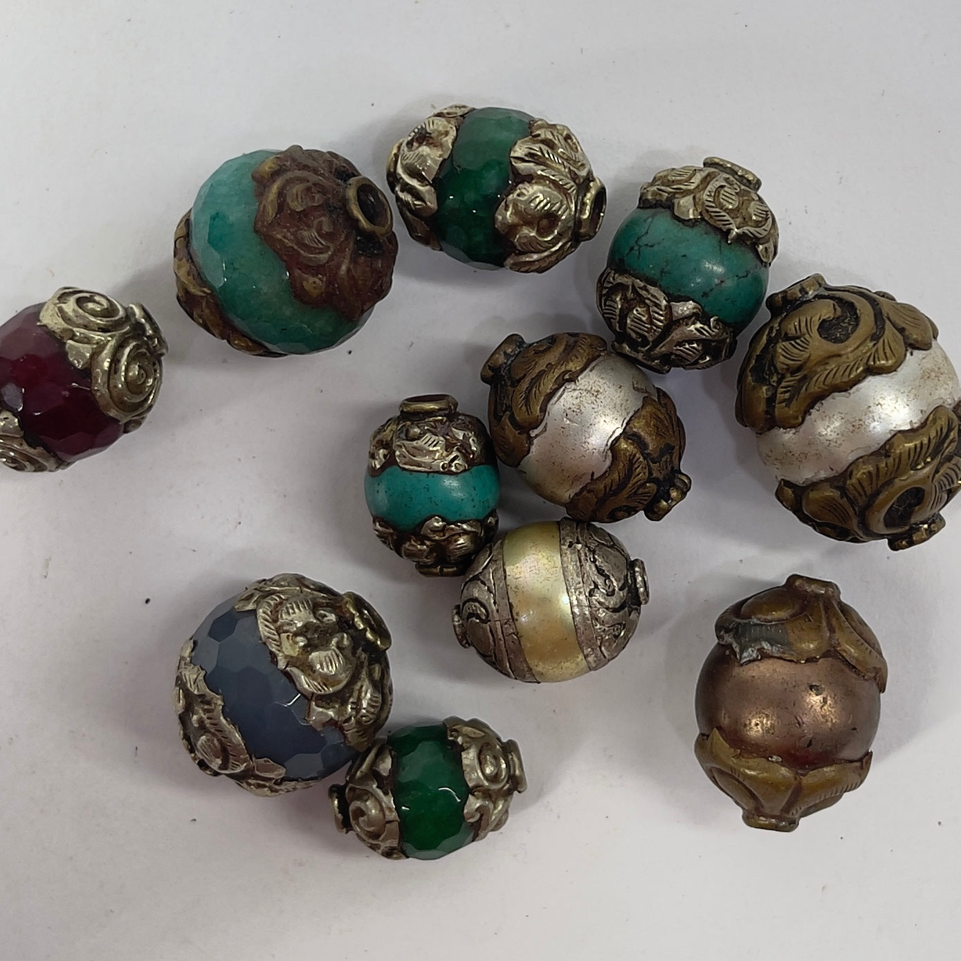 11 Loose Tibetan Repoussé Beads