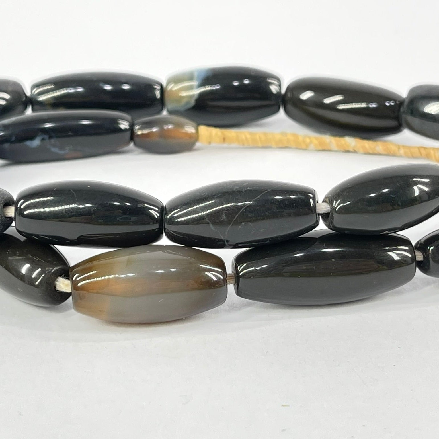 These strands are not intended to be a ready-to-wear necklace. Although the strands can be worn "as is," the raffia holding it together is not durable and may break with use. For this reason, we recommend that you restring the beads before wearing them.