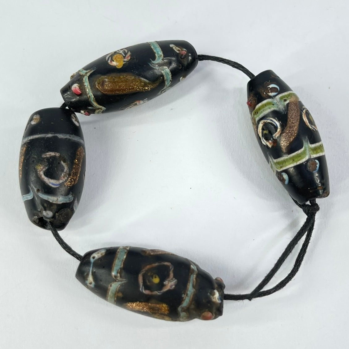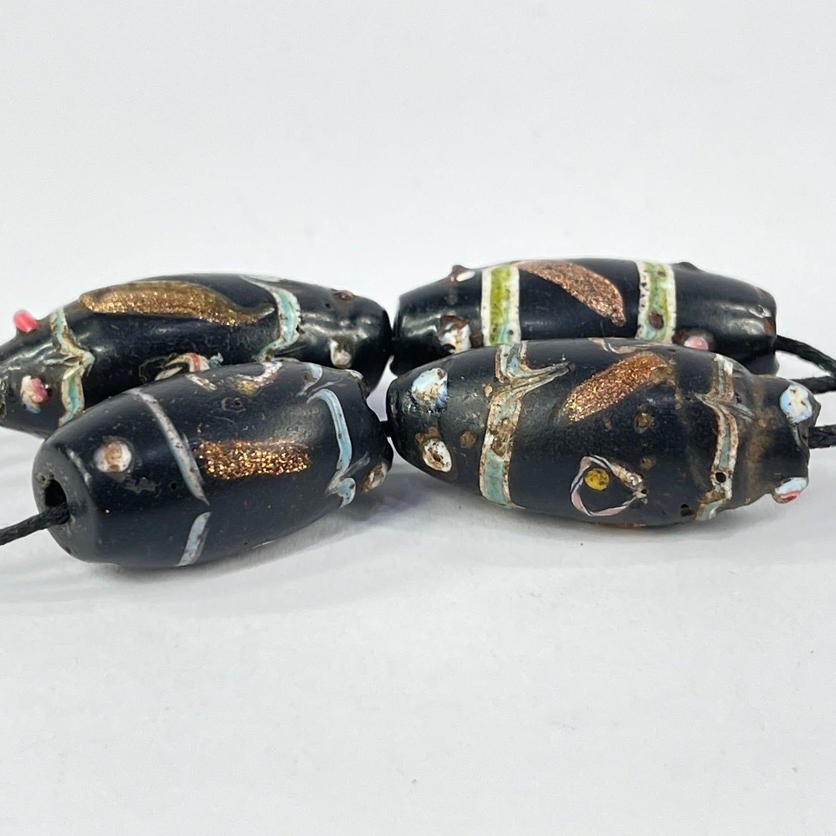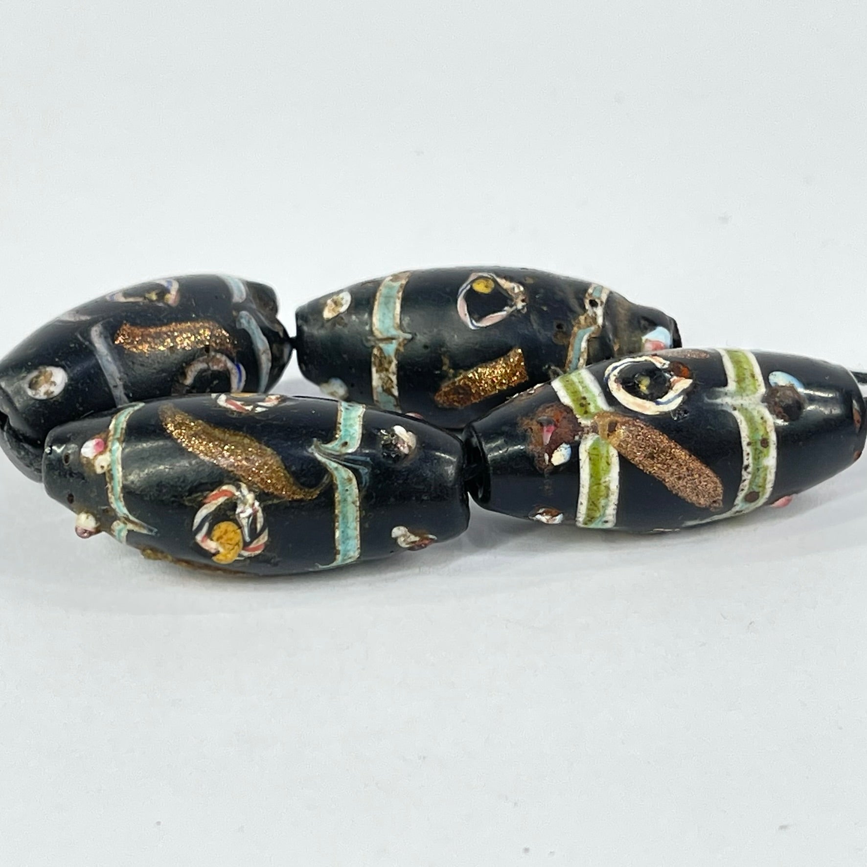 4 Aventurine Floral Venetian Black Trade Beads
