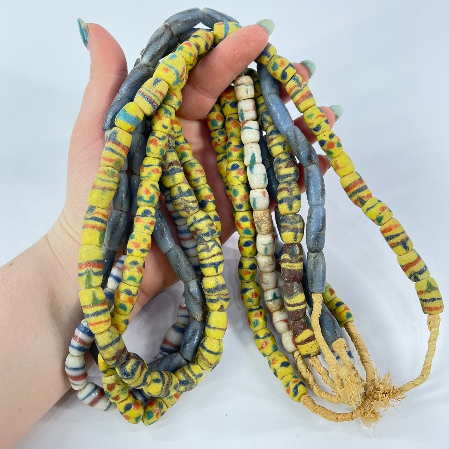 4 Strands Multicolored Krobo Powder Glass Beads 31 Inch