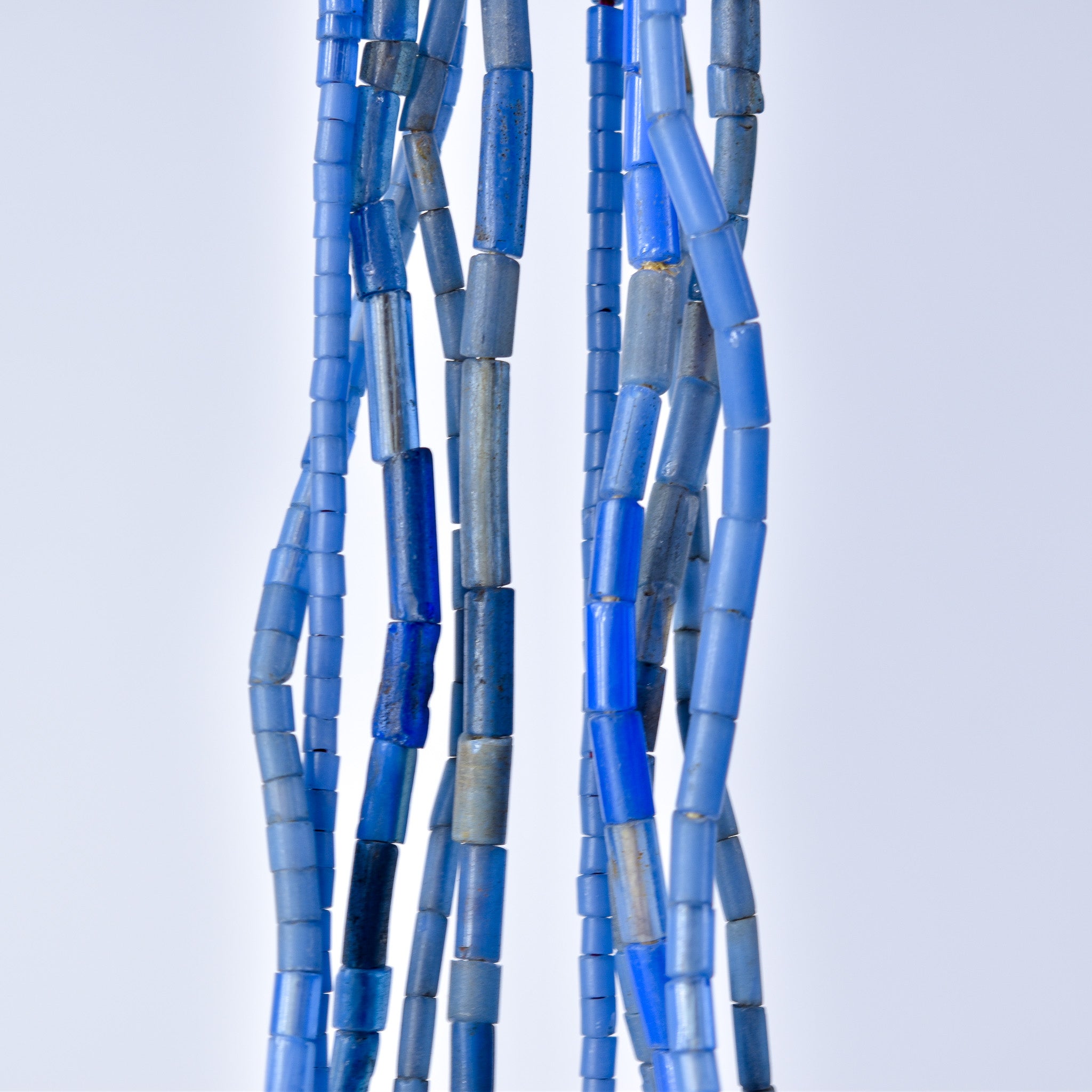 5 Strands Bida Glass Blue Trade Beads Nigeria