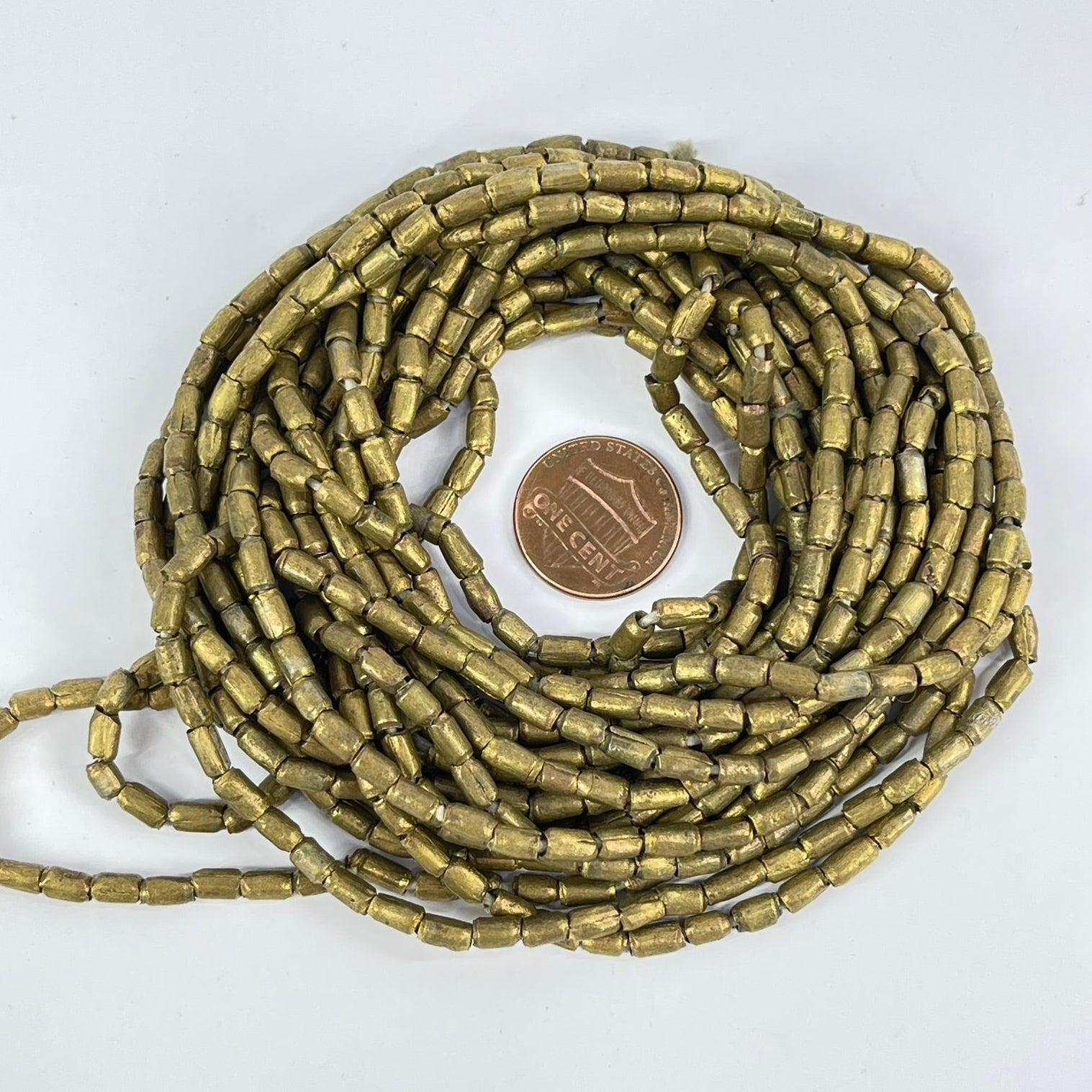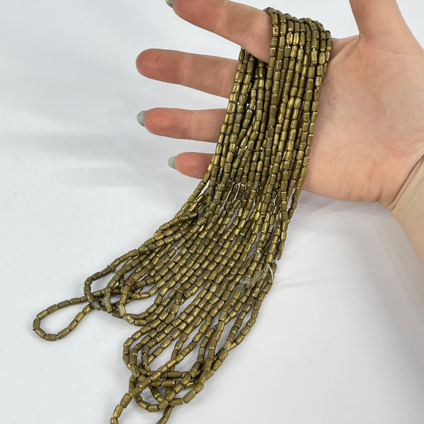 5 Strands Brass Color Beads Ethiopia 32 Inch