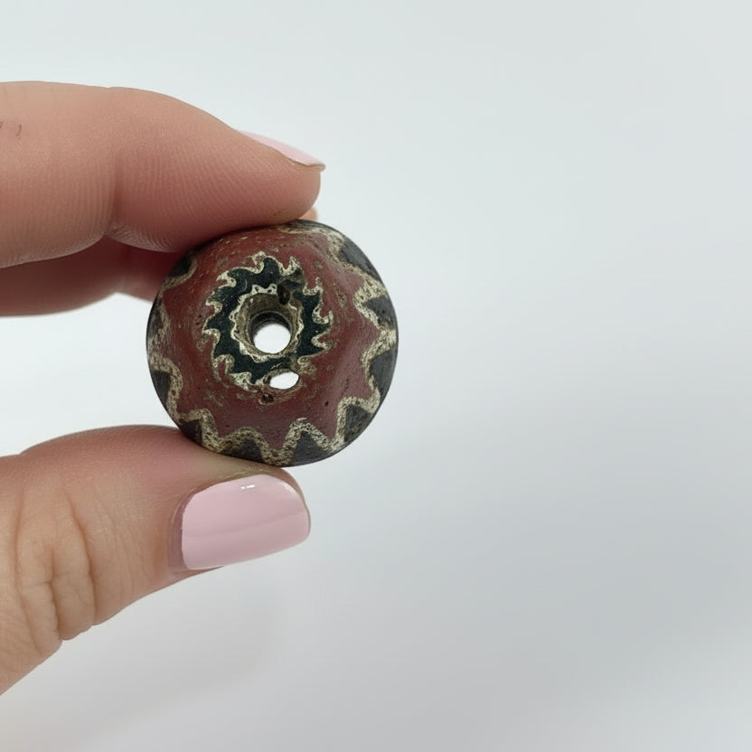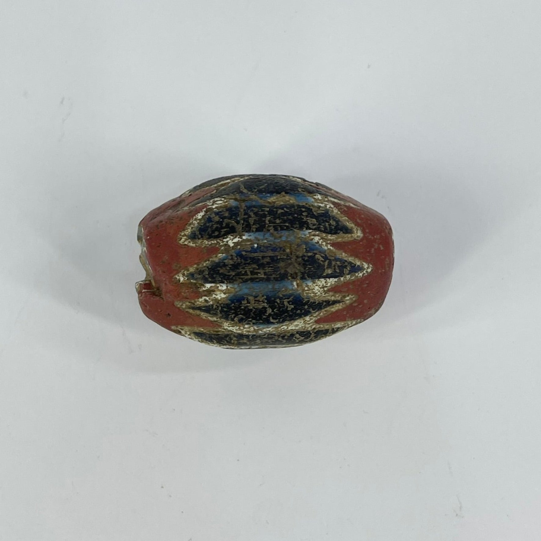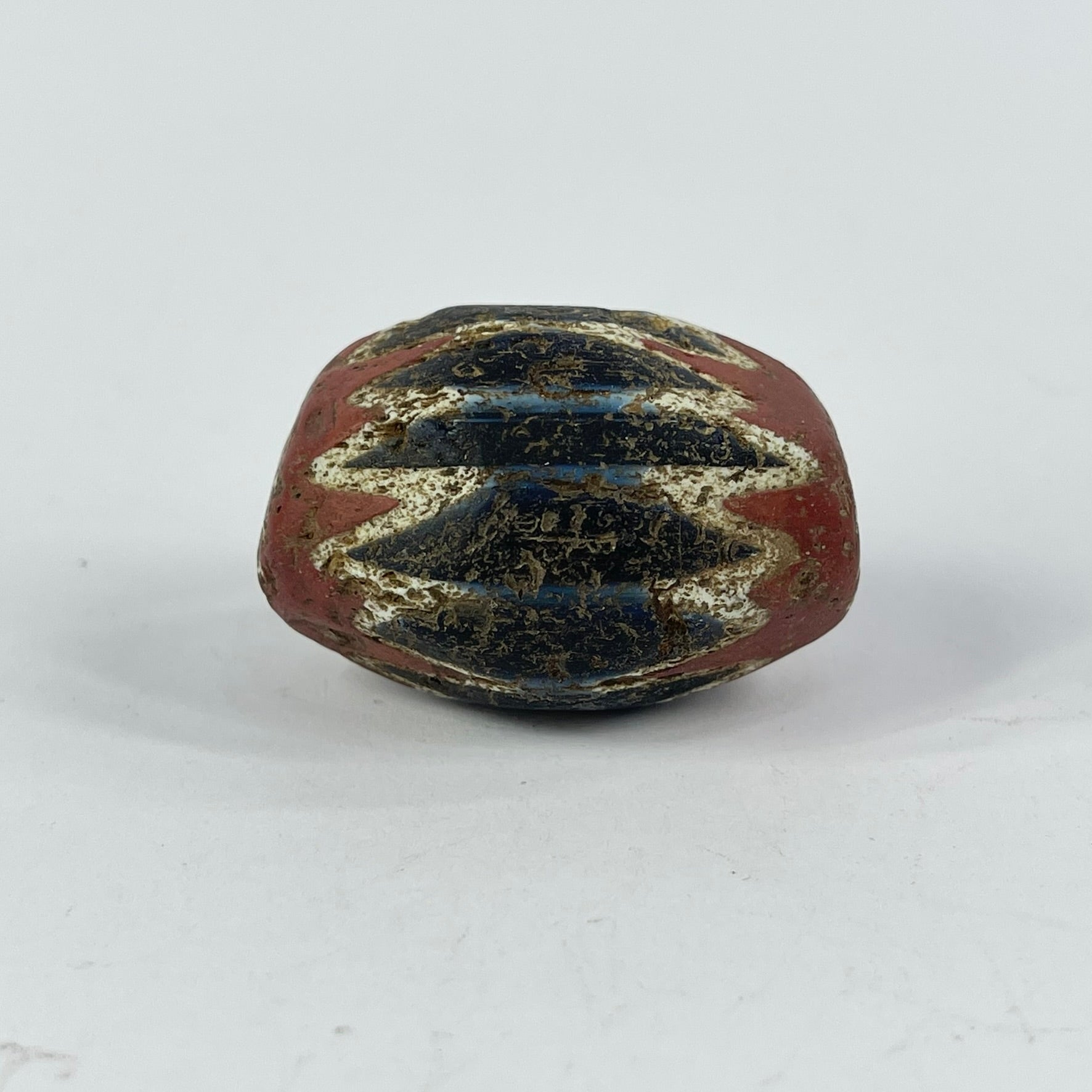 Highly prized in the African trade, chevron beads became symbols of status and adornment across West Africa. The crisp layered pattern and visible age wear make this a striking example of one of the most iconic trade beads ever produced.