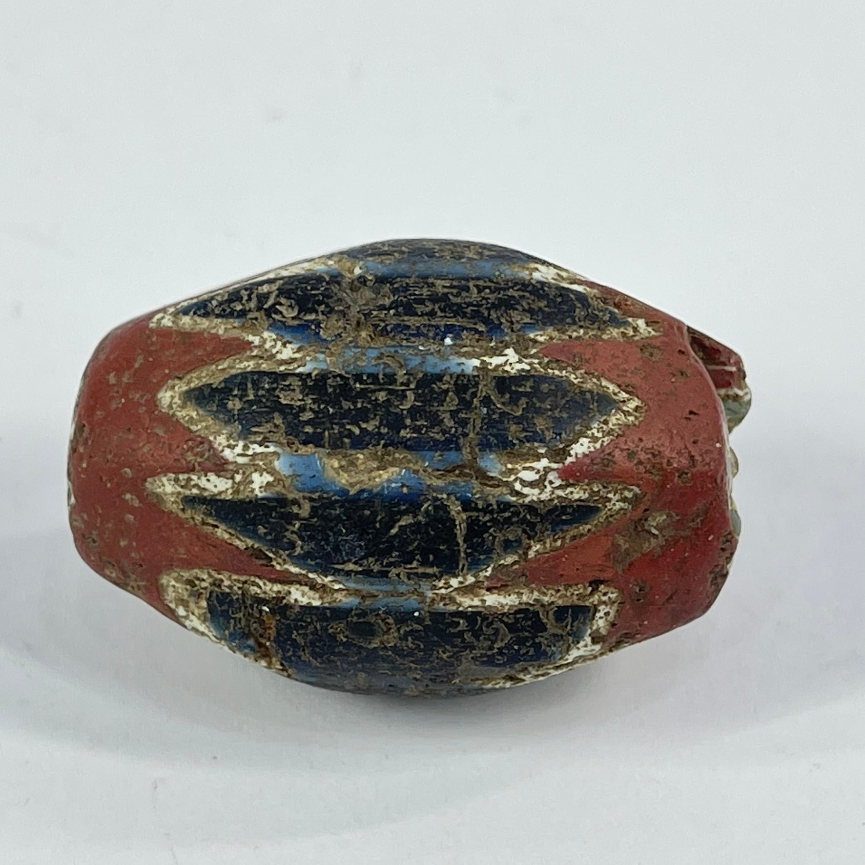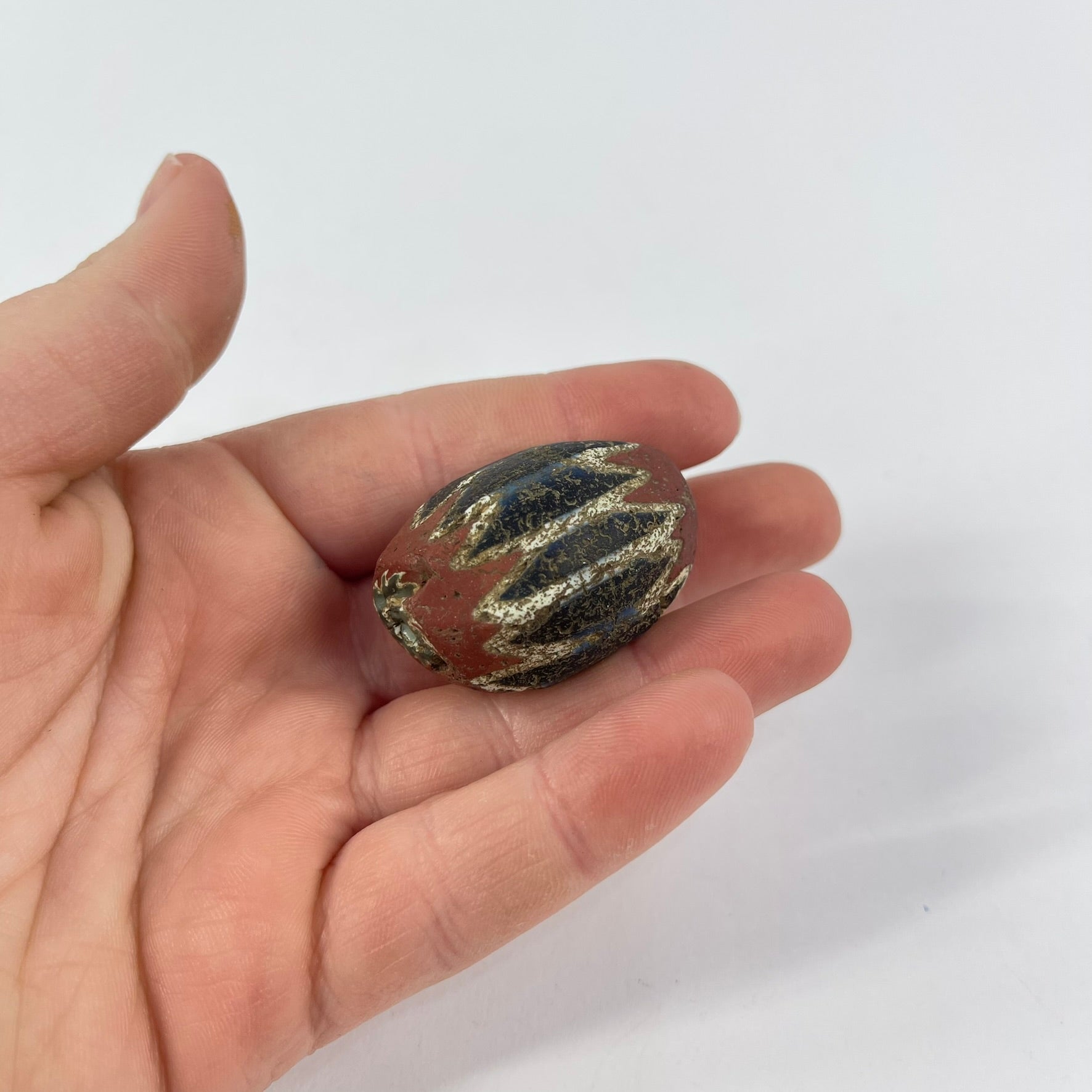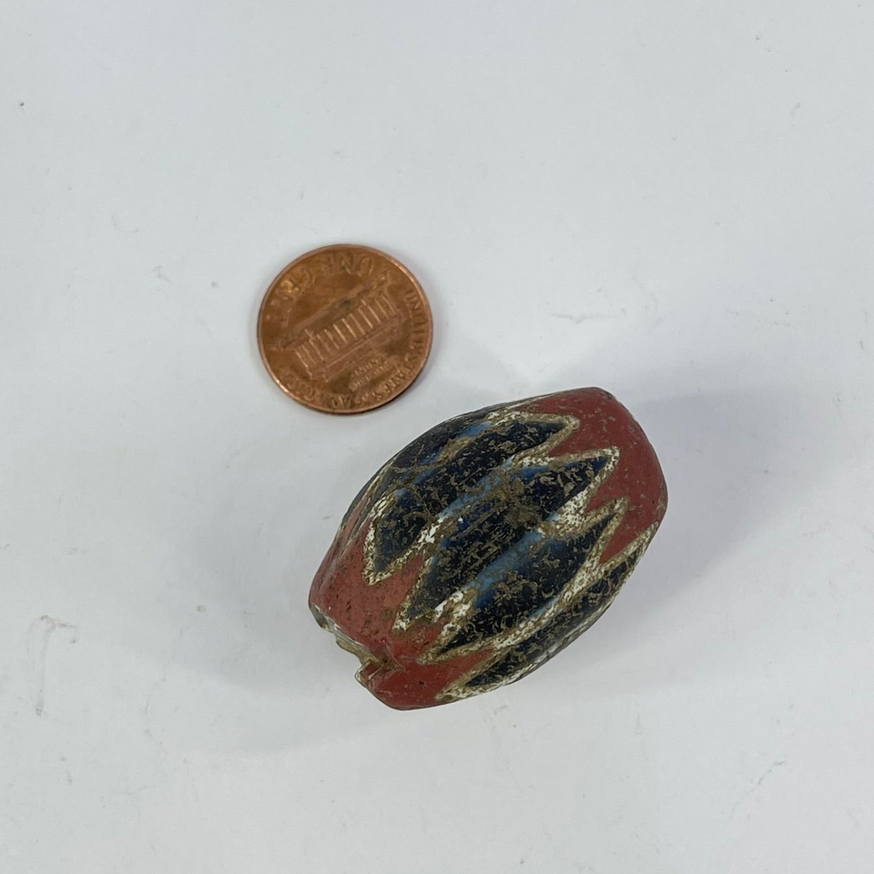 Highly prized in the African trade, chevron beads became symbols of status and adornment across West Africa. The crisp layered pattern and visible age wear make this a striking example of one of the most iconic trade beads ever produced.