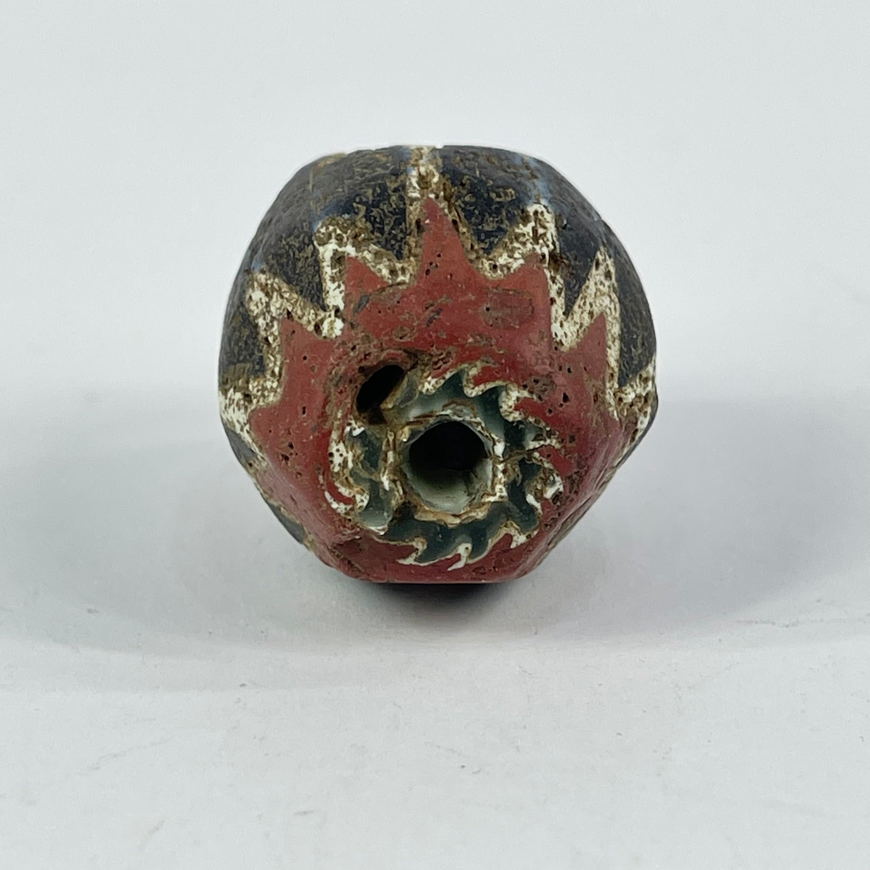 A classic single seven-layer chevron bead, also known as a rosetta bead, featuring the distinctive star pattern revealed at each end. Built from alternating layers of colored glass — traditionally blue, white, red, and green — the bead was created using the complex drawn glass technique perfected in Venice.