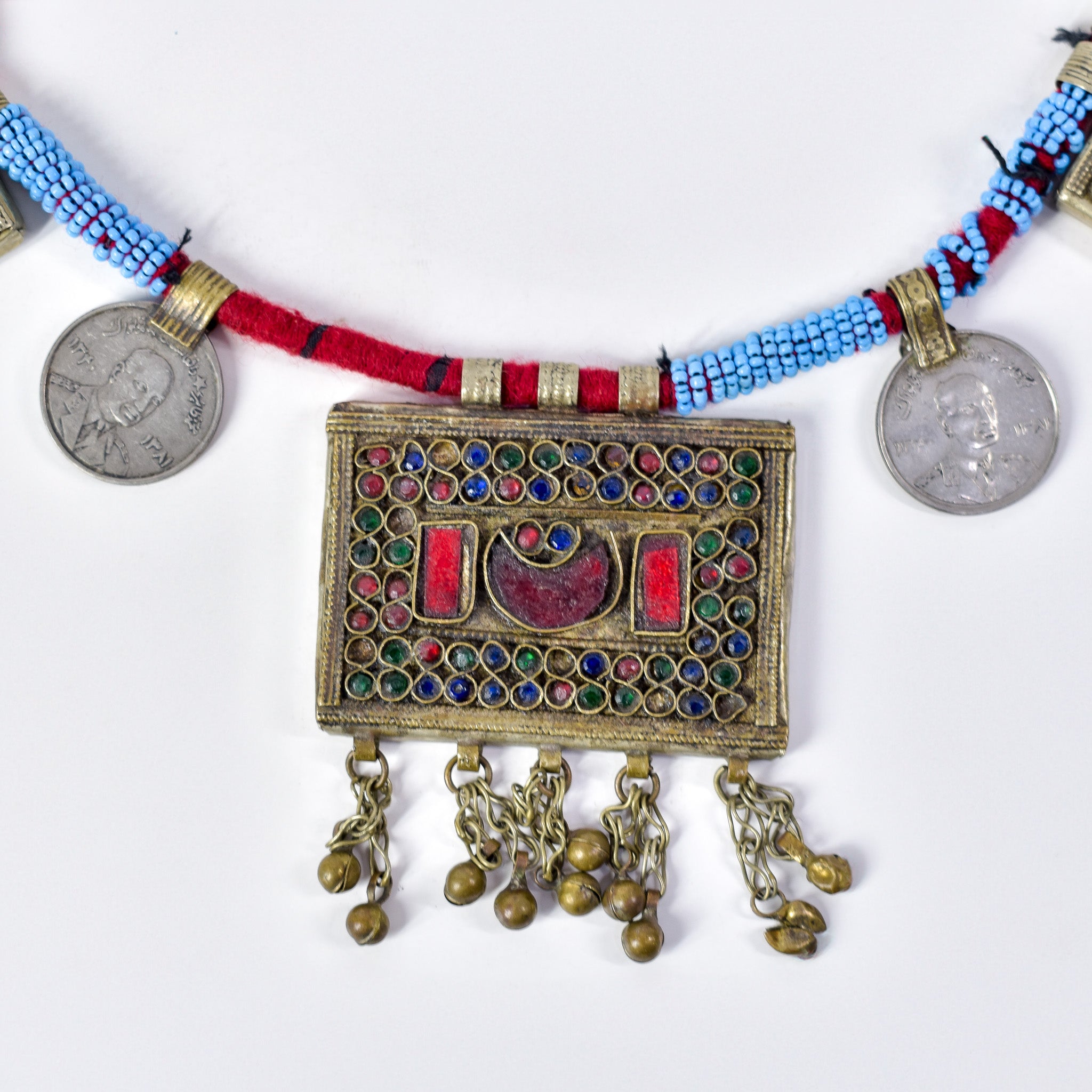 Afghanistan Kuchi Necklace with Rectangular and Coin Pendants