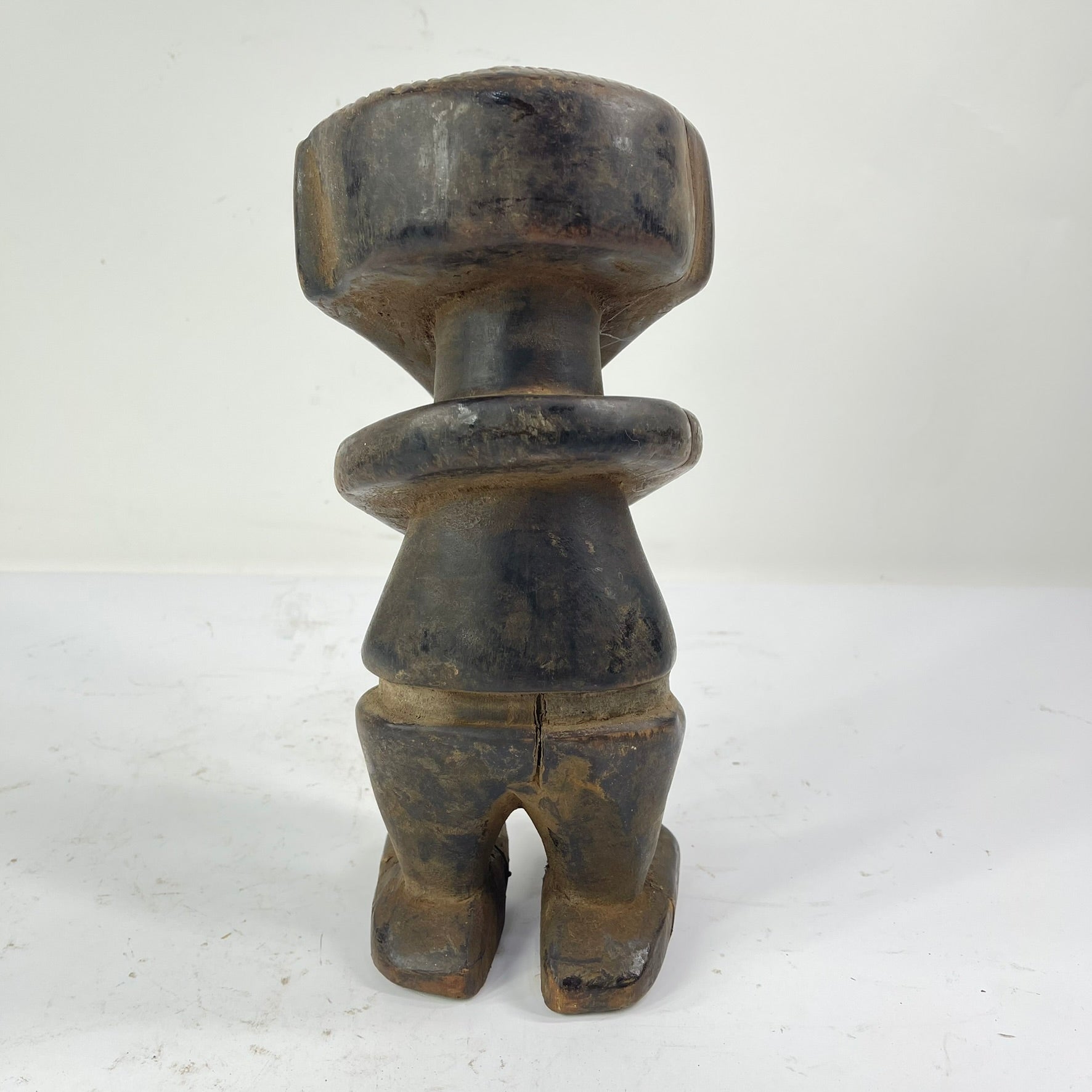 This piece is crafted with intricate detail, representing a male figure. Carved from locally sourced wood, this piece served as a vessel between the physical and spiritual realms and embodied the presence of ancestral spirits within the Azande community.