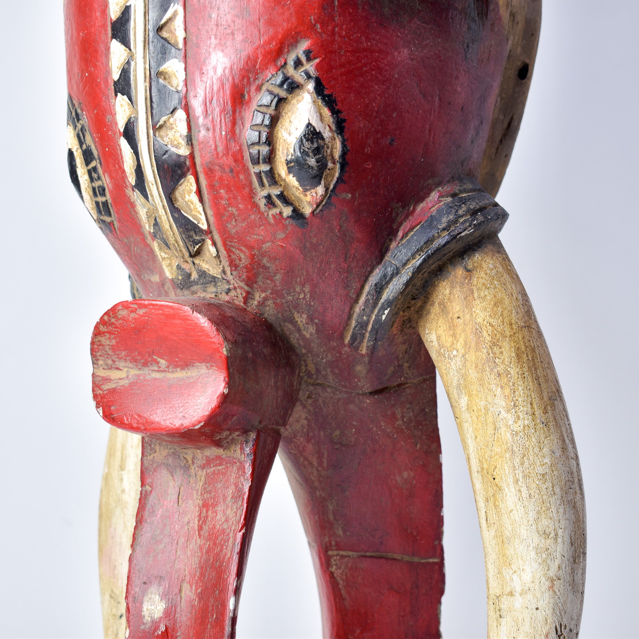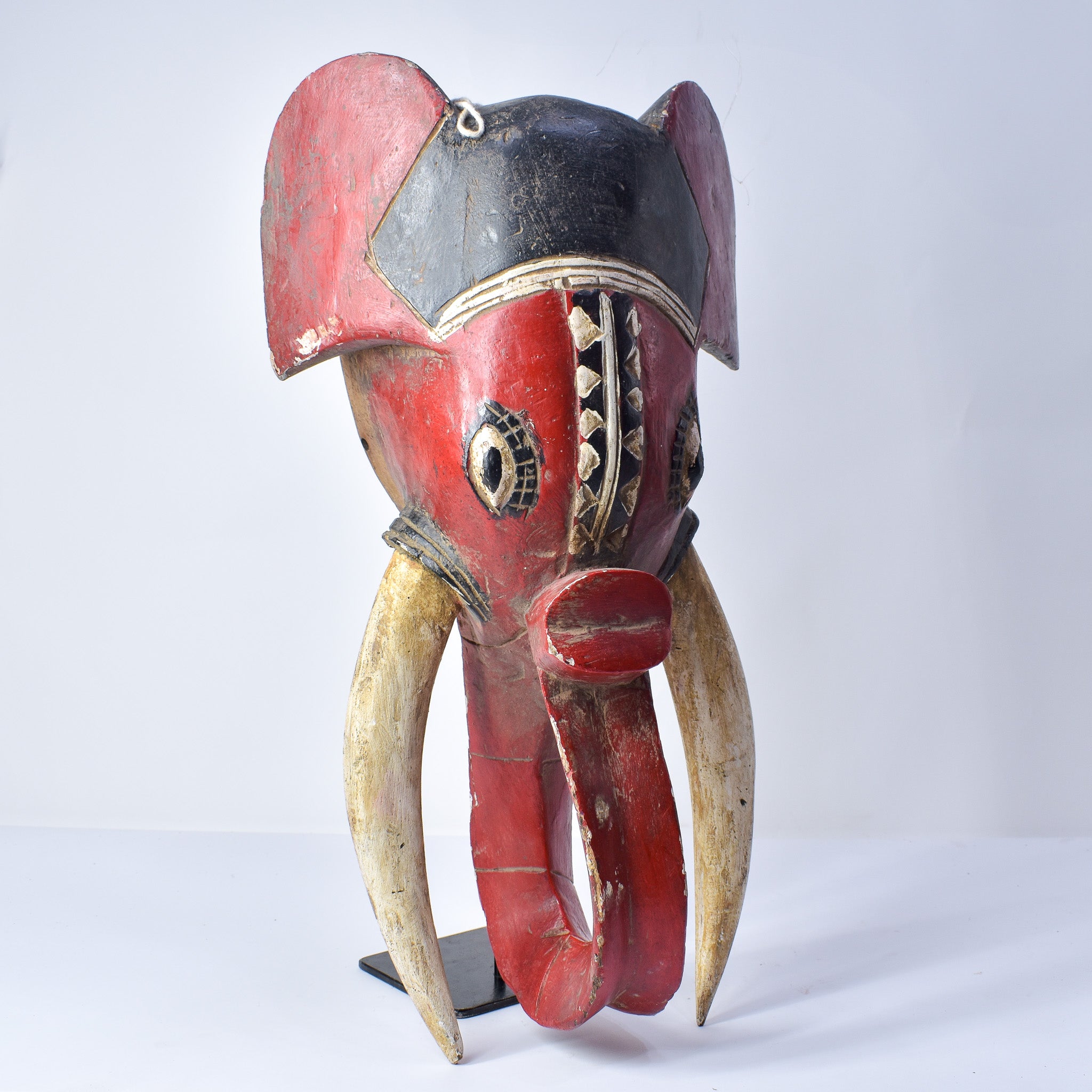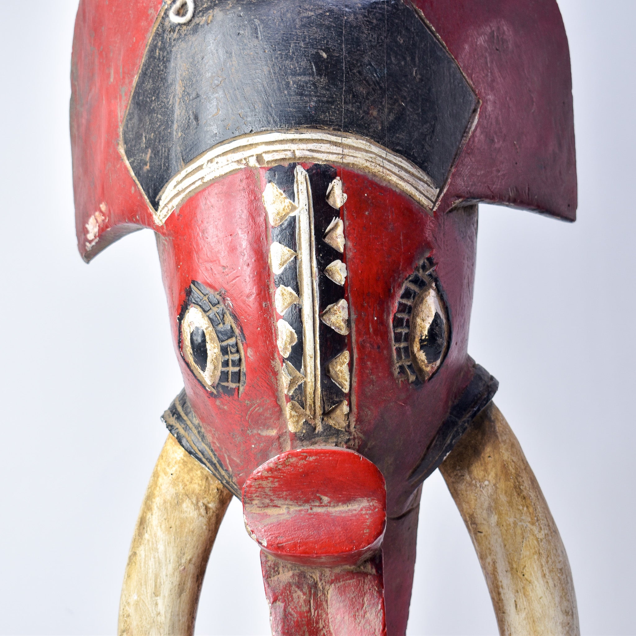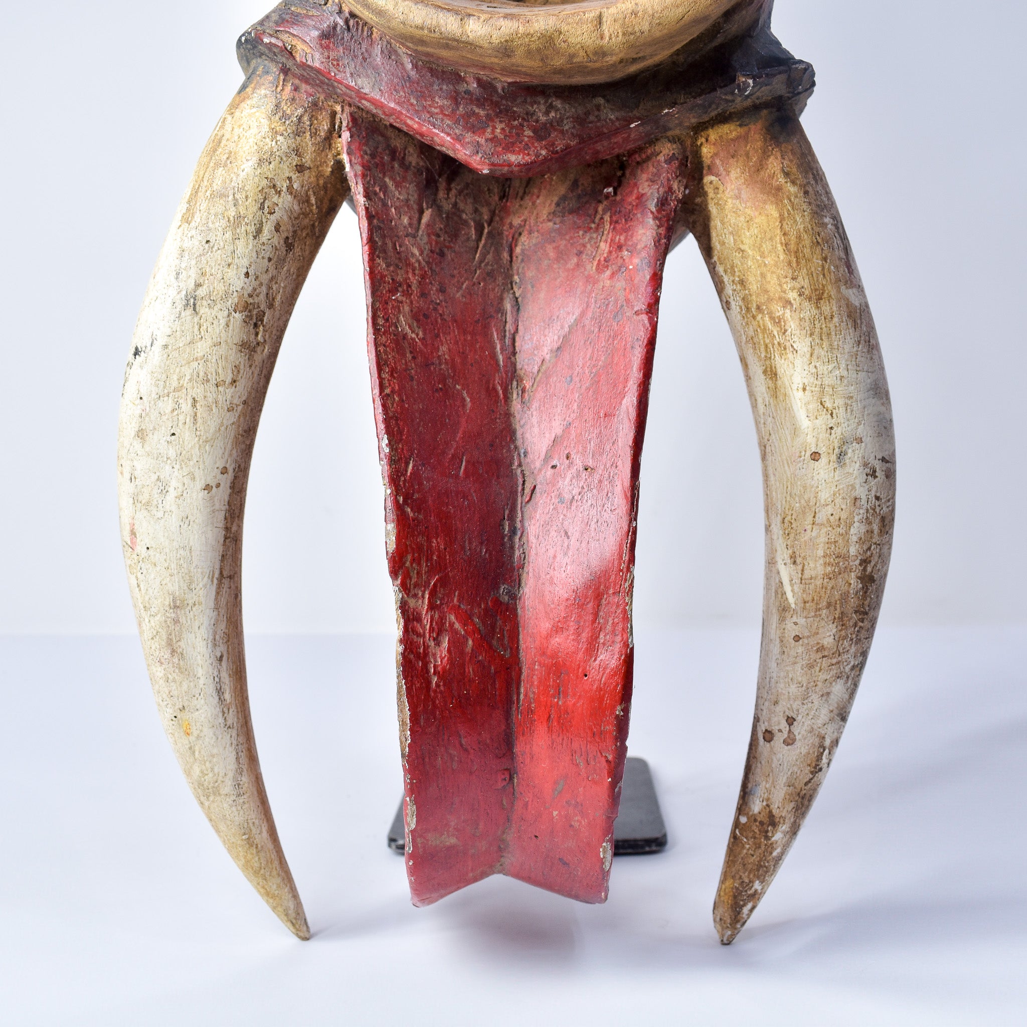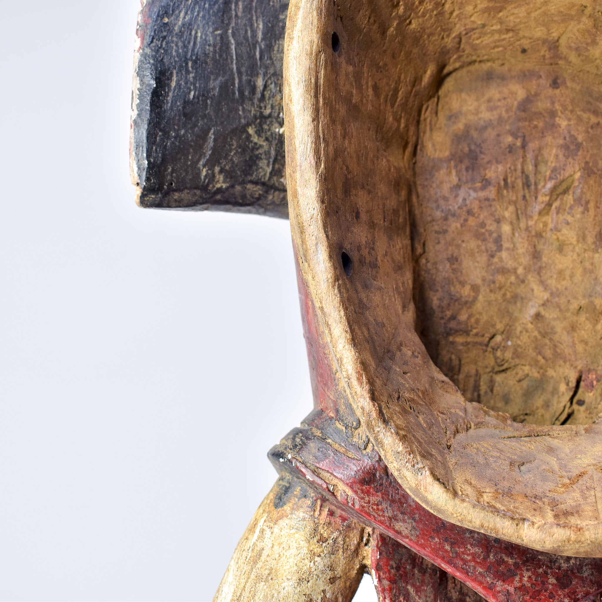This well-carved example would have been worn during performances on the top of the head along with a loose costume made of cotton cloth and/or grasses. Baule animal masks were used during funerals, honoring senior men and former dancers of masks and to entertain the the village during a visit of an important guest. Though identified with the sacred forest and the men's society, they do not appear to have a well-defined religious or ritual function. However, they serve to protect the village from external danger or war. In any case, they are not to be seen by women during their appearance. Some of the masks are blackened, while others are brightly painted with enamel paints.