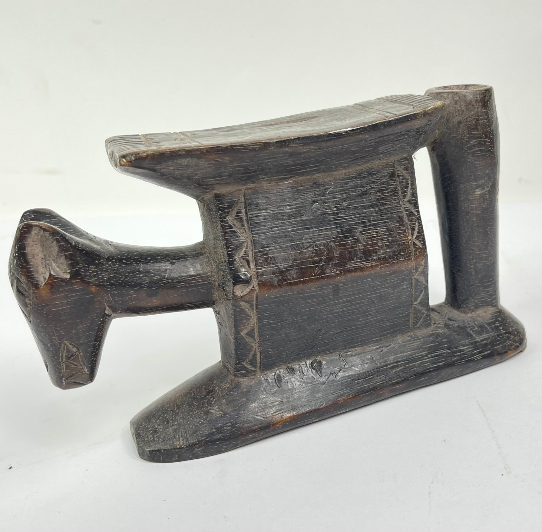 Carved from a single piece of hardwood, Baule headrests often feature graceful curves and stylized forms, sometimes incorporating symbolic motifs or human figures. These objects also carried spiritual significance, believed to connect the sleeper to the world of dreams and ancestors.