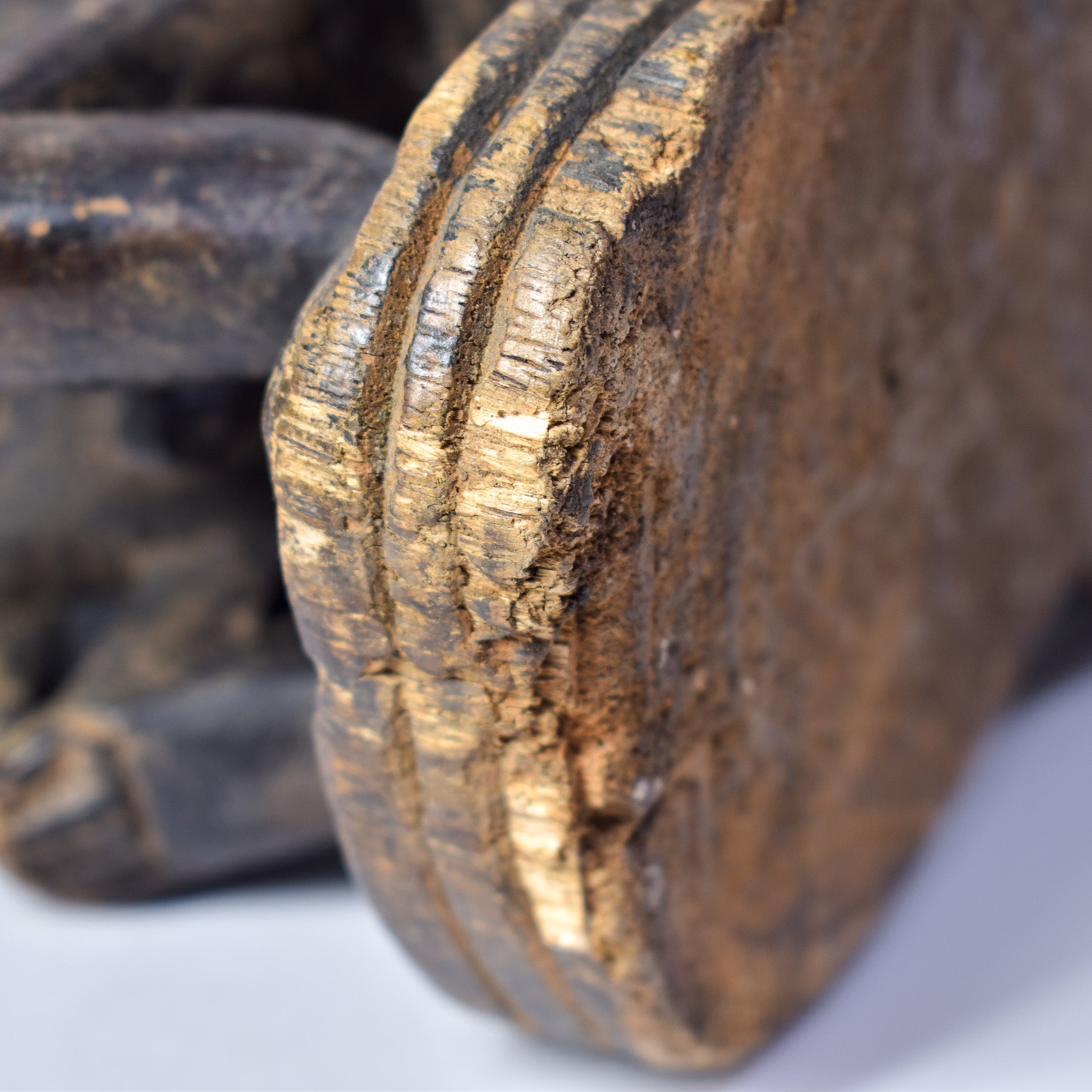 Created by Baule diviners, mouse oracles are used to predict future events. Mice, seen as mediators with Asye Usu (earth spirit) and other ancestors, are believed to possess a unique connection. The oracle structure is specifically designed to accommodate a mouse alongside 10 sticks or bones known as gbekre nyma (eyes of the mice). With two chambers for the mouse to move within, it rearranges the sticks as it scurries about. The diviner then interprets the altered arrangement to provide insights into inquiries posed by clients. The specialization in this technique requires diviners to dedicate many years to study and practice.