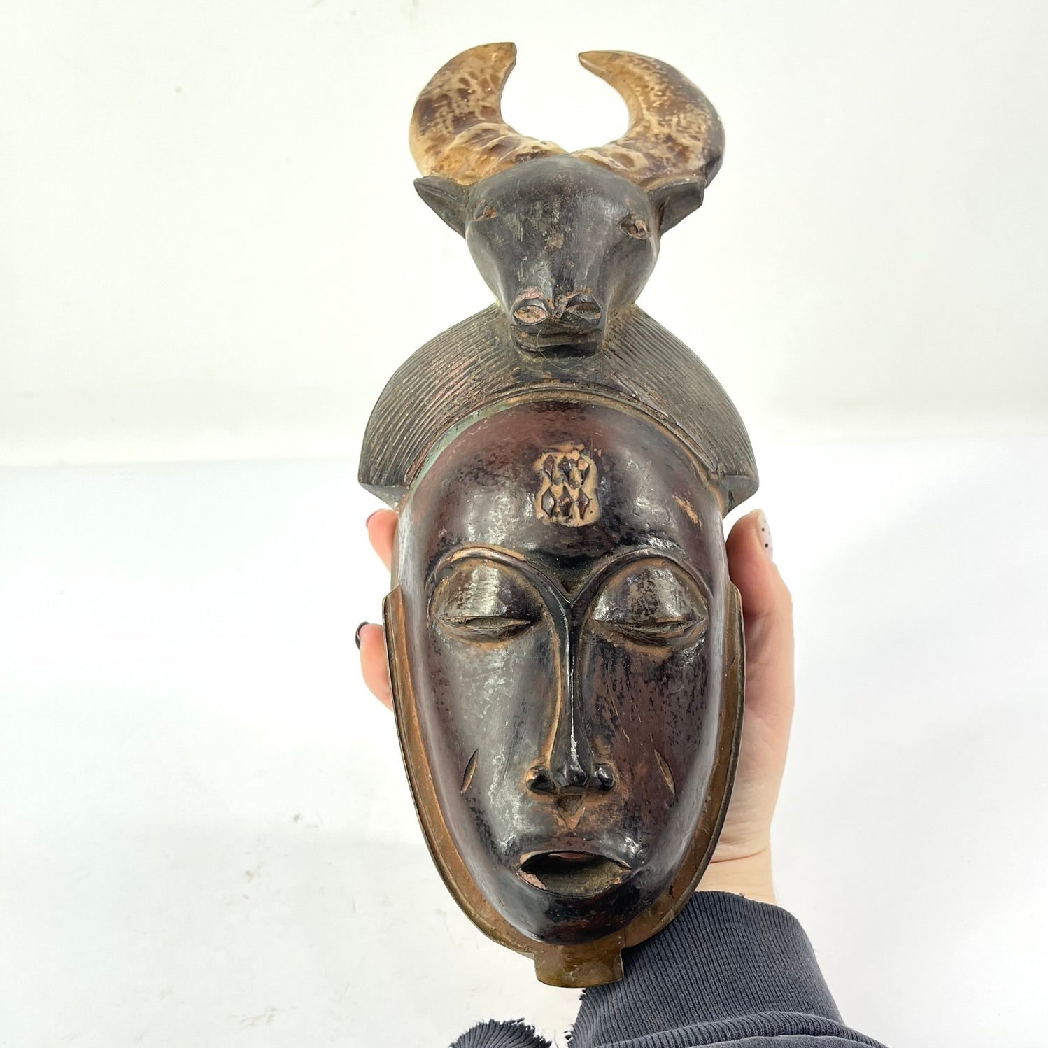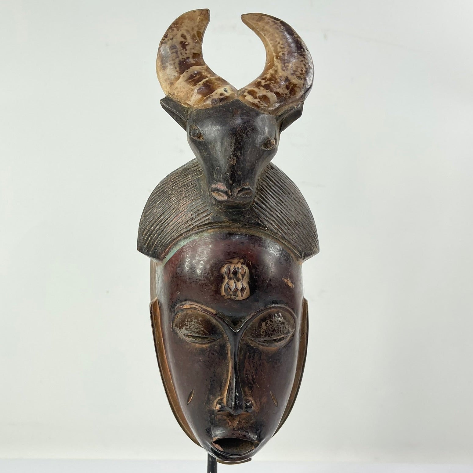 The Baule people, residing in Côte d'Ivoire, West Africa, are renowned for their masterful artistry in crafting portrait-masks, revered as some of the most captivating and potent works in African art. These wooden masks, typically portraying flat, oval faces with detailed relief-carved features and expressive eyes, boast intricate designs that enhance their allure and spiritual power. Dancing with these masks celebrates feminine grace and beauty, entertaining during rest days and honoring esteemed guests. Each mask, a testament to past Baule artists' skill, may resemble the person it represents. Employed in ceremonies like funerals, initiations, and celebrations, these masks serve as connections to ancestors or pivotal figures in Baule history, bridging the mundane with the spiritual realm. Specifically, the Mblo masks, characterized by elongated faces adorned with beads, cowrie shells, and colorful paint, feature delicately carved details. They hold immense cultural significance, acting as mediums to commune with spirits, bring luck, ward off malevolent forces, and heal ailments. Treasured as valuable family heirlooms, Baule portrait masks endure as esteemed symbols of beauty, craftsmanship, and spiritual importance in African art and culture, cherished and revered globally.
