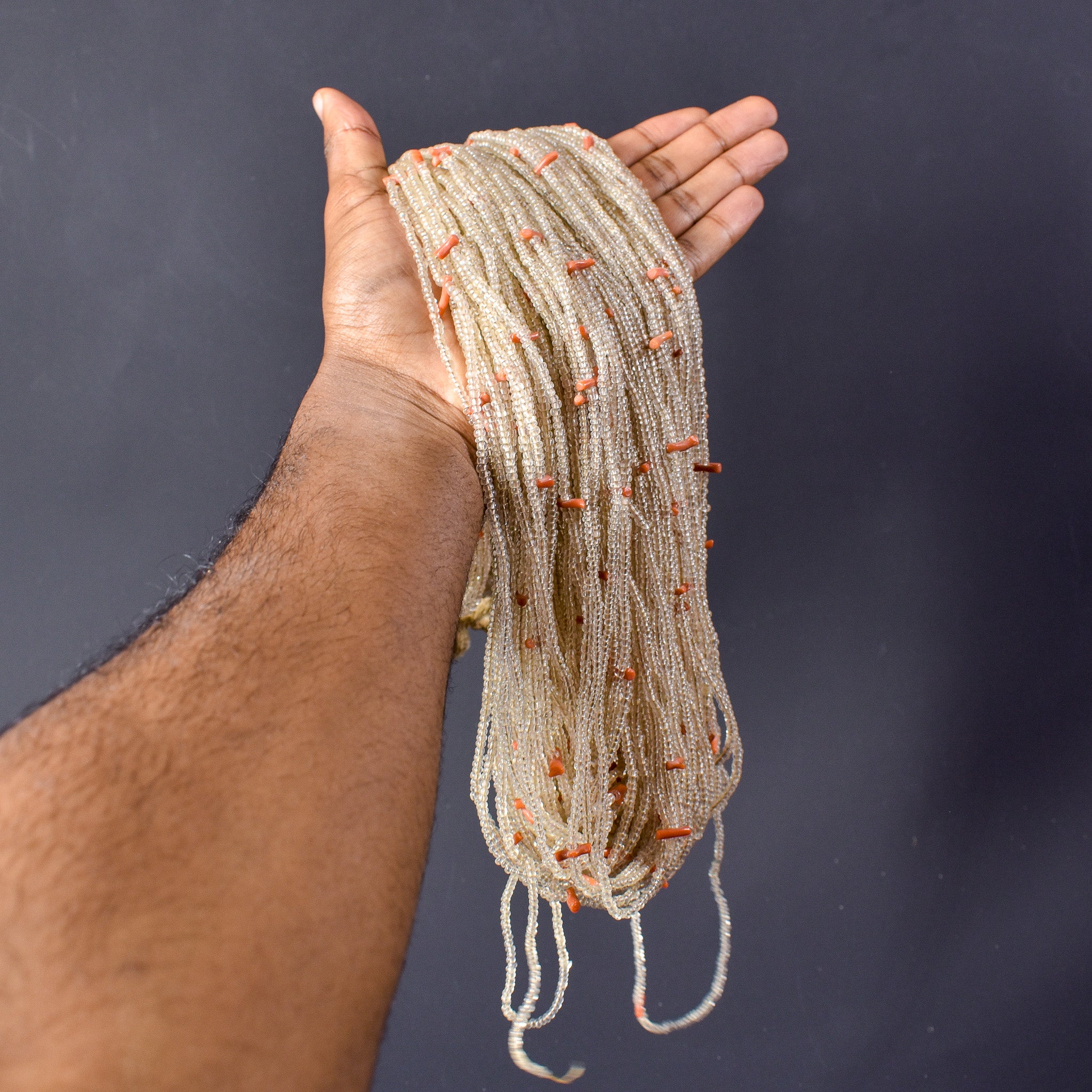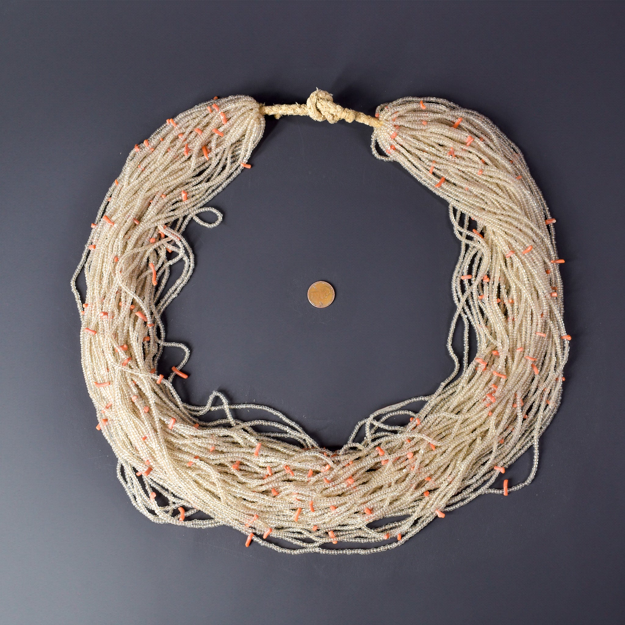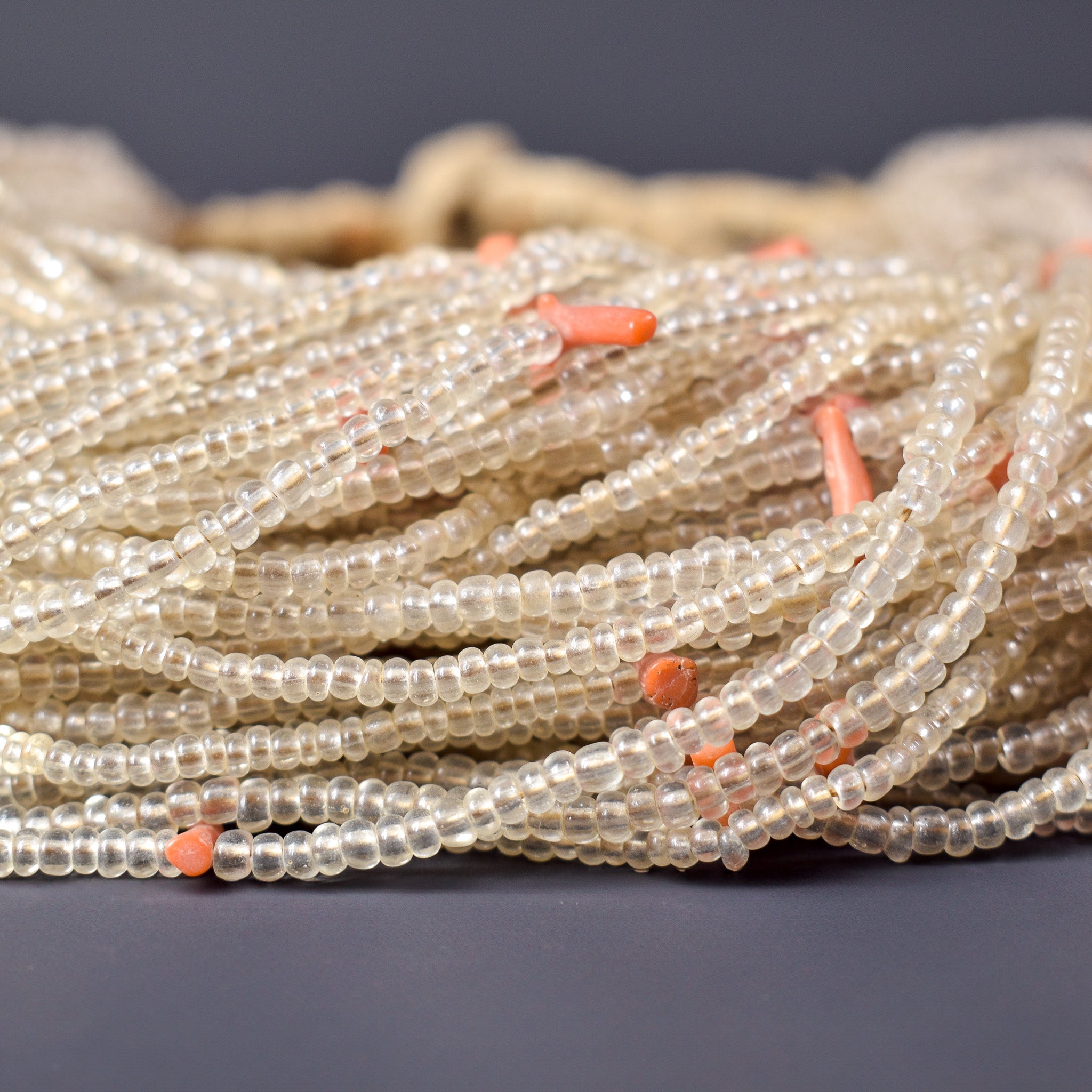 Baule Tamba Clear and Coral Seed Beads Necklace