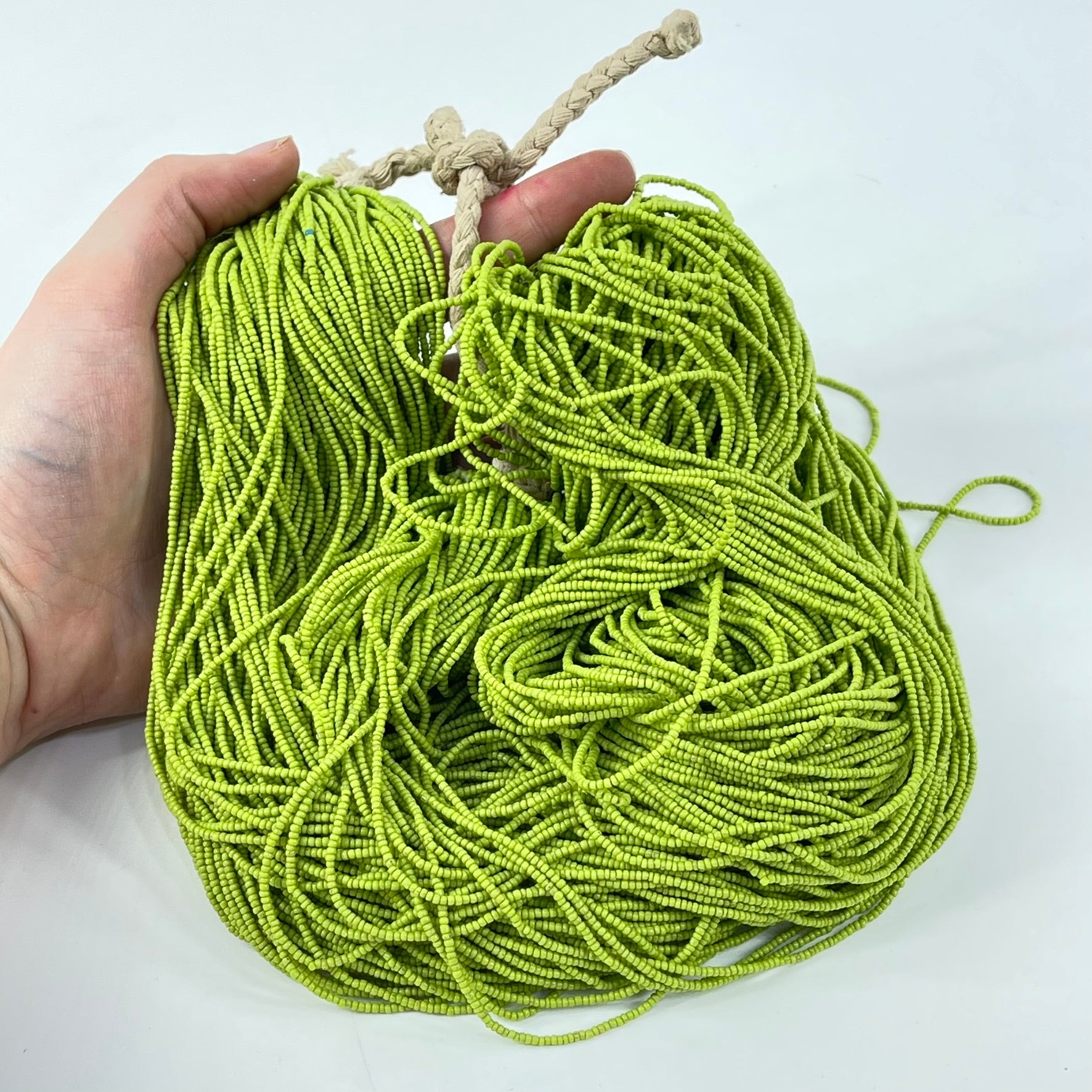 A "Tamba" is a collection of multi-stranded European glass seed beads, commonly known as "hanks." The beads are made in Italy and the necklaces are then assembled in Africa, generally by the Baule people. They were traditionally worn around the waist by women in the Ivory Coast during the pre to early 1900s, and they hold significant value among collectors. Today they can be worn as necklaces or belts, used for beadwork projects, or simply for collecting and admiring.
