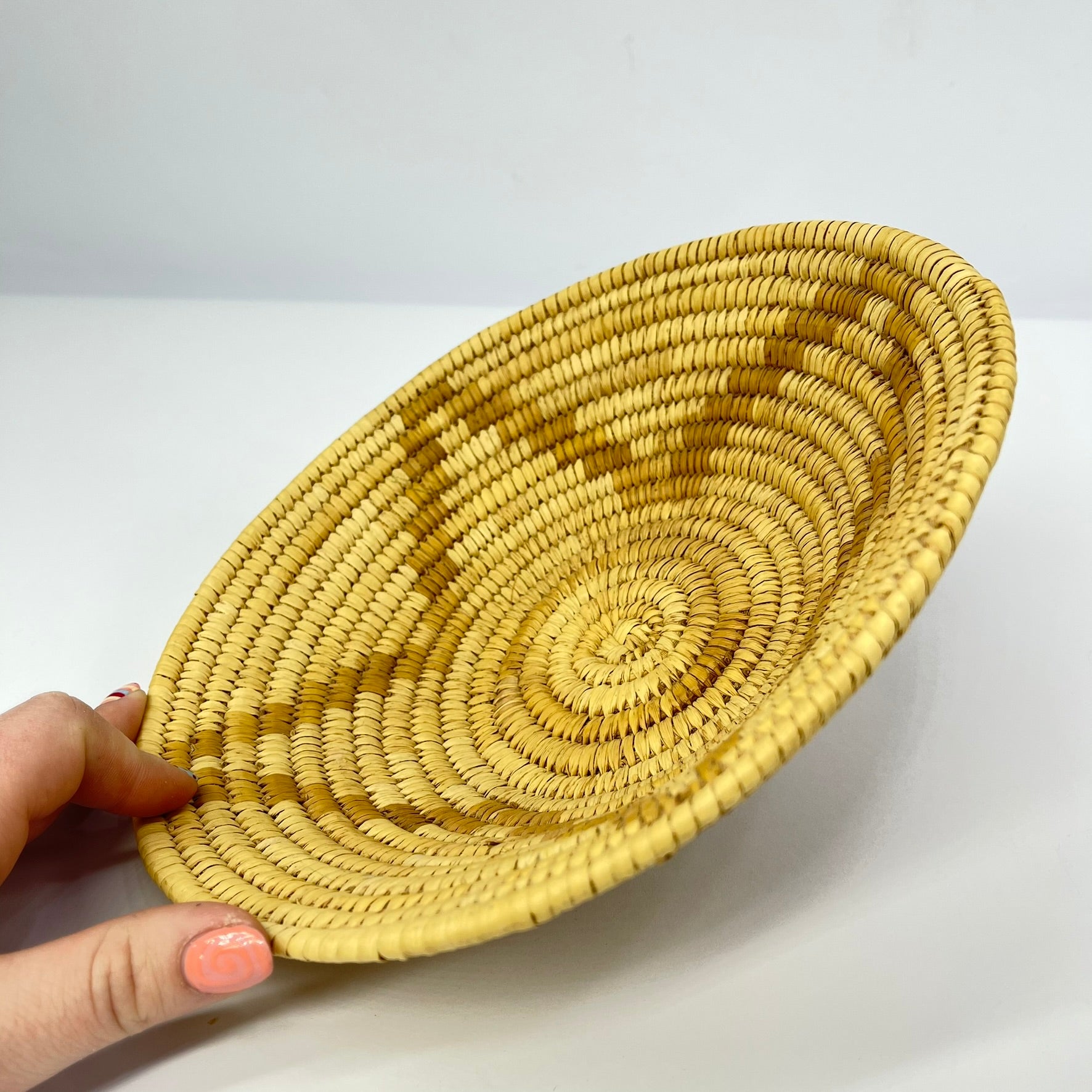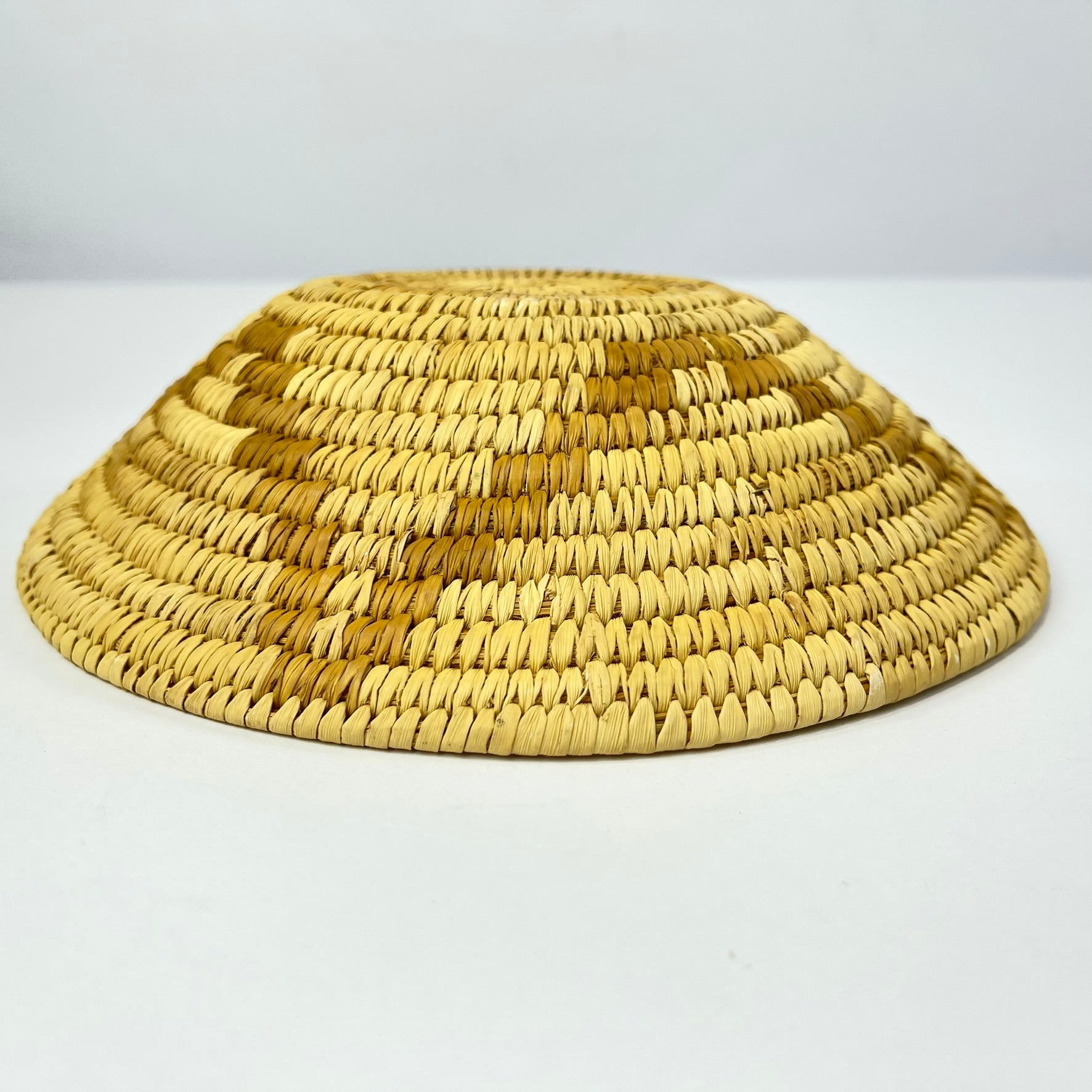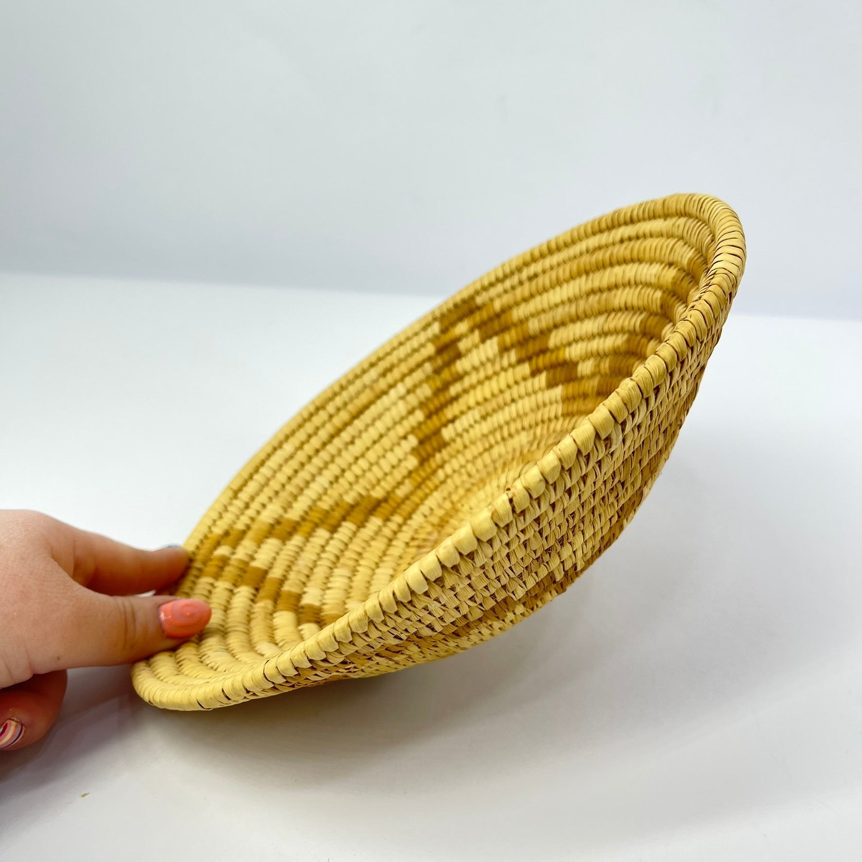This basket from Botswana is very similar to those from the Zulu of South Africa. As for the Zulu, the tradition of making baskets is known in Botswana for a very long time and is still alive today and even more diversified in terms of style, size, and decoration. The creativity of people from Botswana has reached its apex with these timeless baskets today overlooked as pieces worth collecting. Making baskets is an activity exclusively reserved for women, particularly the women from Bayei and Hambukushu ethnic groups. This stunning basket are made from palm tree fibers. This palm tree, called Mokola is found along the Okavango area. The technique and process of fabrication are very complex. It can take up to a month to produce a medium-sized basket. Every basket is made by hand, using indigenous raw materials mainly fibers from the Mokola palm. Reeds or straws are used to ensure the strength of the basket. Then, the basket would hold its shape and it would be hard to be compressed.