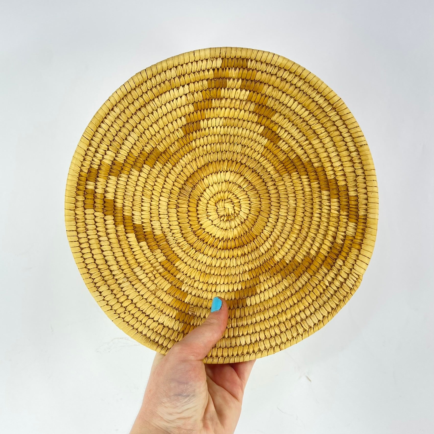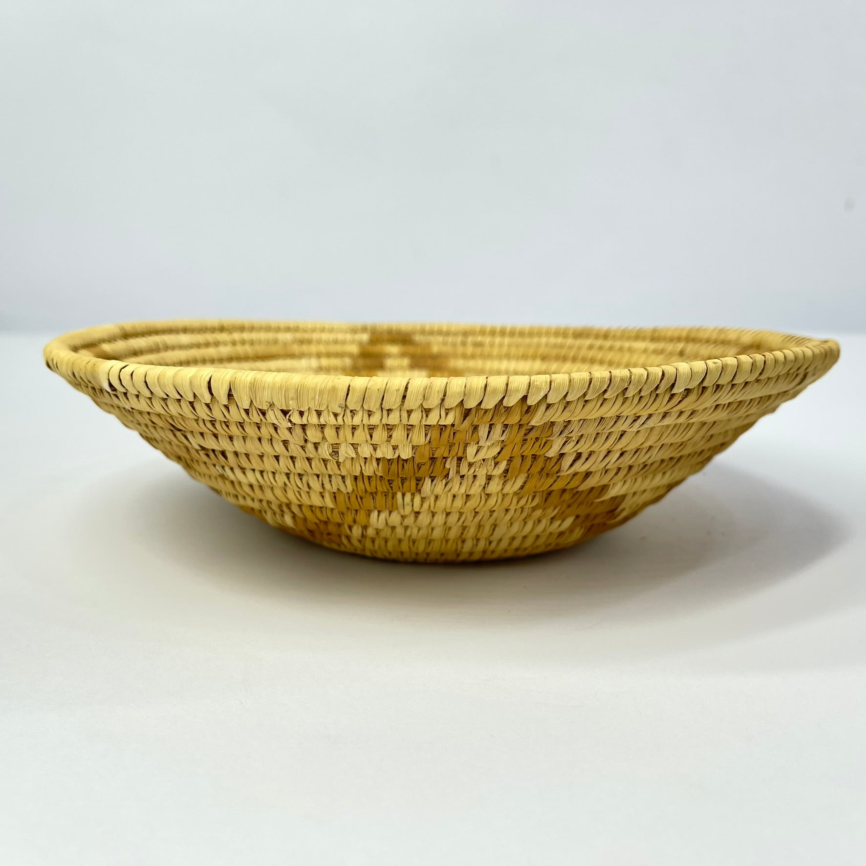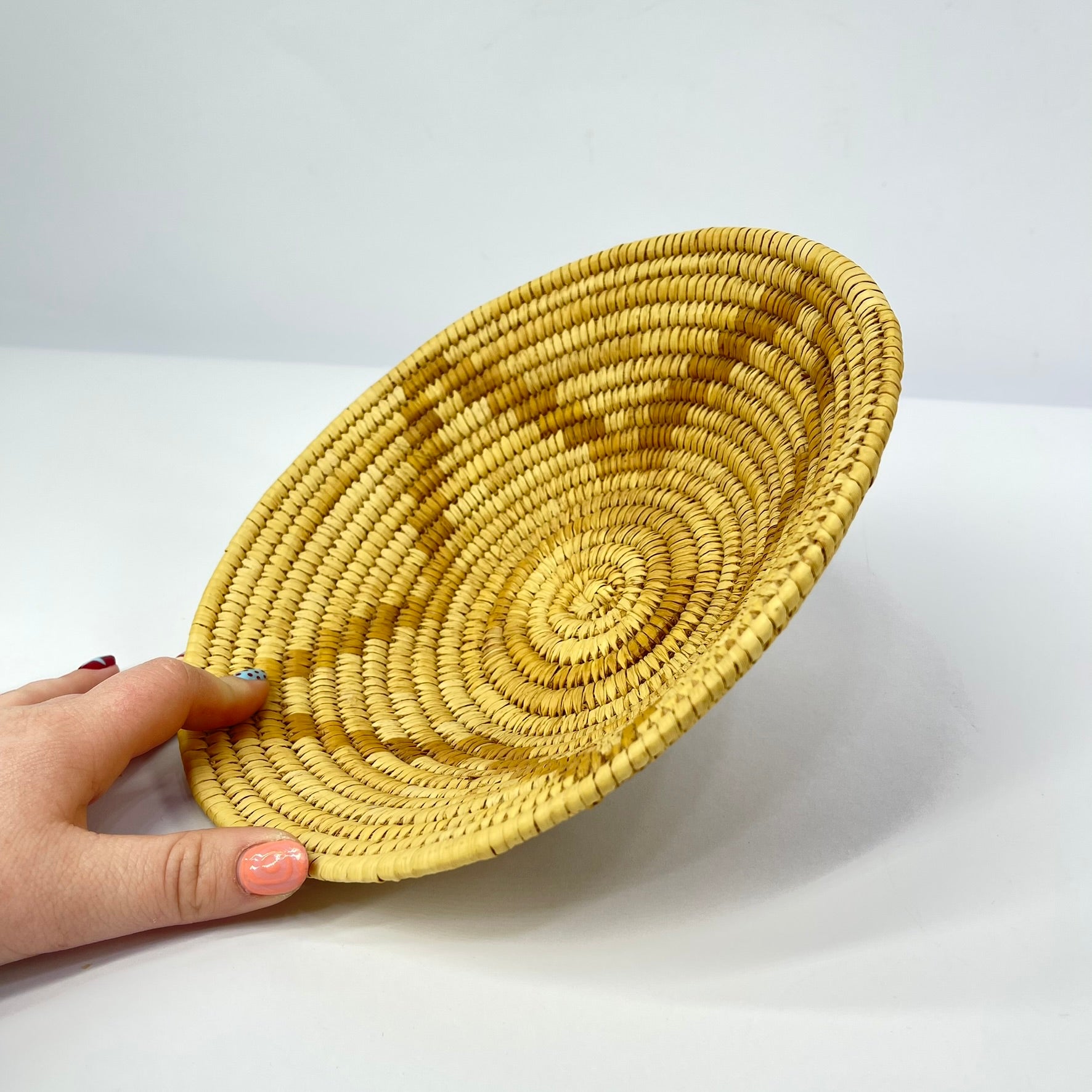 This basket from Botswana is very similar to those from the Zulu of South Africa. As for the Zulu, the tradition of making baskets is known in Botswana for a very long time and is still alive today and even more diversified in terms of style, size, and decoration. The creativity of people from Botswana has reached its apex with these timeless baskets today overlooked as pieces worth collecting. Making baskets is an activity exclusively reserved for women, particularly the women from Bayei and Hambukushu ethnic groups. This stunning basket are made from palm tree fibers. This palm tree, called Mokola is found along the Okavango area. The technique and process of fabrication are very complex. It can take up to a month to produce a medium-sized basket. Every basket is made by hand, using indigenous raw materials mainly fibers from the Mokola palm. Reeds or straws are used to ensure the strength of the basket. Then, the basket would hold its shape and it would be hard to be compressed.