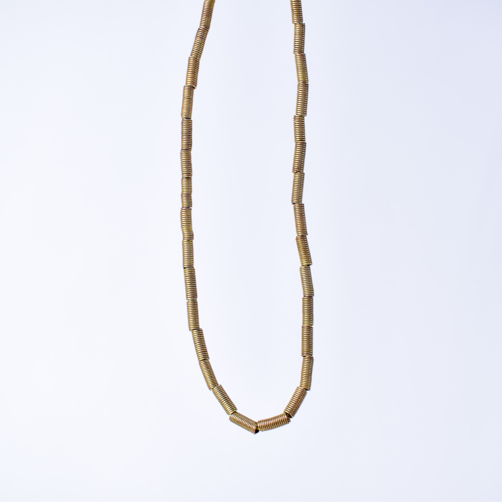 Metal Ethiopian heishi beads are exquisite cylindrical or disk-shaped metal beads inspired by traditional heishi craftsmanship. Originating from Ethiopia, these beads showcase the skilled metalworking heritage of the region. Typically made from metals like copper or brass, these heishi beads feature intricate designs, often adorned with symbols, geometric patterns, or textured surfaces. Ethiopian heishi beads add a touch of cultural authenticity and contemporary flair to jewelry designs, capturing the essence of Ethiopian craftsmanship. Their versatile nature allows them to be incorporated into various jewelry pieces, providing a unique and stylish option for those seeking to infuse their creations with the rich cultural and artistic traditions of Ethiopia.