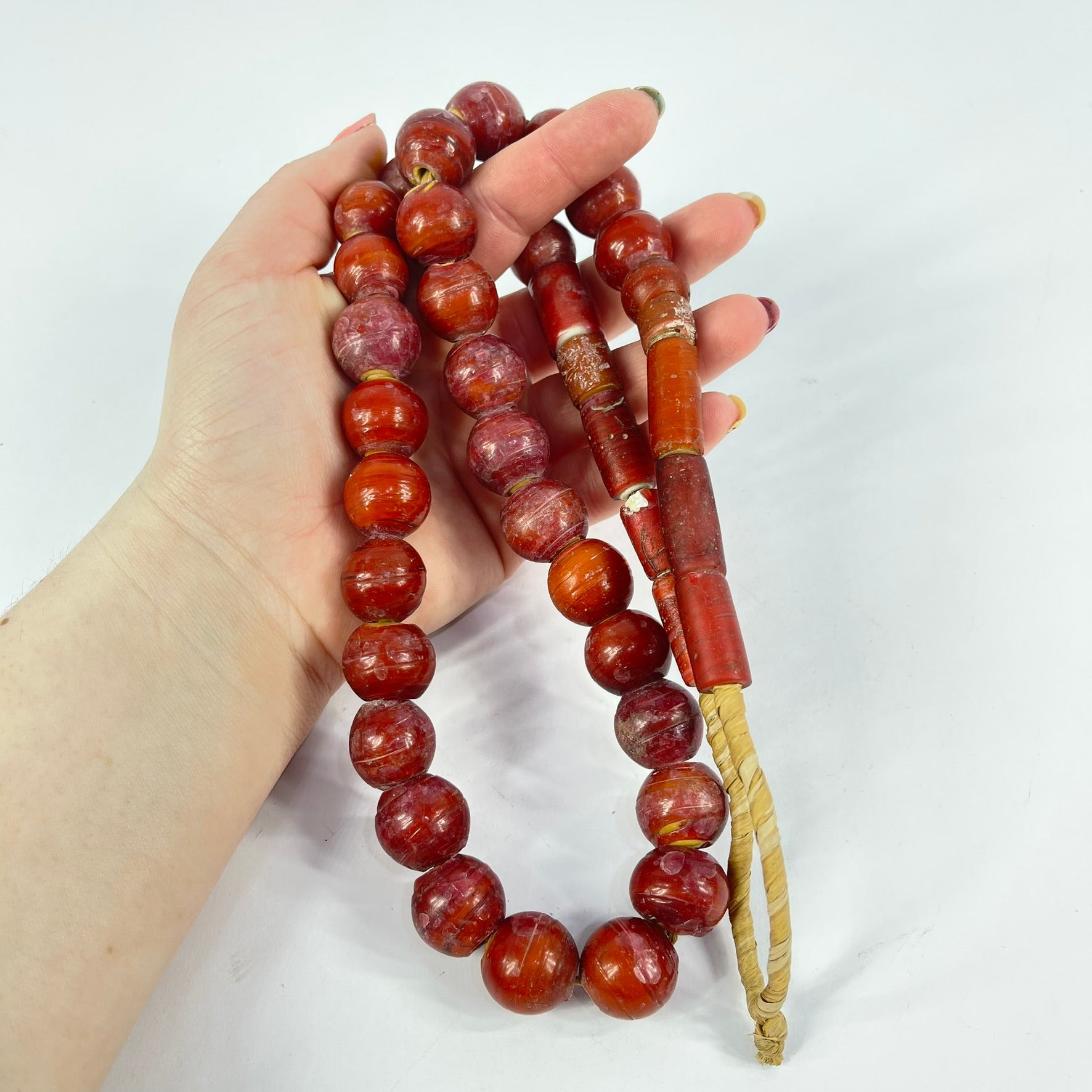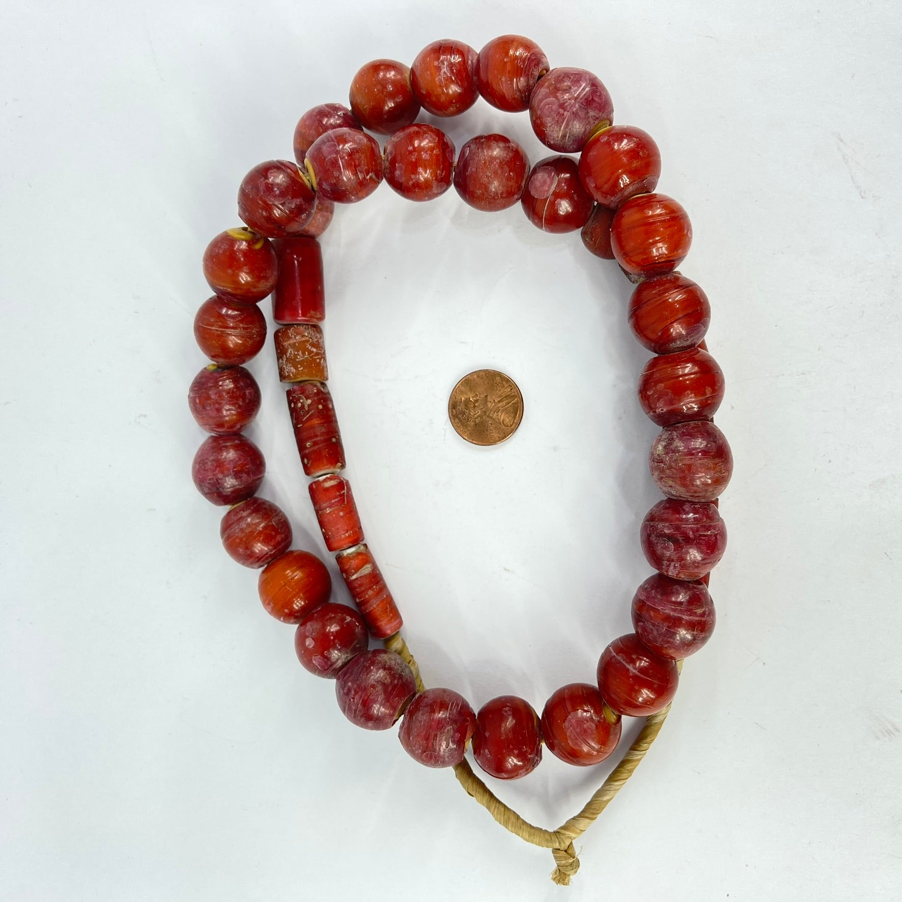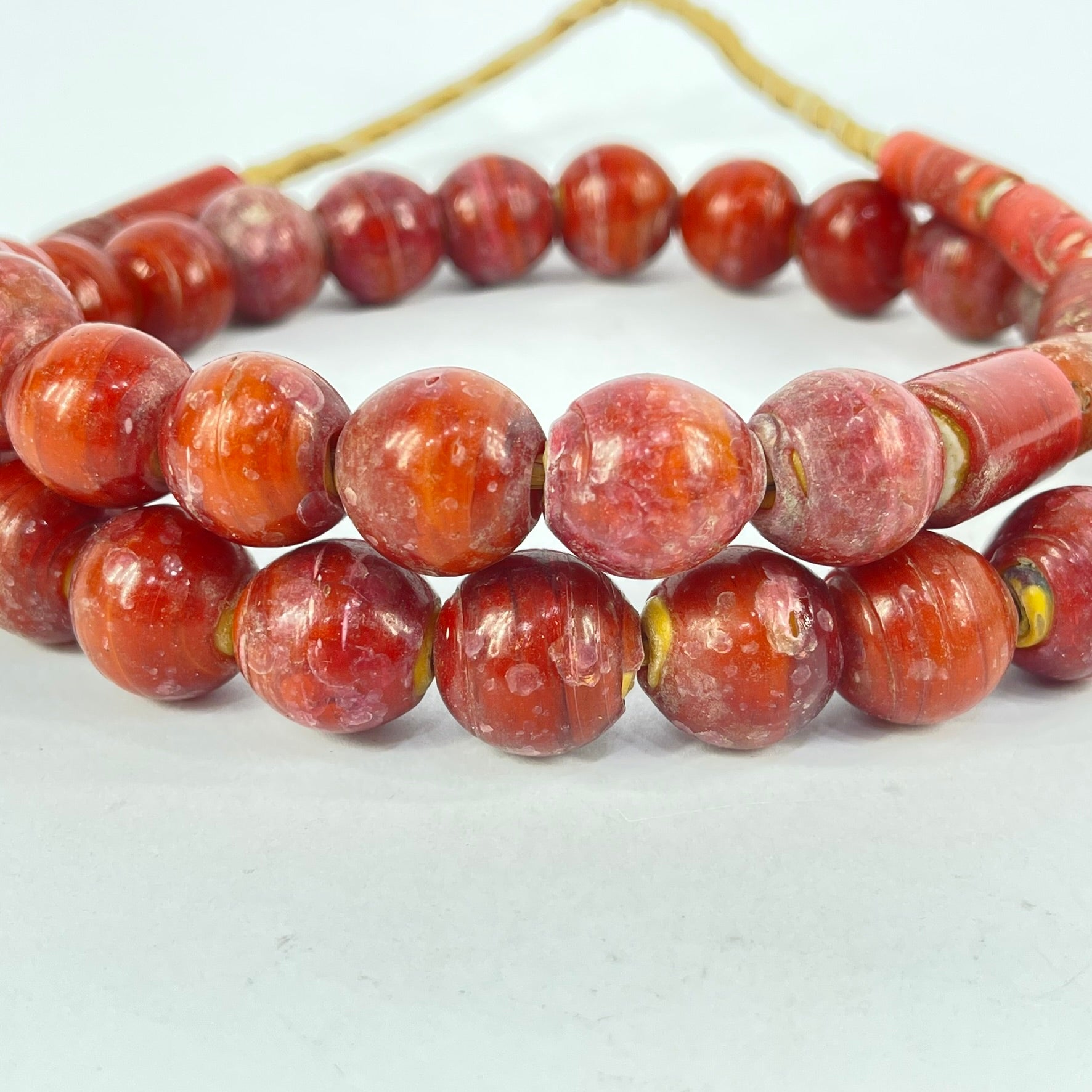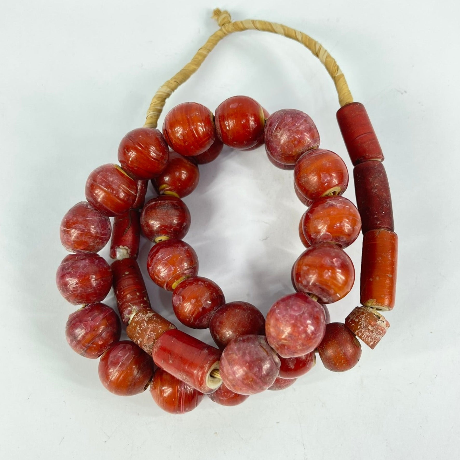 This strand is not intended to be a ready-to-wear necklace. Although the strand can be worn "as is," the raffia holding it together is not durable and may break with use. For this reason, we recommend that you restring the beads before wearing them.