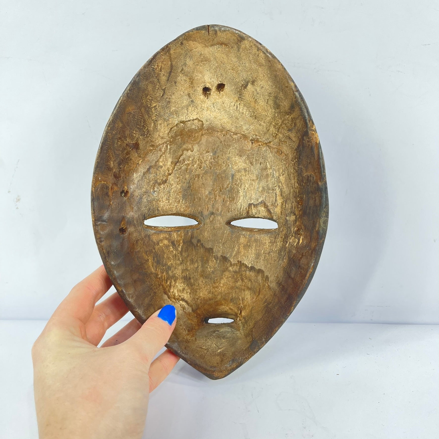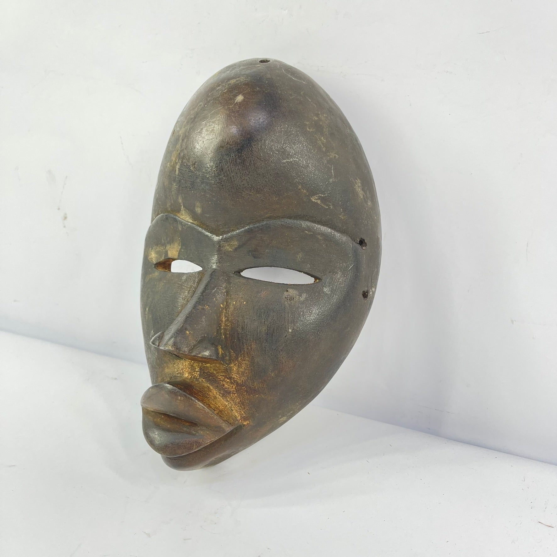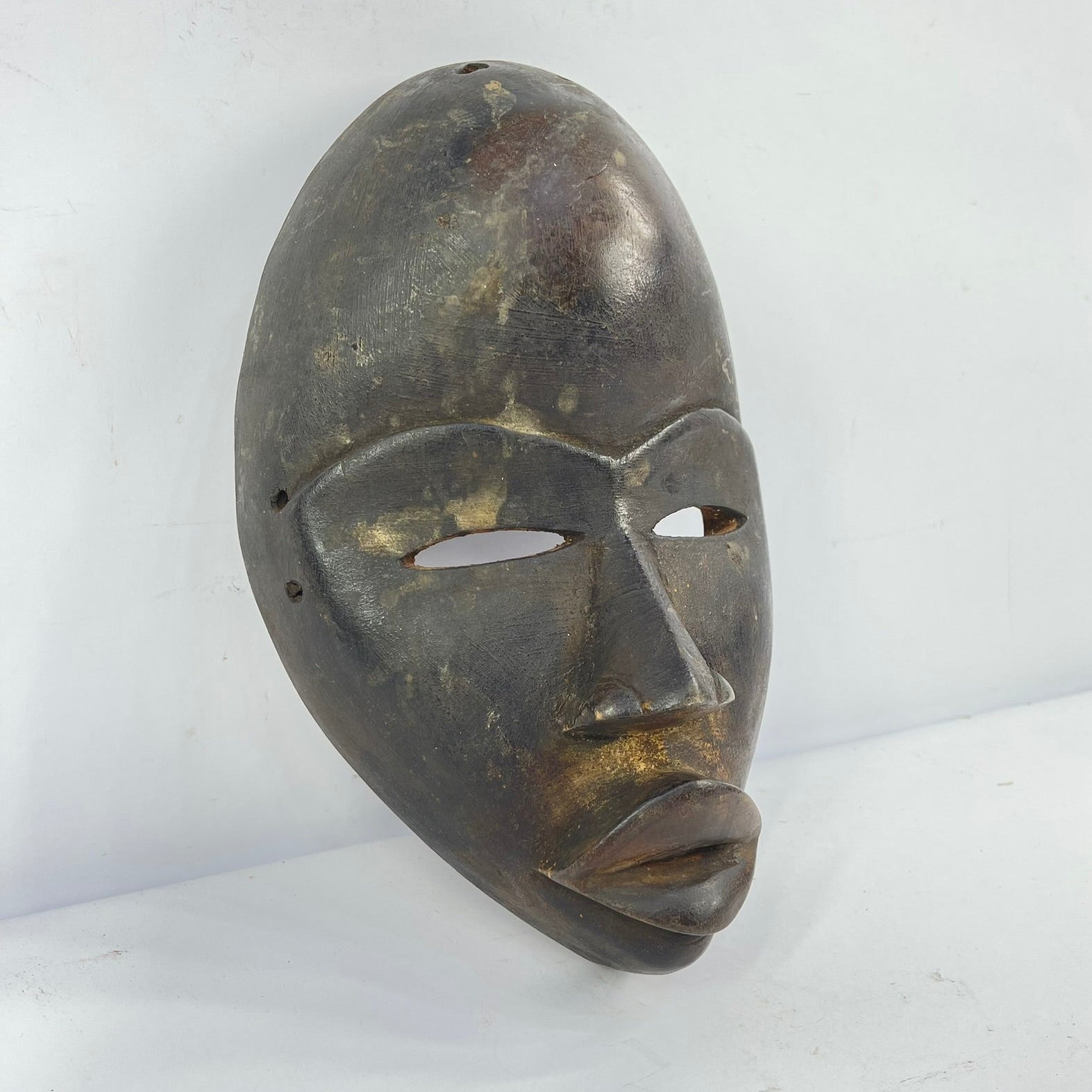 Dan masks, originating from the Dan people of Liberia, Côte d'Ivoire, and Guinea, are recognized for their elongated faces, high foreheads, and slender eyes, often featuring a central ridge on the forehead. Specifically, the Deangle mask, associated with the Poro society's rituals, represents female spirits with believed supernatural abilities. These masks, adorned with scarification marks and symbolic decorations, symbolize spiritual authority and prowess. Revered for safeguarding against malevolent forces and fostering community fertility and prosperity, the Deangle mask is worn by male dancers during elaborate Poro ceremonies, performing intricate dances to honor and seek blessings from the spirit. The Dan's intricate societal structure, featuring family lineages, secret societies, and initiation rituals, is intertwined with their belief in Du spirits inhabiting the wild, manifesting through masks and guiding the Dan in life. Masks within the Dan culture vary in form and function, each designated with distinct roles and responsibilities.