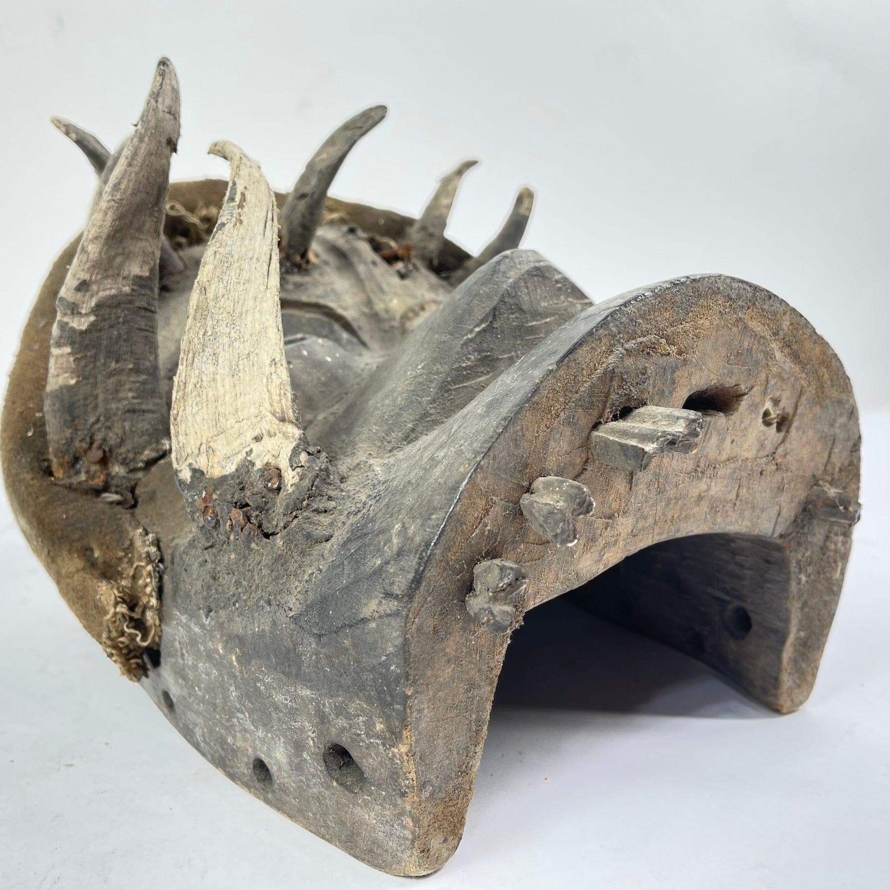 Mask has missing teeth and horns, Along with that some of the horns are loose and it does not stand on its own.