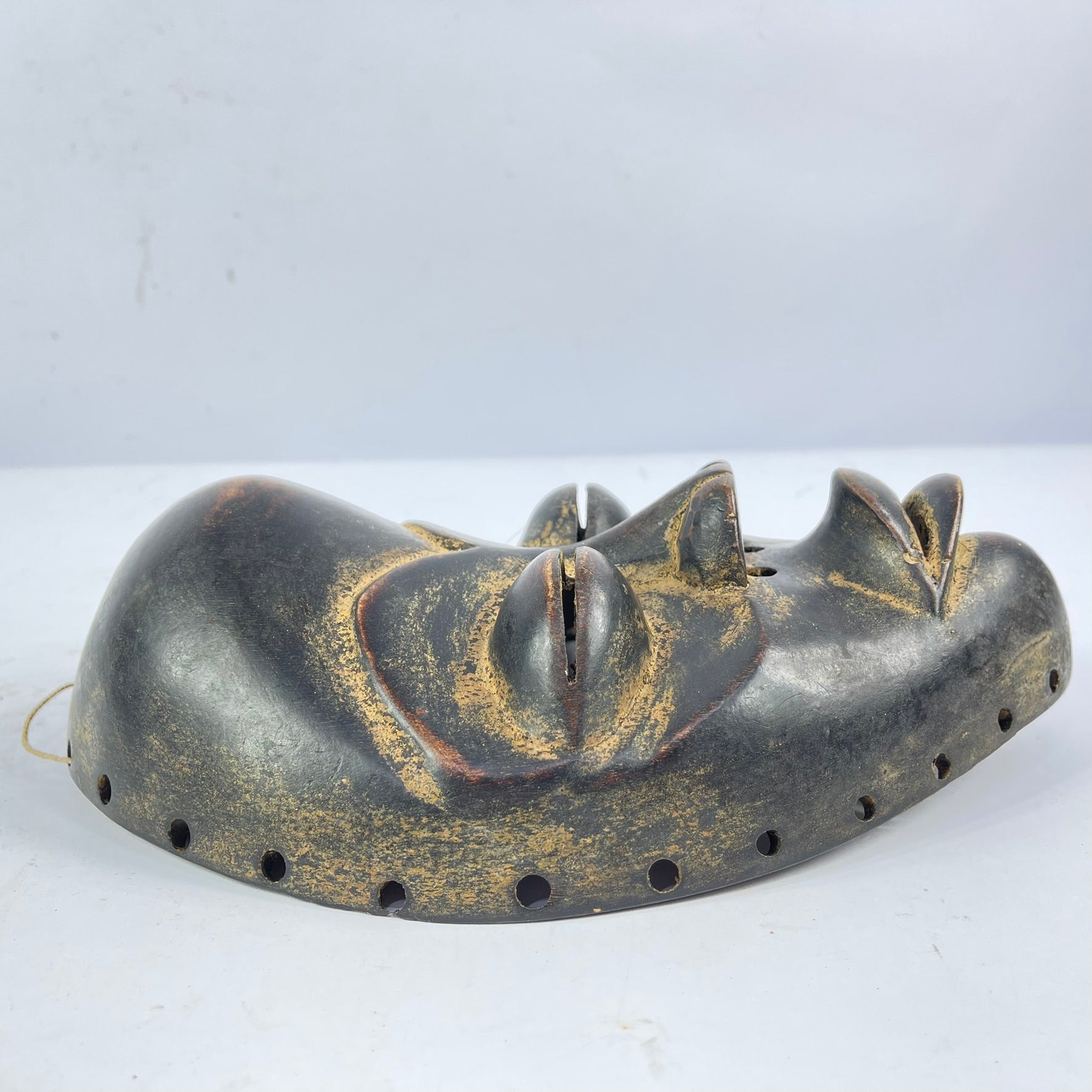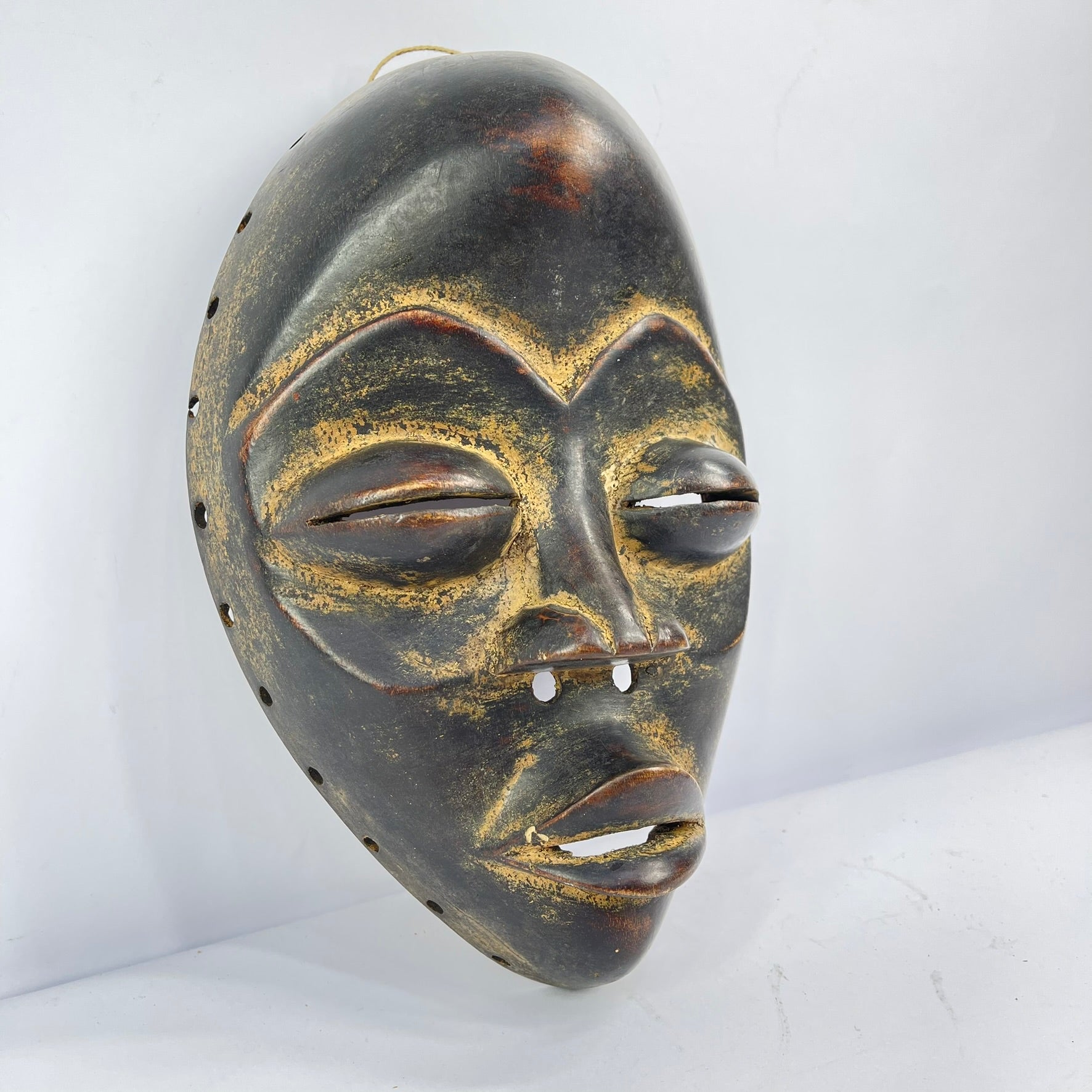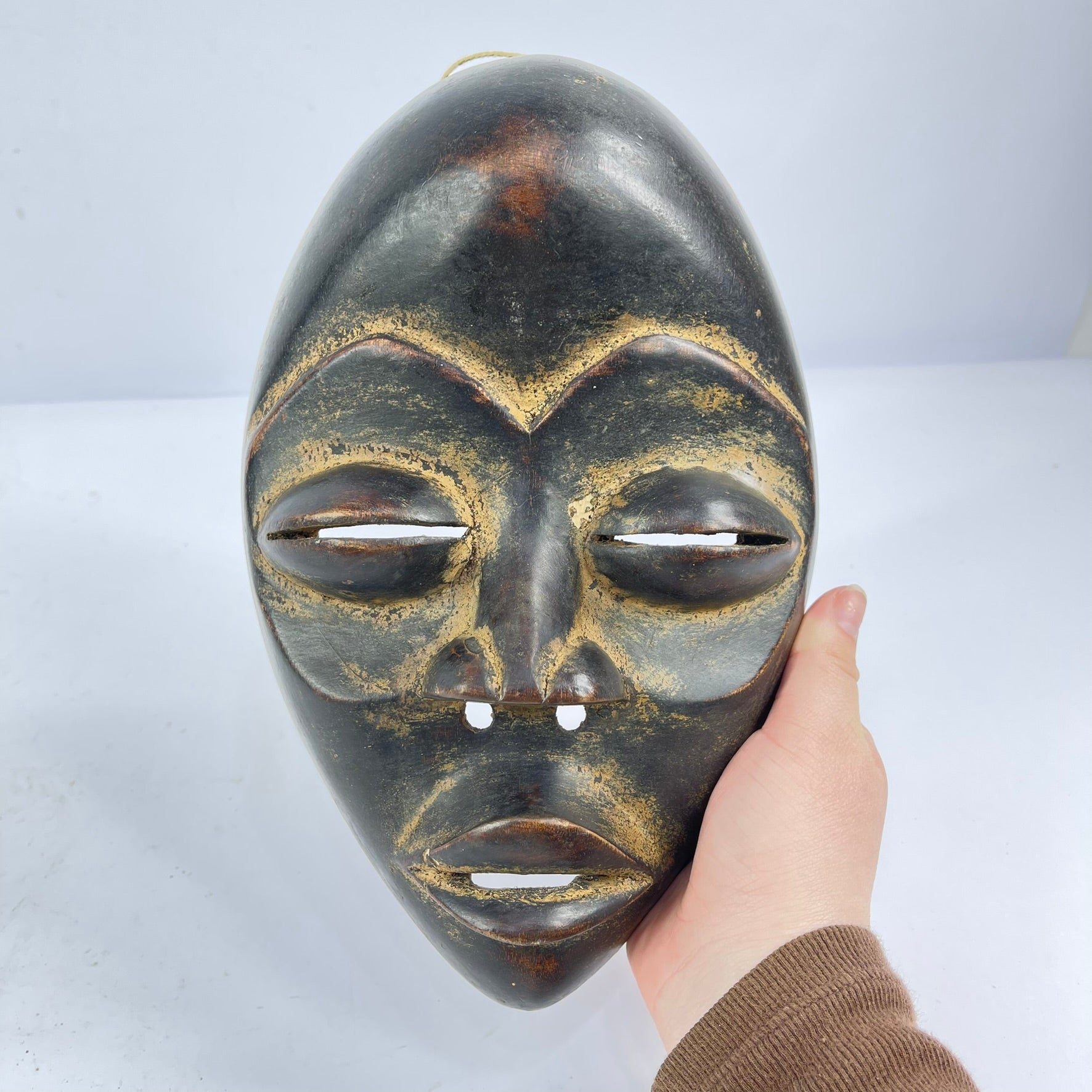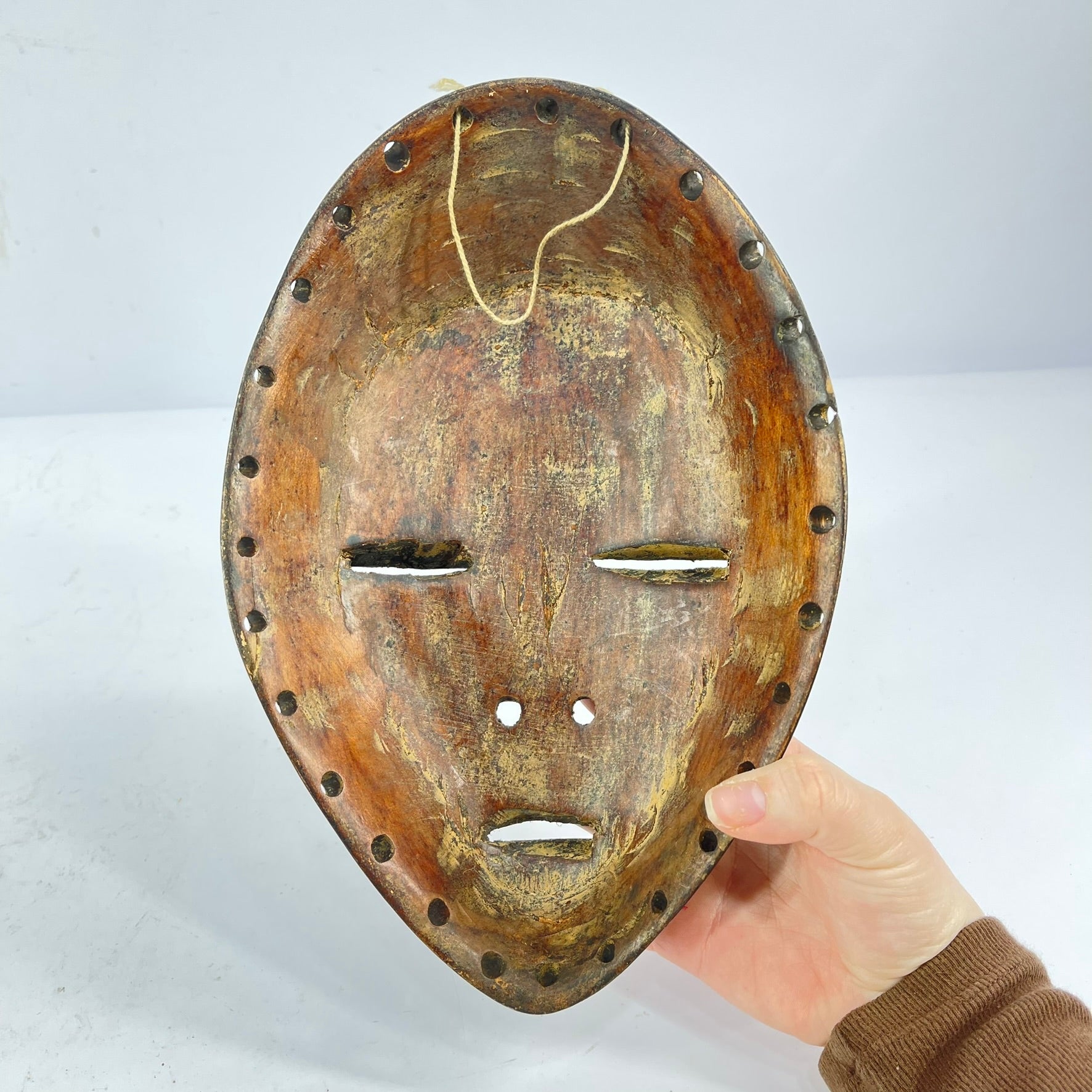 This African mask comes from Liberia and Côte d'Ivoire by the Dan people. This mask retains all the qualities of a beautiful carved mask from this region. The features are beautifully sculpted with attention to the detailing of eyes, nose, and mouth. The holes around larger versions of this mask would have had the costume attached to it to cover and disguise the body of the dancer.