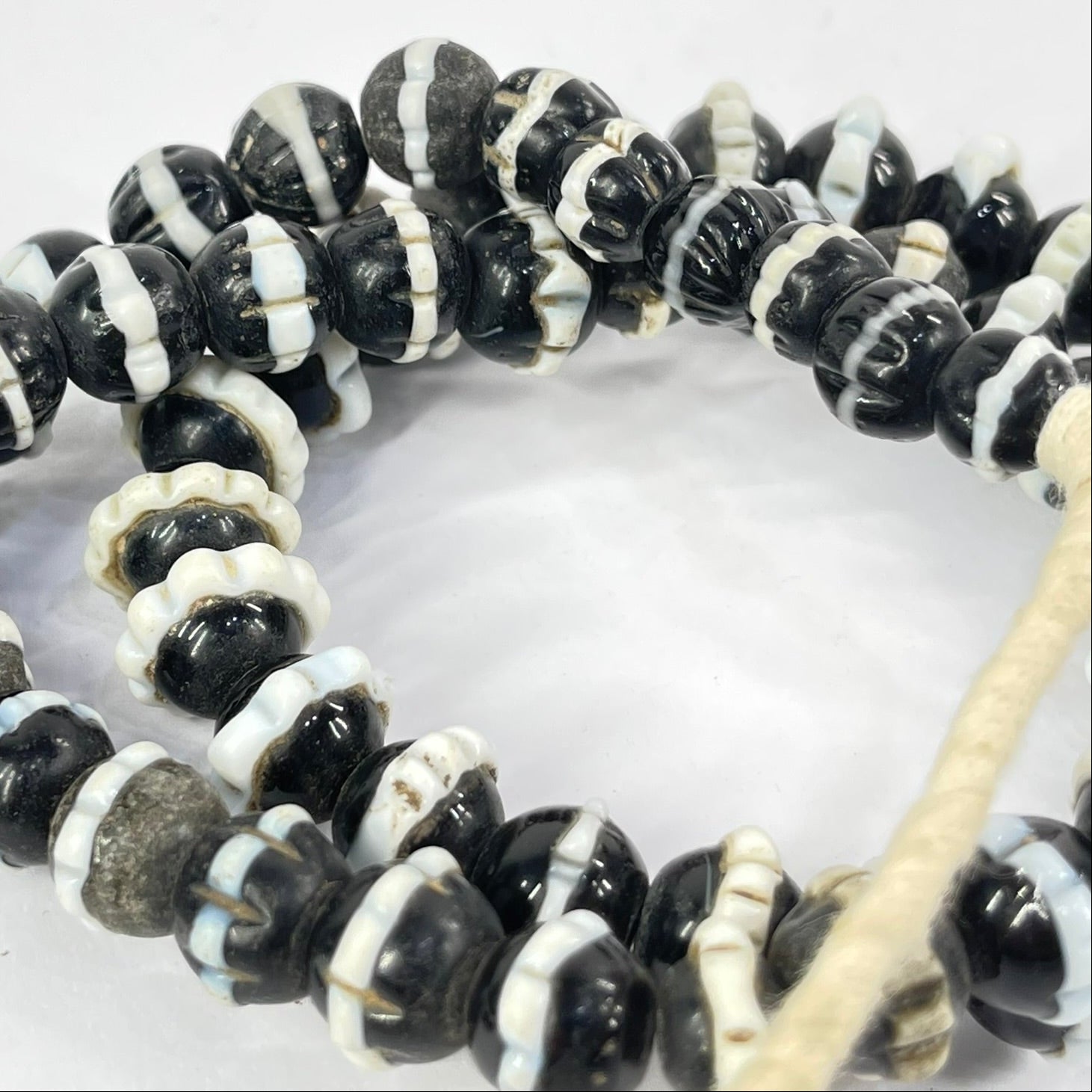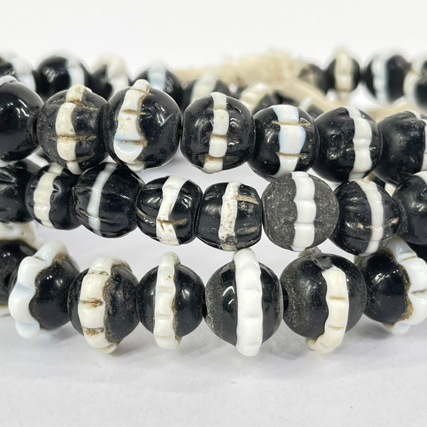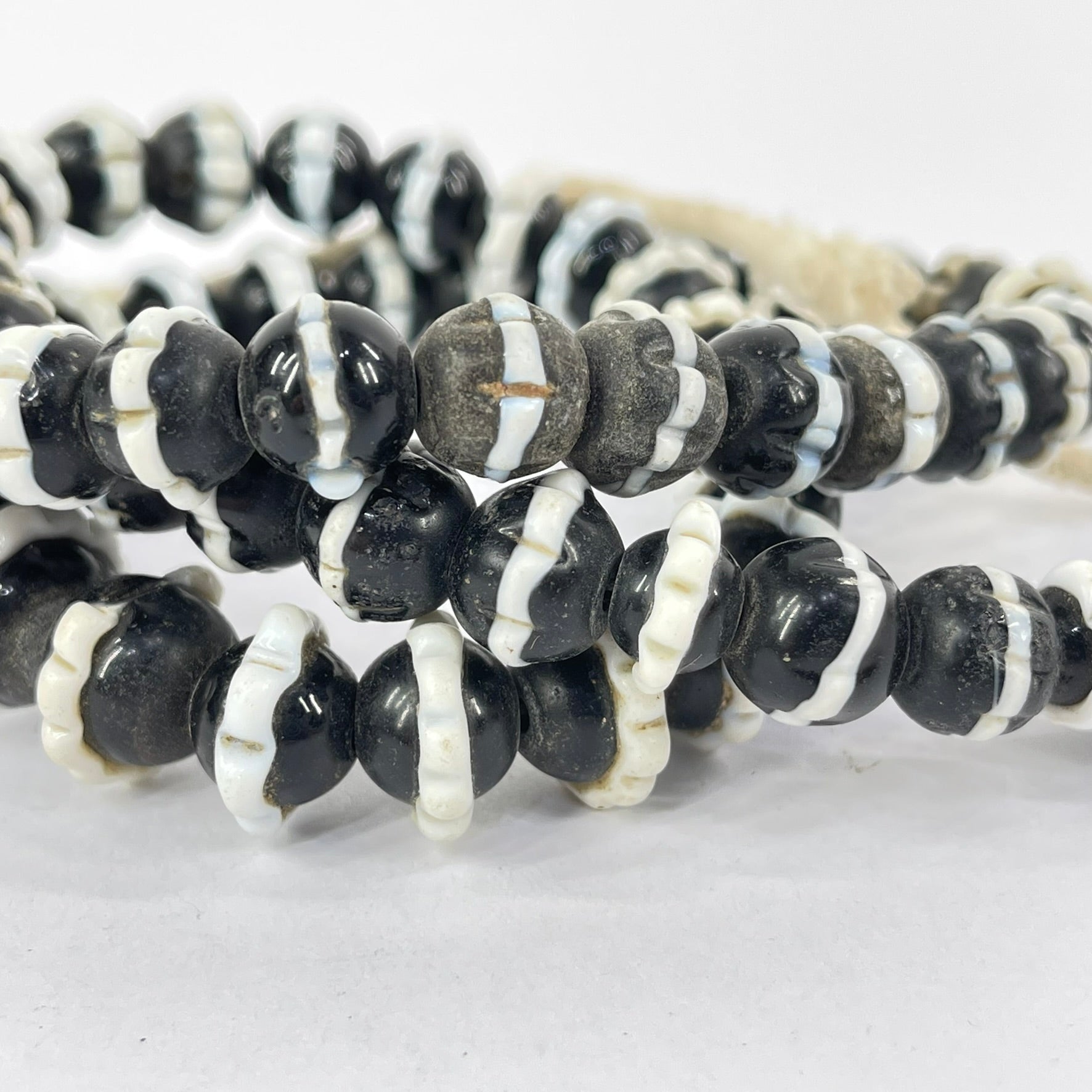 Black Dog Tooth Trade beads are historical adornments that add a touch of cultural flair to any jewelry design. These beads originate from the era of the African trade routes and carry a rich legacy of commerce and cultural exchange. Characterized by their unique shape with distinctive ruffled edges, each bead is a testament to the skilled craftsmanship of the artisans who created them. These beads are crafted from glass and serve as tangible reminders of the global trade networks that connected distant cultures and shaped the course of history.