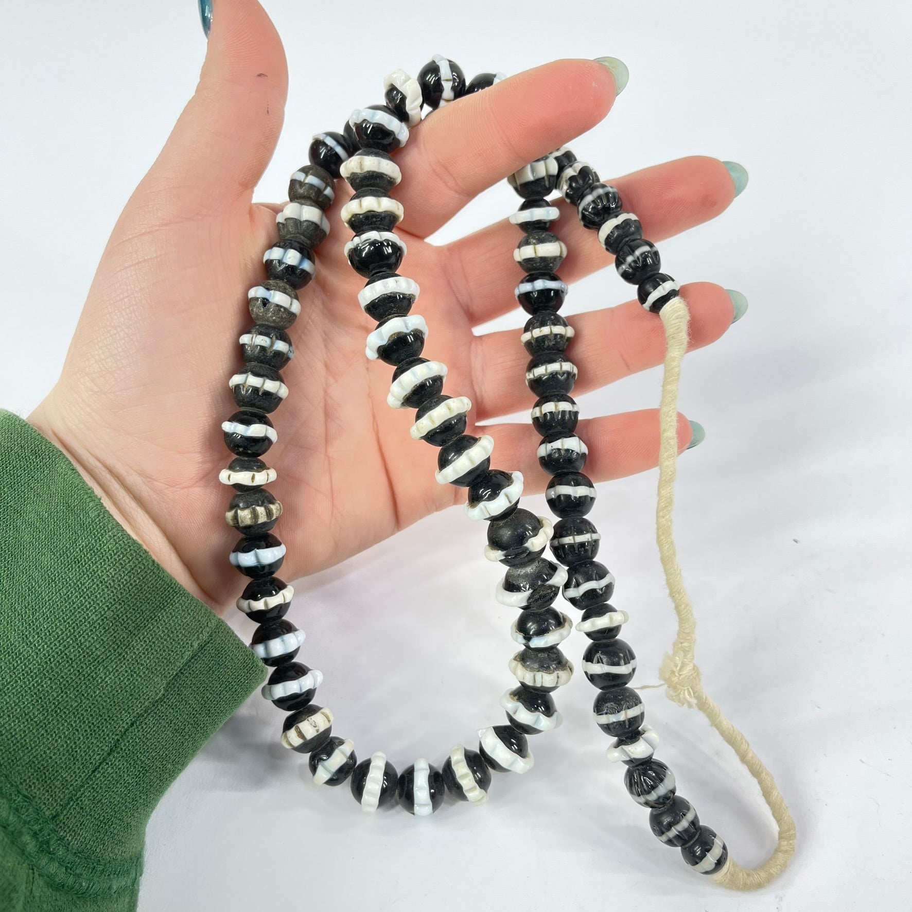 This strand is not intended to be a ready-to-wear necklace. Although the strand can be worn "as is," the string holding it together is not durable and may break with use. For this reason, we recommend that you restring the beads before wearing them.