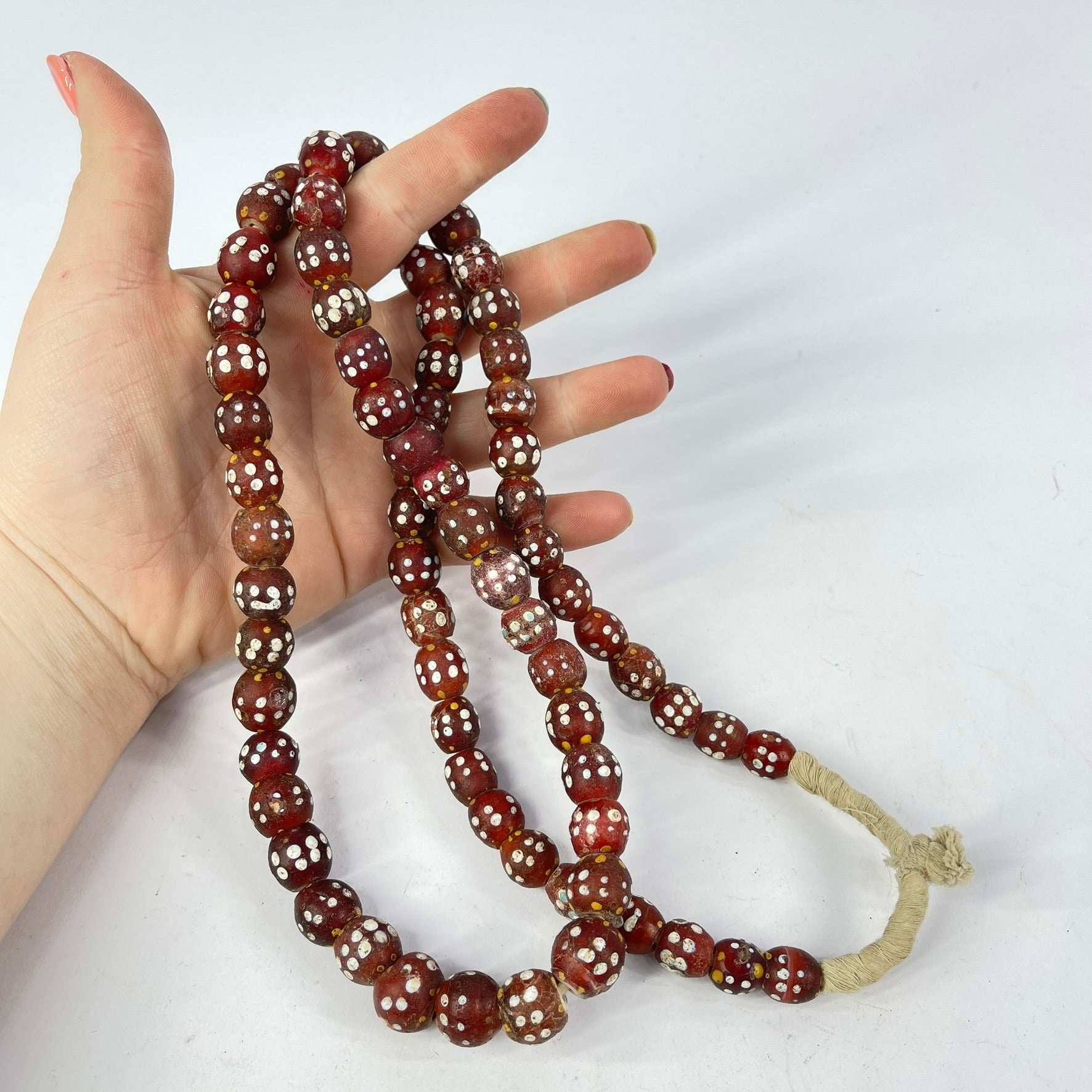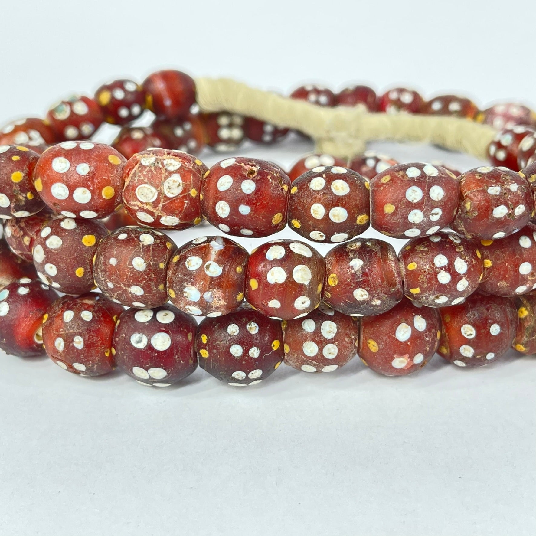 Double Row Skunk Venetian Vintage Red Trade Beads 36inch