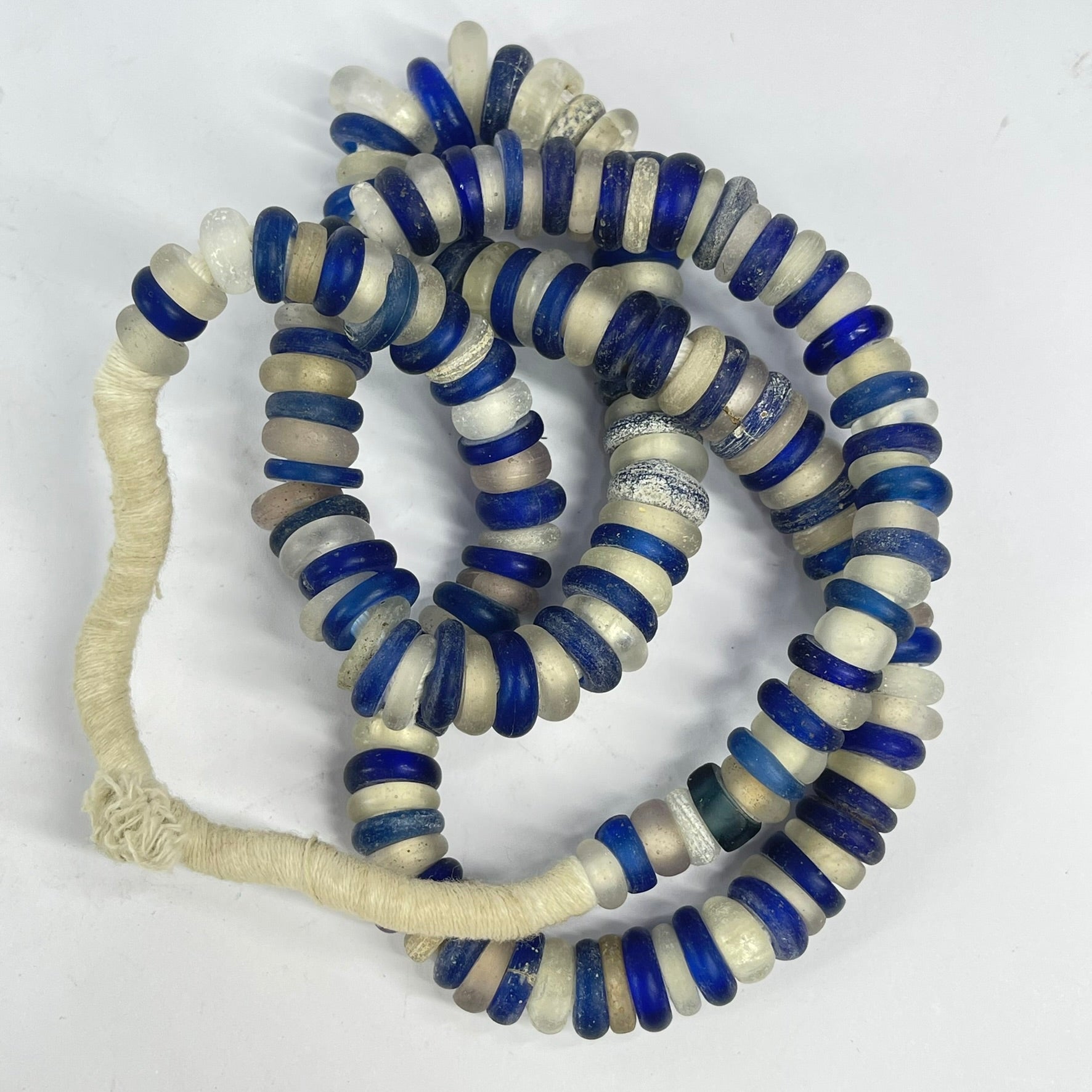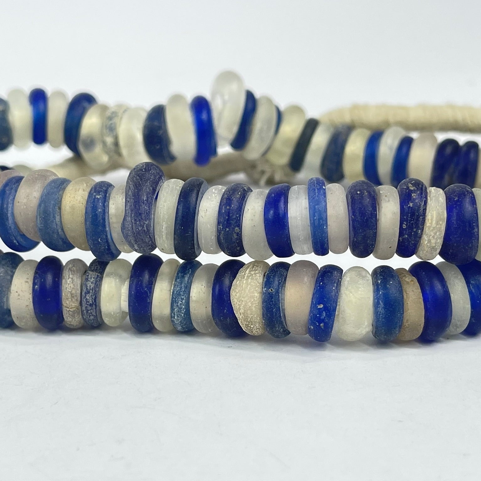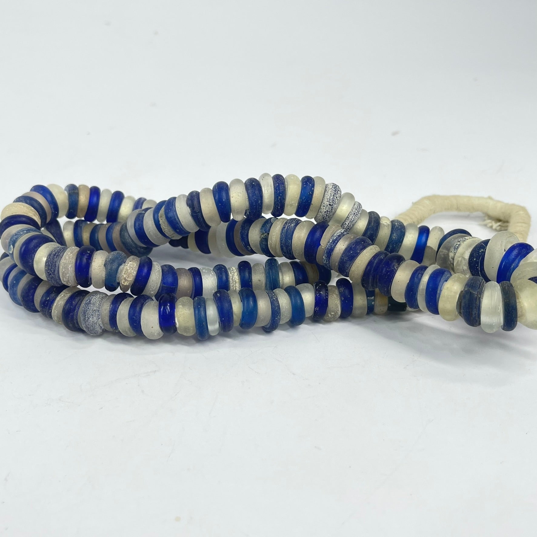 Dutch Donut Translucent and Cobalt Blue Trade Beads 30 Inch