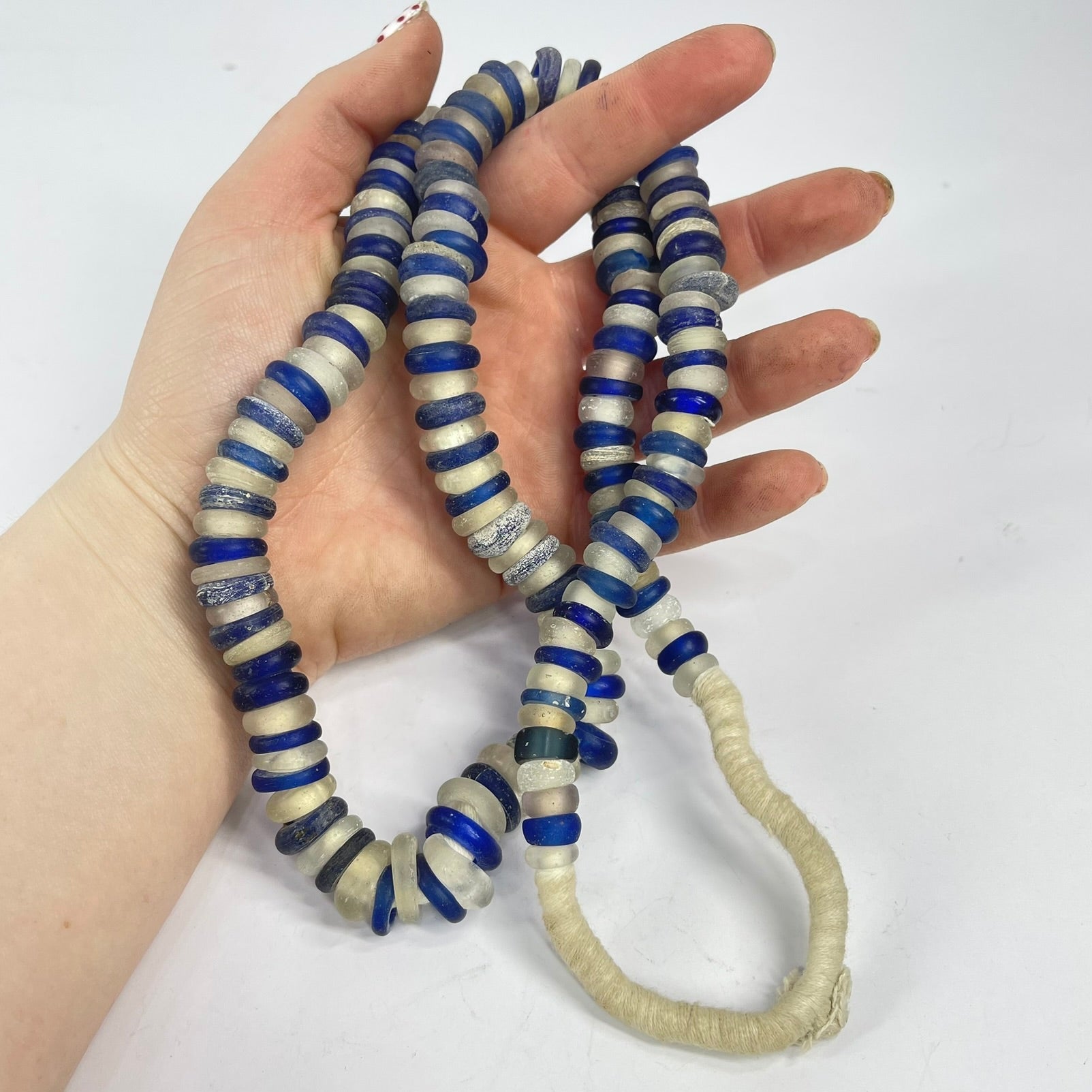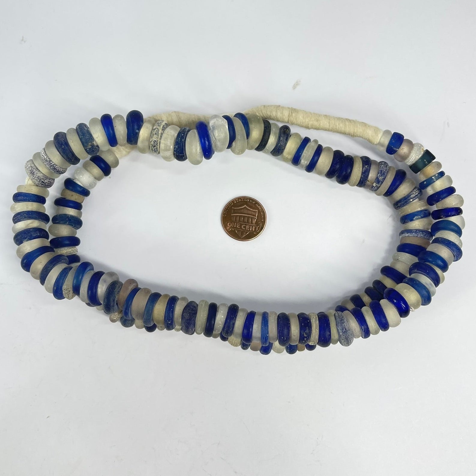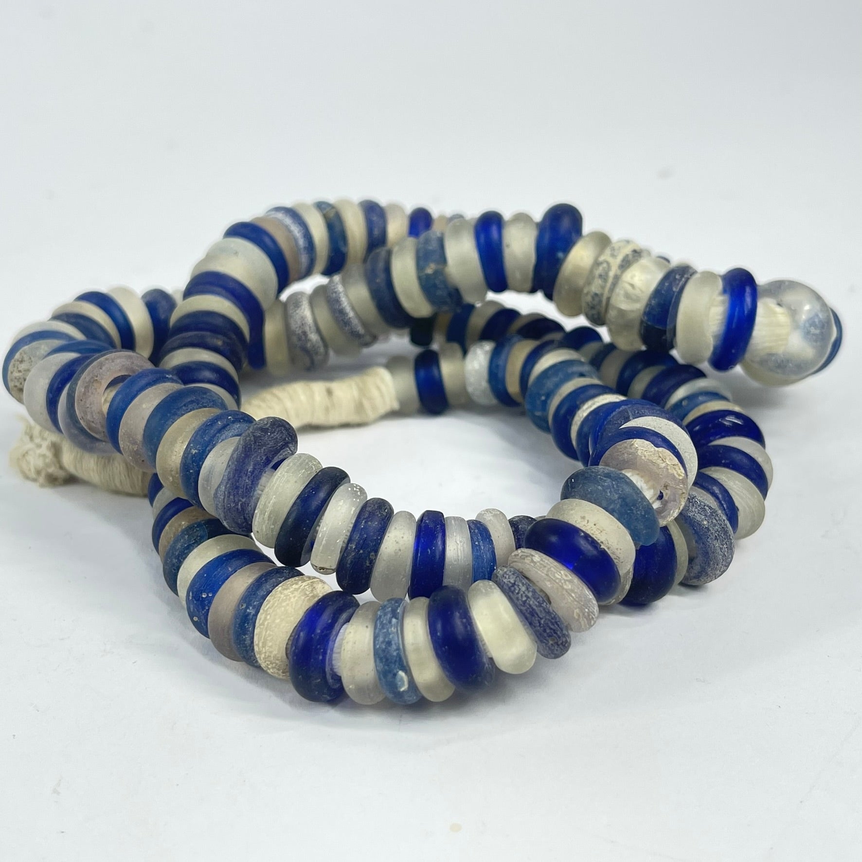 Dutch Donut Translucent and Cobalt Blue Trade Beads 30 Inch