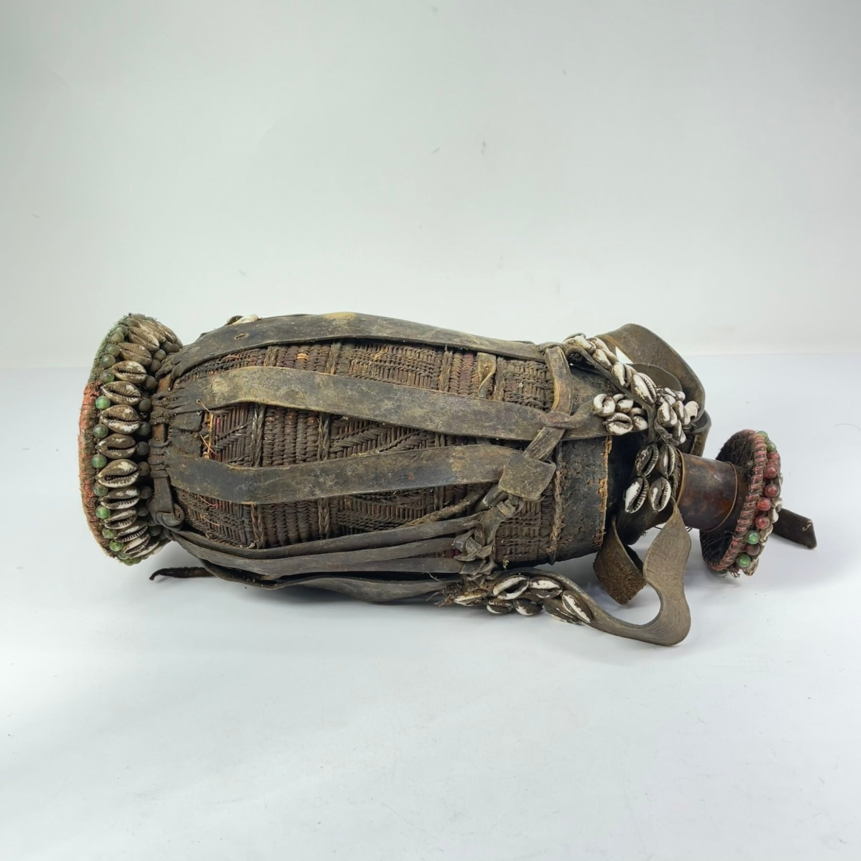 A remarkable ethnographic artifact, this Ethiopian milk jug stands as a testament to the enduring beauty of traditional craftsmanship and cultural heritage. Perfect for collectors of African art, ethnographic objects, or rustic decorative pieces.