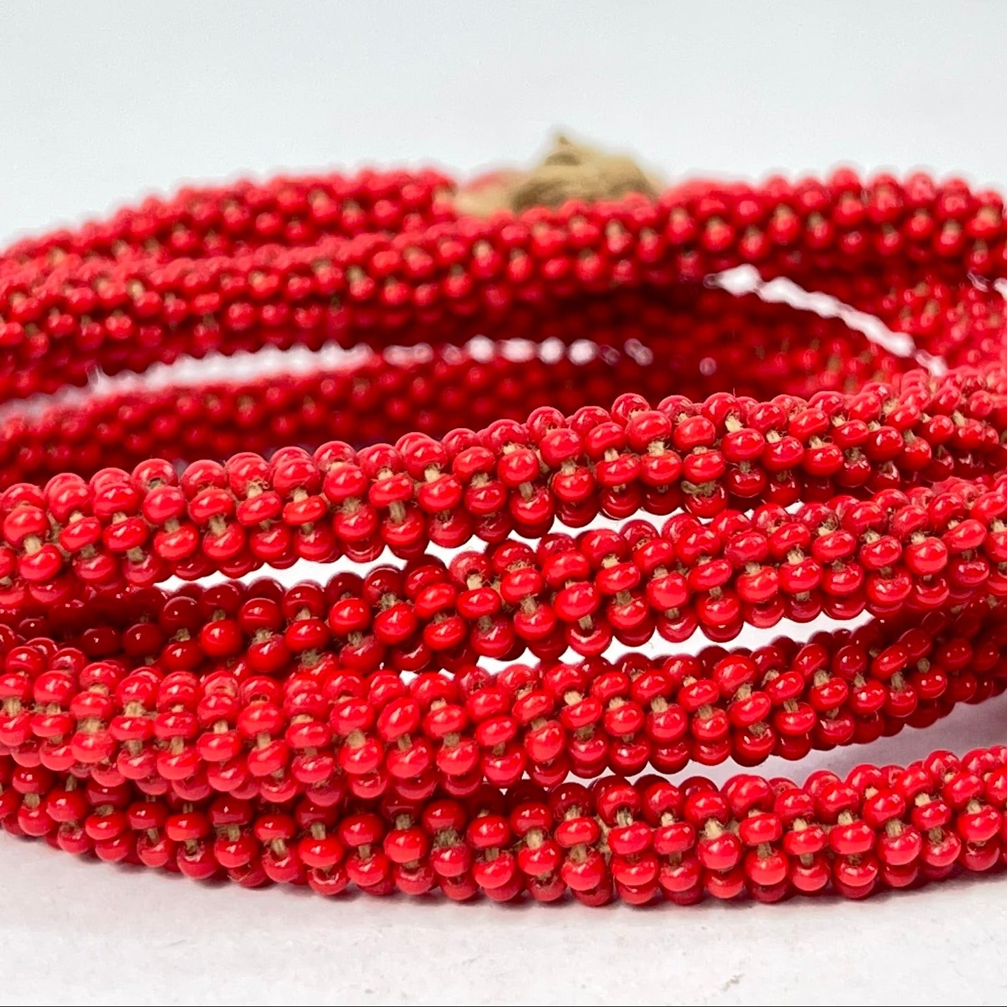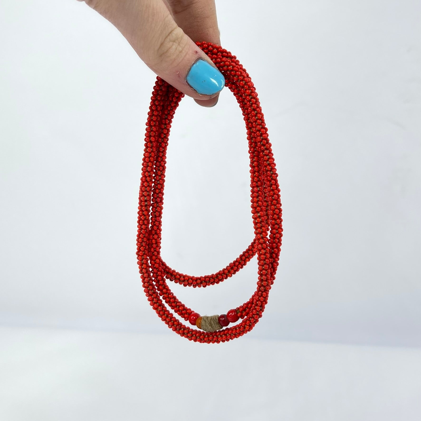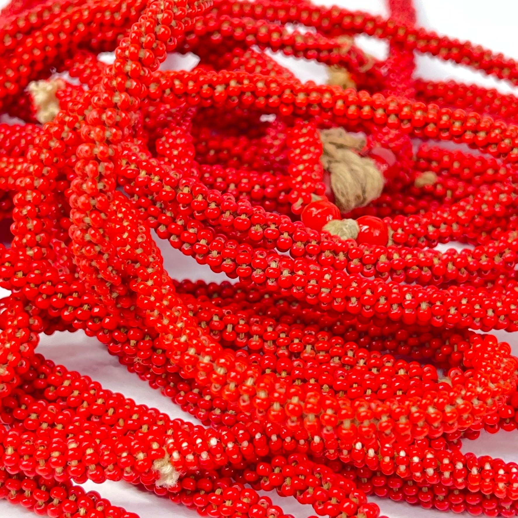 Fulani necklaces are integral to the traditional jewelry of the predominantly Muslim Fulani people in West Africa. These necklaces are emblematic of their rich cultural heritage and distinctive adornment style, often part of elaborate jewelry sets, these beads may be combined with other materials like cowrie shells or gemstones. Beyond their aesthetic appeal, Fulani beaded necklaces function as a form of currency, emphasizing their broader economic and cultural roles within the Fulani community. Passed down through generations, these items remain cherished heirlooms, encapsulating not just beauty but also pride, tradition, and a profound connection to ancestral roots.