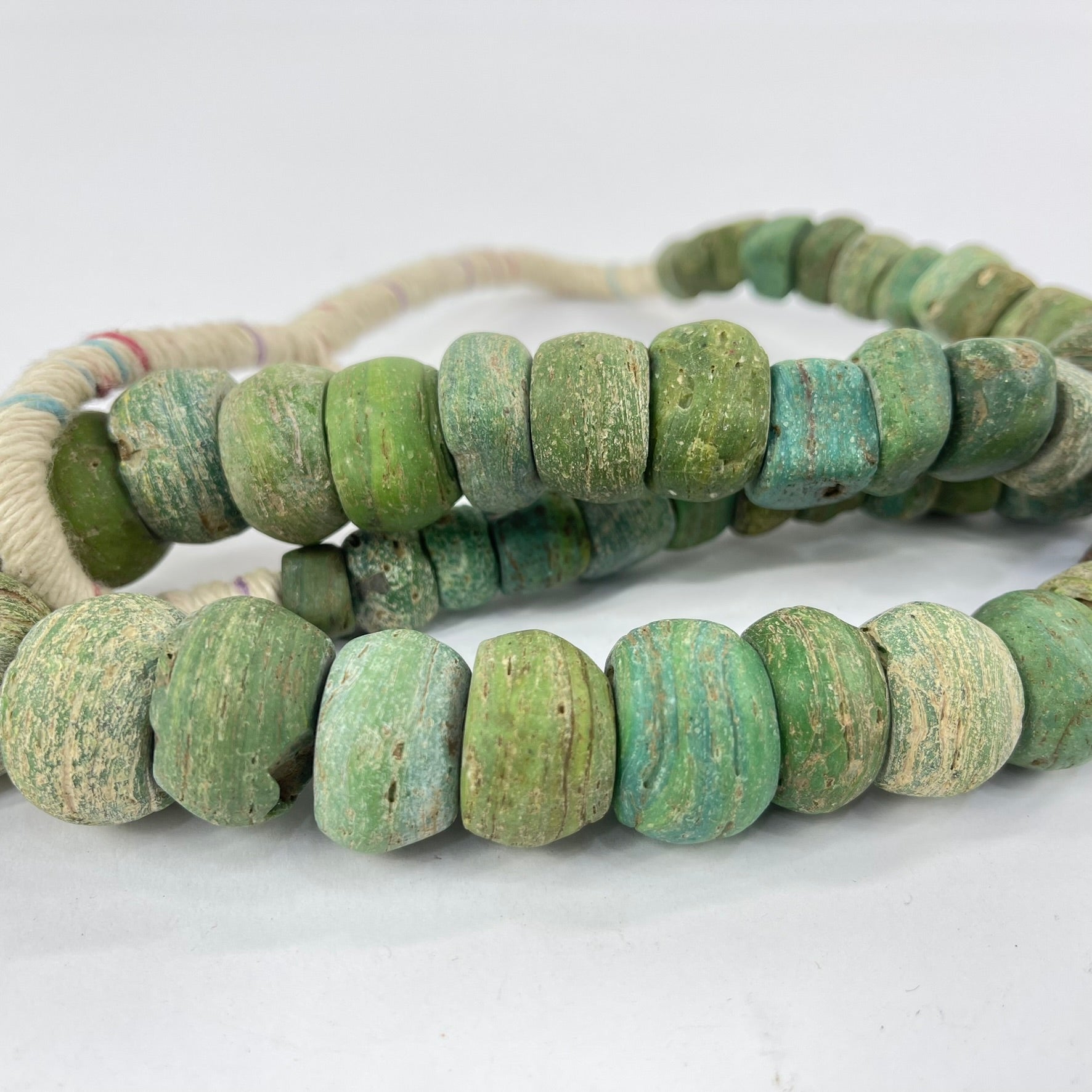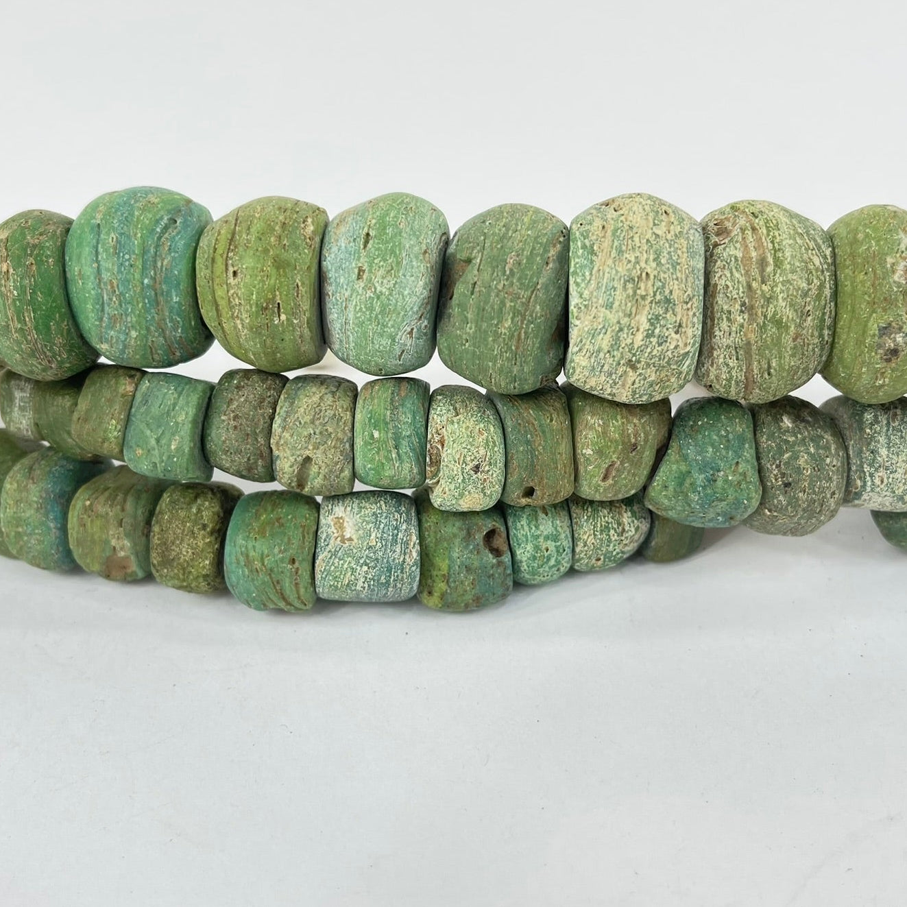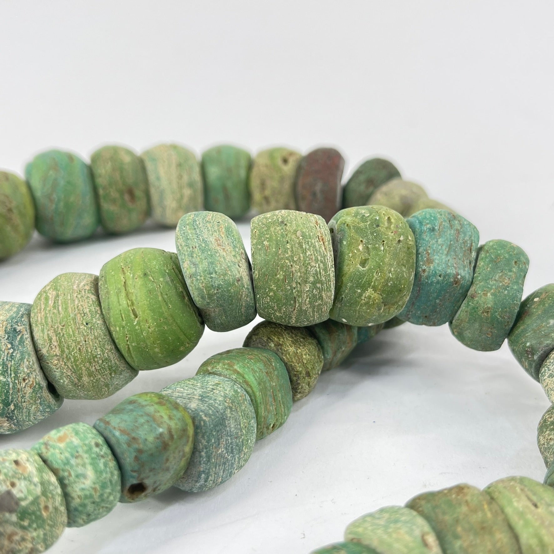 Richly-textured Hebron beads in a green color. These beads are becoming harder and harder to find.