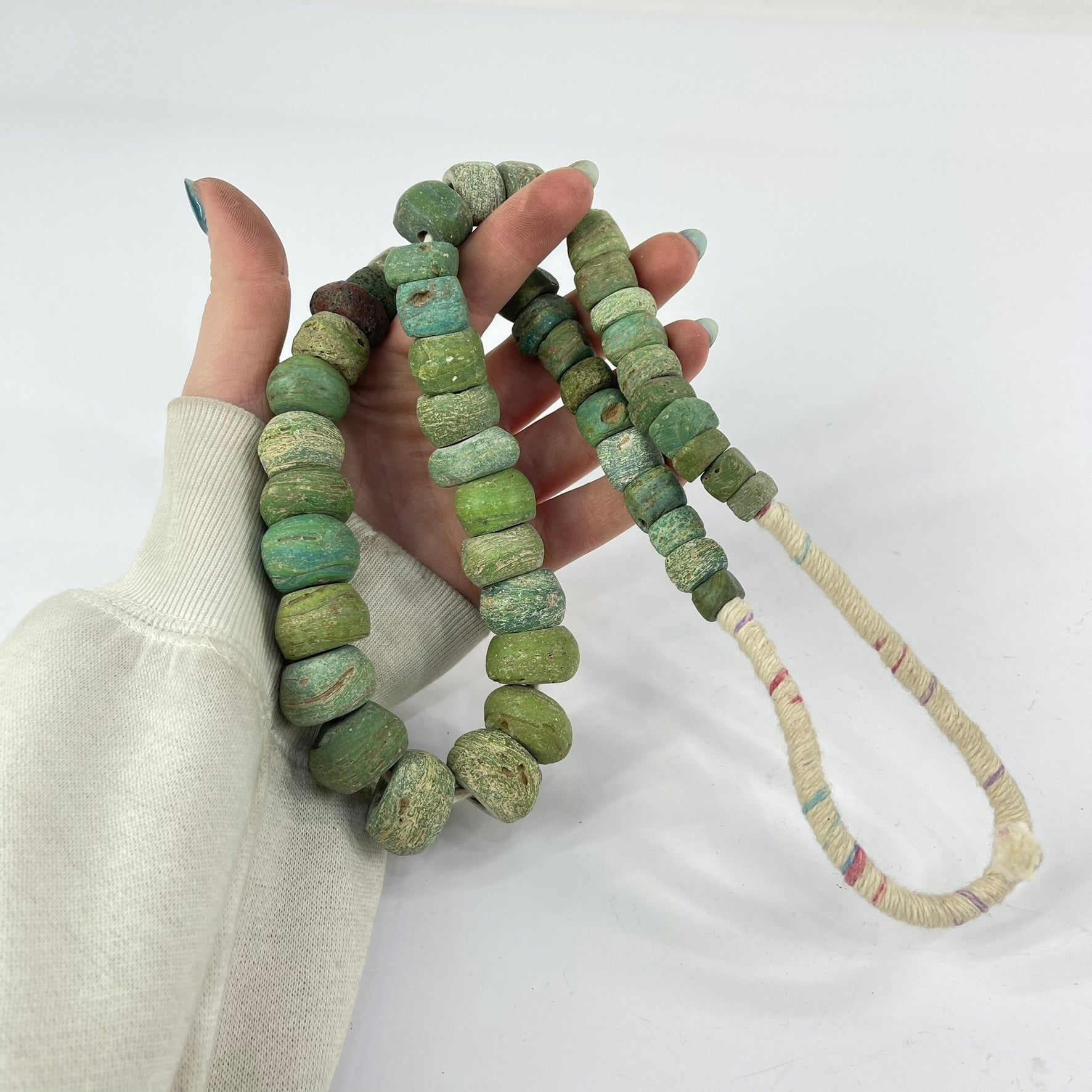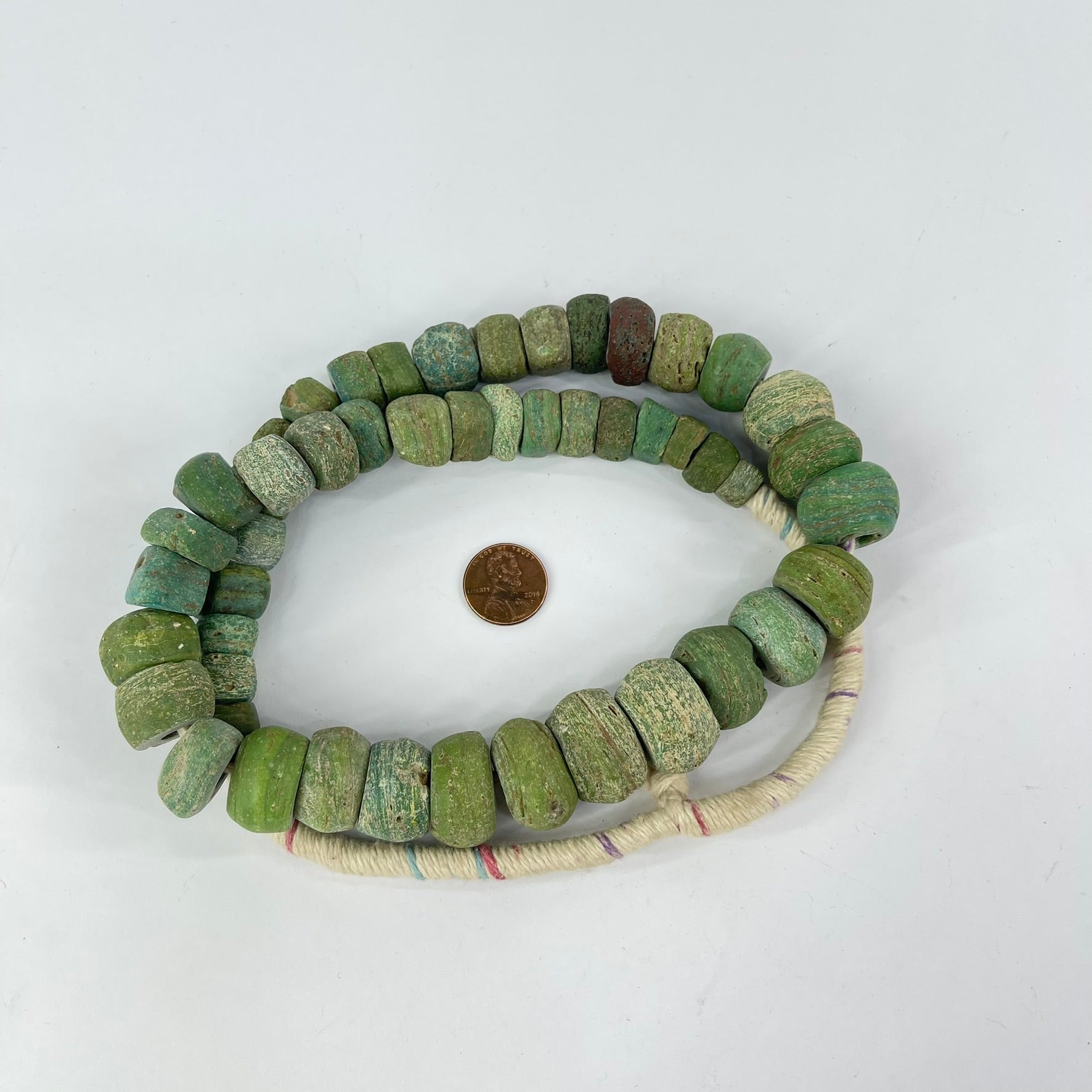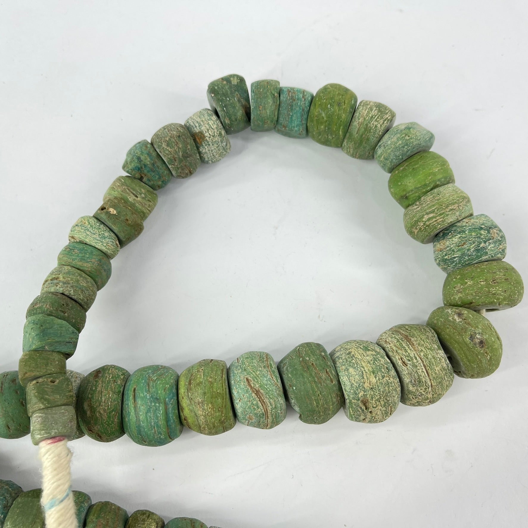 Richly-textured Hebron beads in a green color. These beads are becoming harder and harder to find.