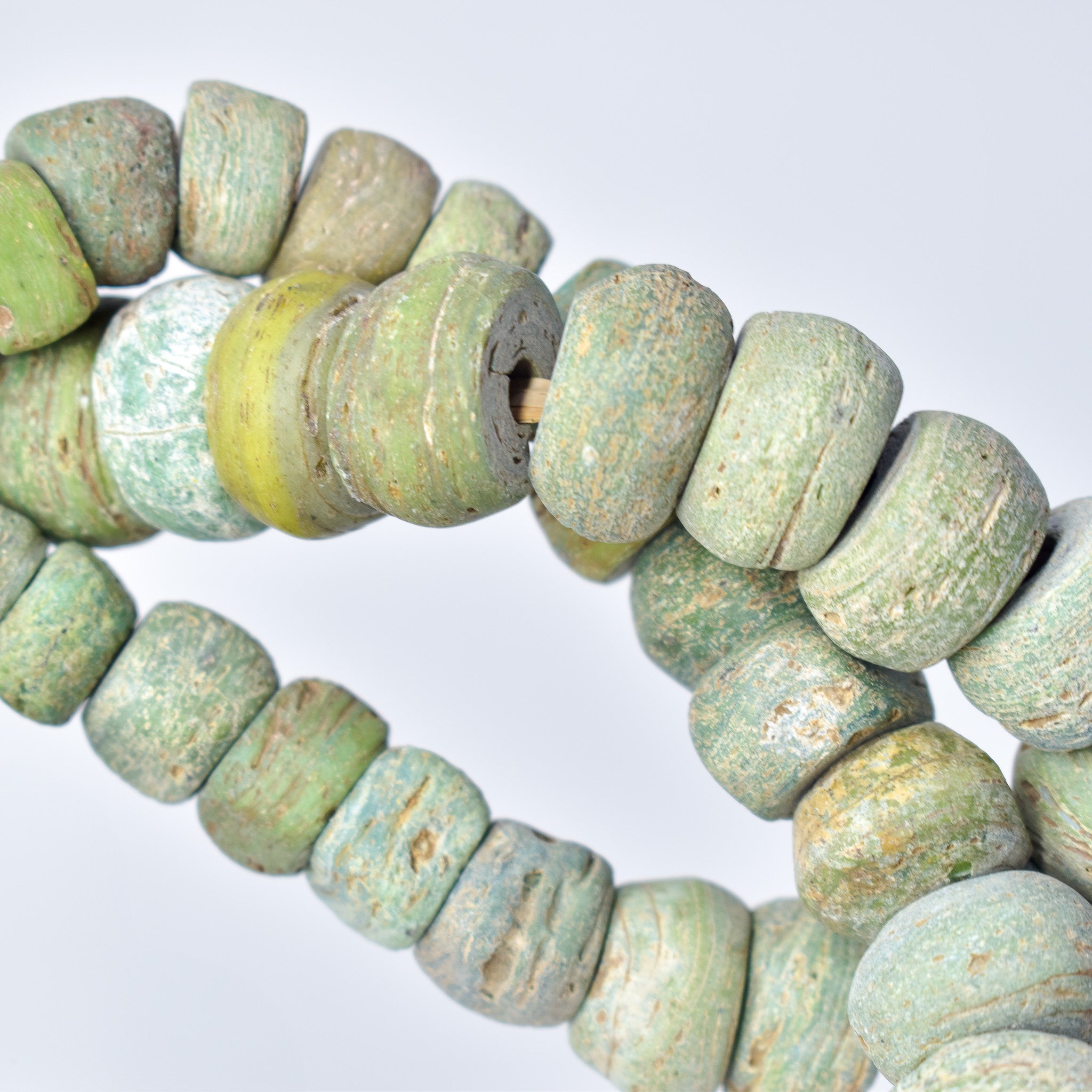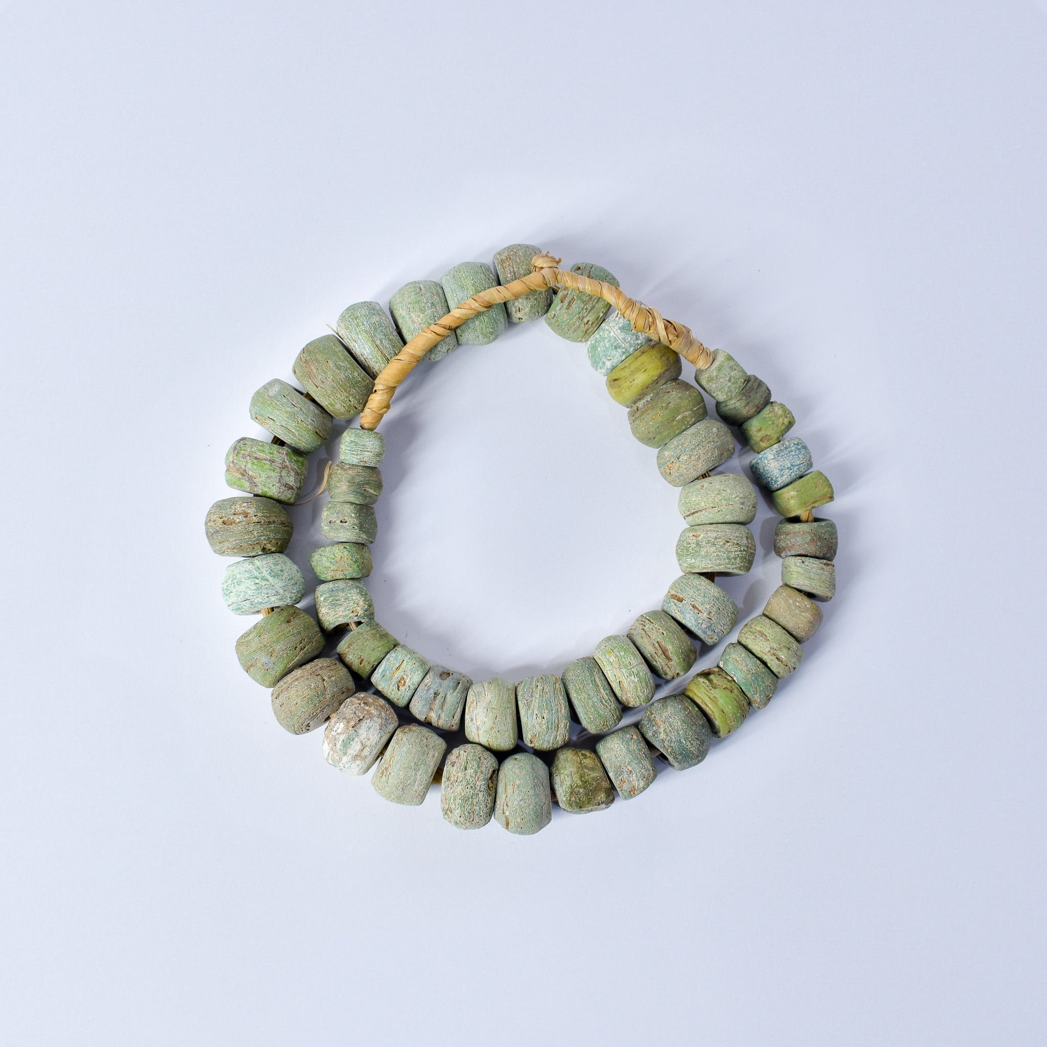 Richly textured Hebron beads in an earthy green color. These beads are becoming harder and harder to find.