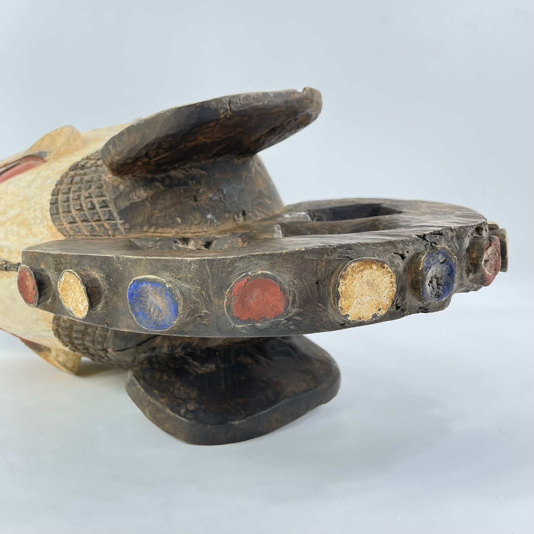 These masks play a significant role in Okkperegede dances, honoring the female ancestors or the "Queen of Women." They are also showcased in various ceremonies and social gatherings, including the beginning of the dry season and elaborate funeral ceremonies. During dances, the masks, whether singular or in pairs, portray women engaged in everyday activities such as farming or going to market. Accompanying costumes are vibrant, adorned with colorful cloth appliqués and intricate designs.