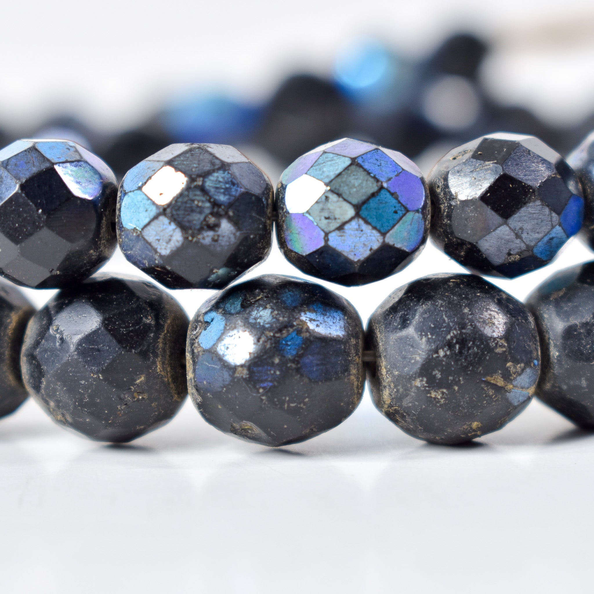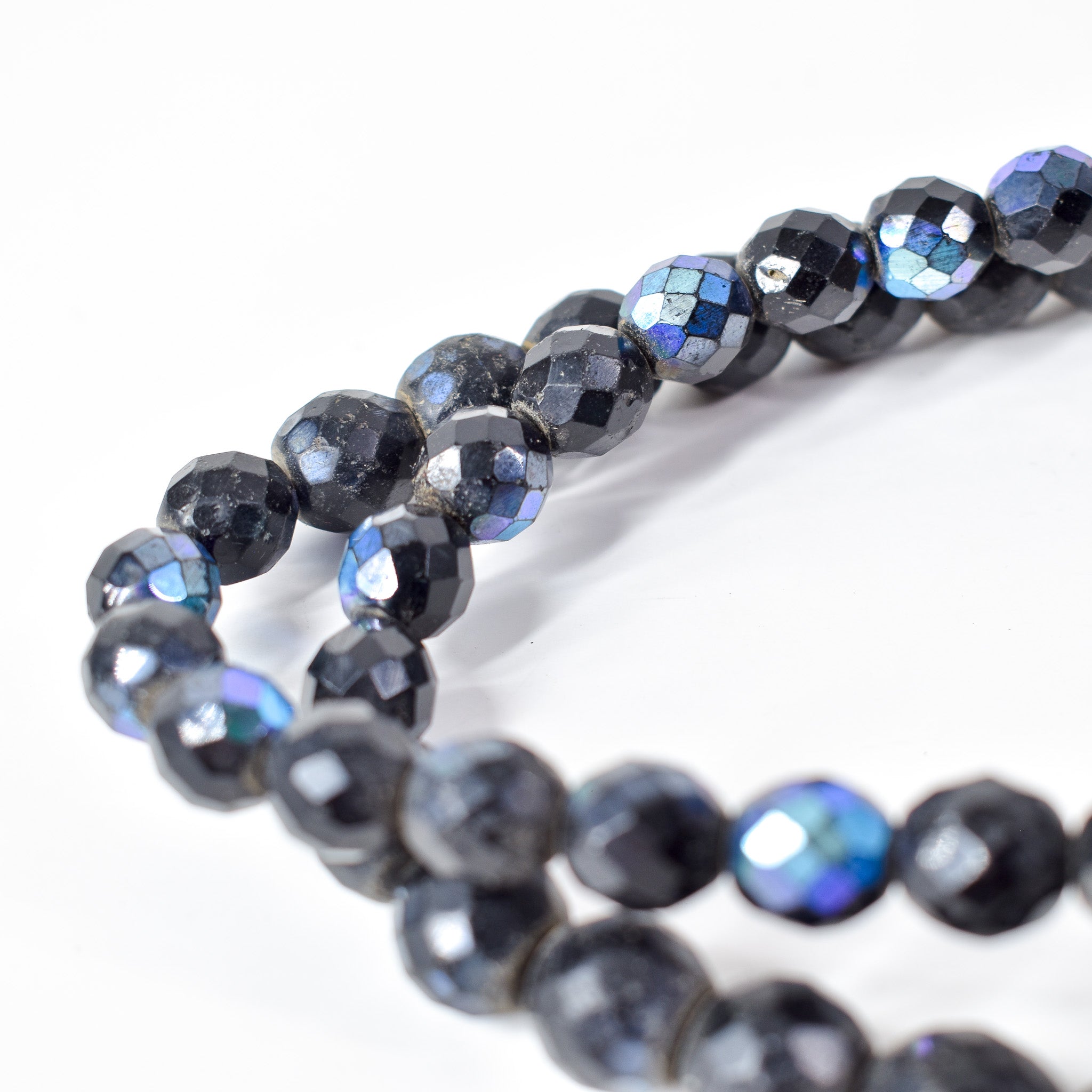 Iridescent Faceted Graduated Bohemian Black Trade Beads
