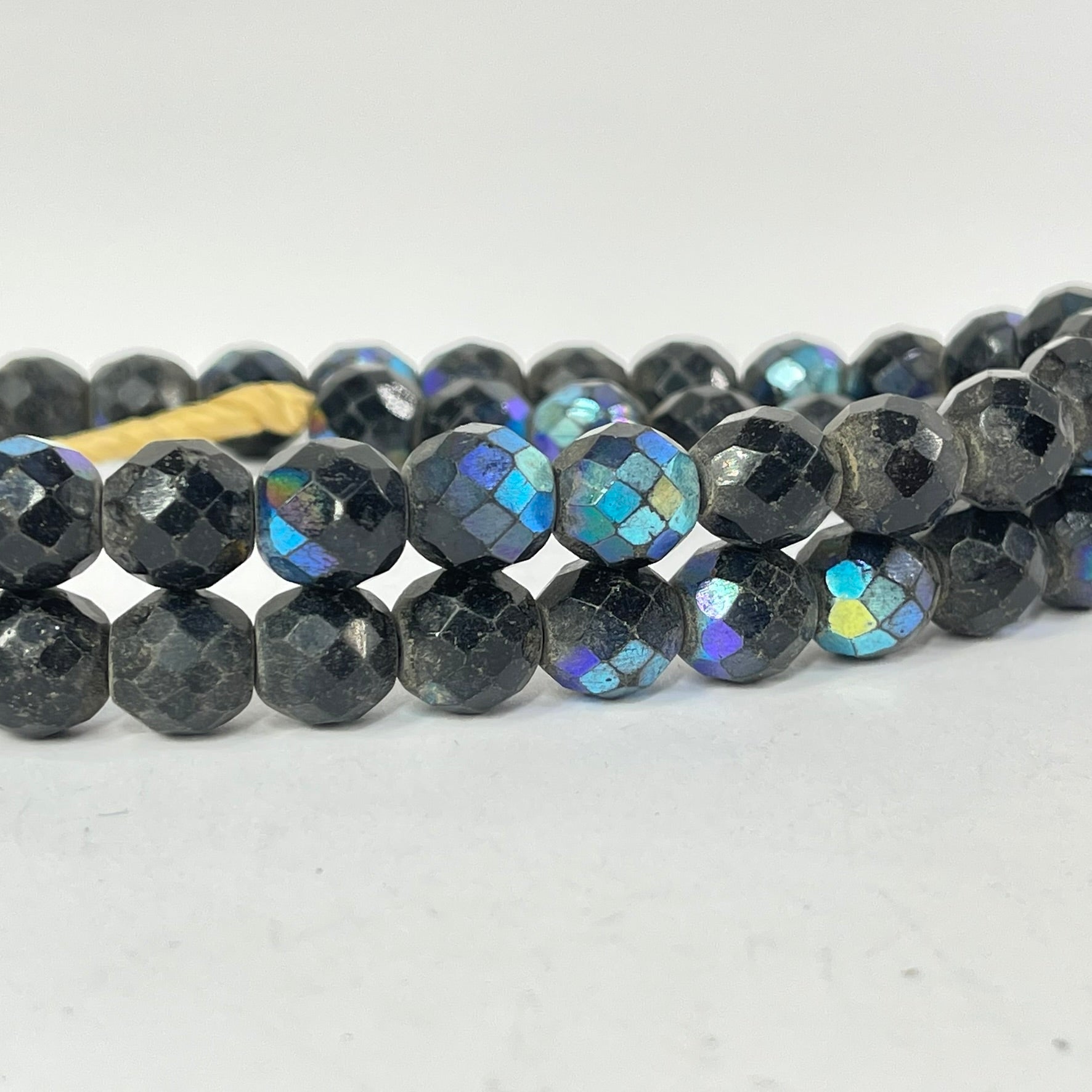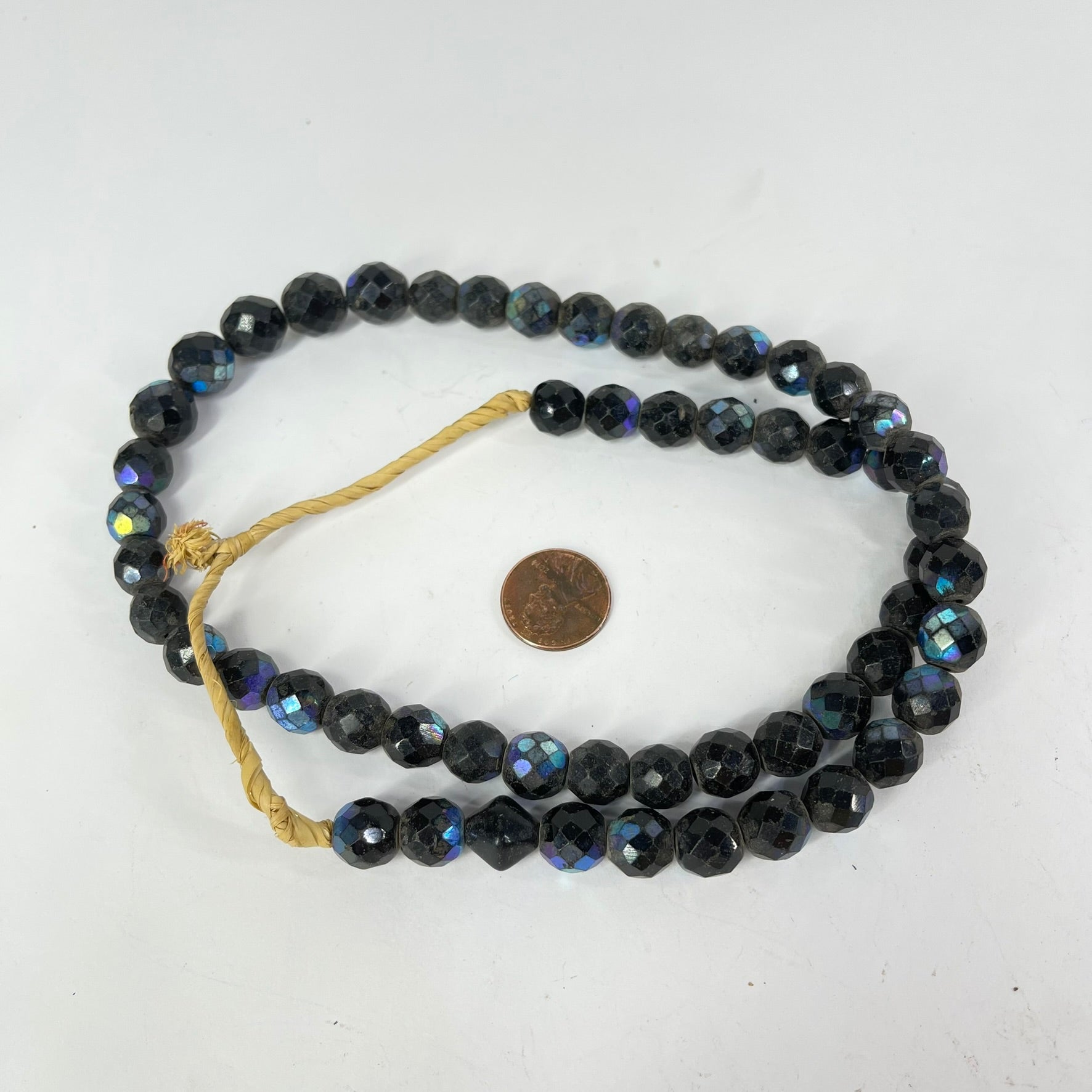 Iridescent Faceted Graduated Bohemian Black Trade Beads