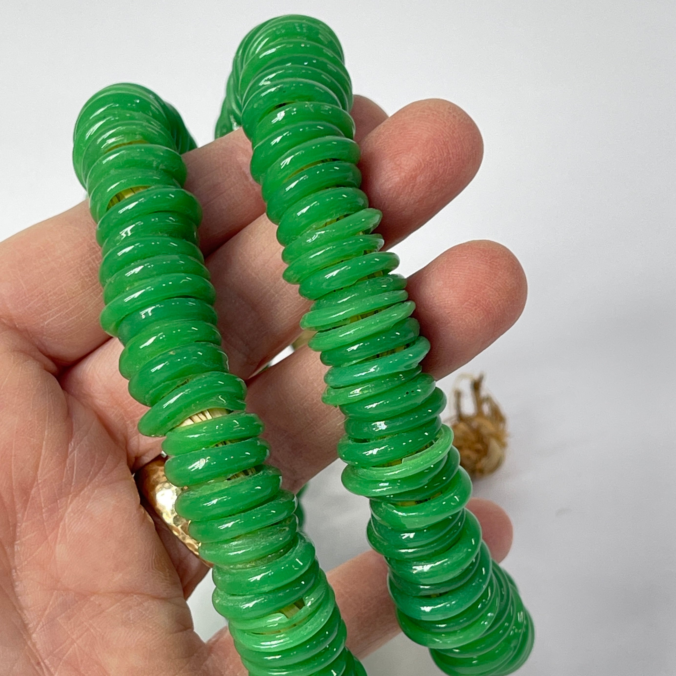 This strand is not intended to be a ready-to-wear necklace. Although the strand can be worn "as is," the raffia holding it together is not durable and may break with use. For this reason, we recommend that you restring the beads before wearing them.