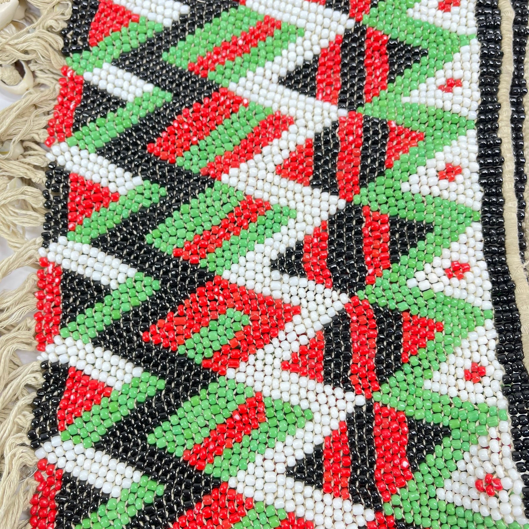 Over time, beaded aprons have replaced the iron ones and are adorned by women during special occasions such as marriages or childbirth presentations. These beaded aprons feature geometric patterns, reflecting designs shared with neighboring peoples. The tradition of cache sexes has evolved into beaded forms, showcasing how customs are maintained through different materials for both cultural and aesthetic expressions. Additionally, both the nomadic Fulani and the Kirdi craft these beaded aprons, with maidens wearing them, sometimes torn as part of wedding night rituals.