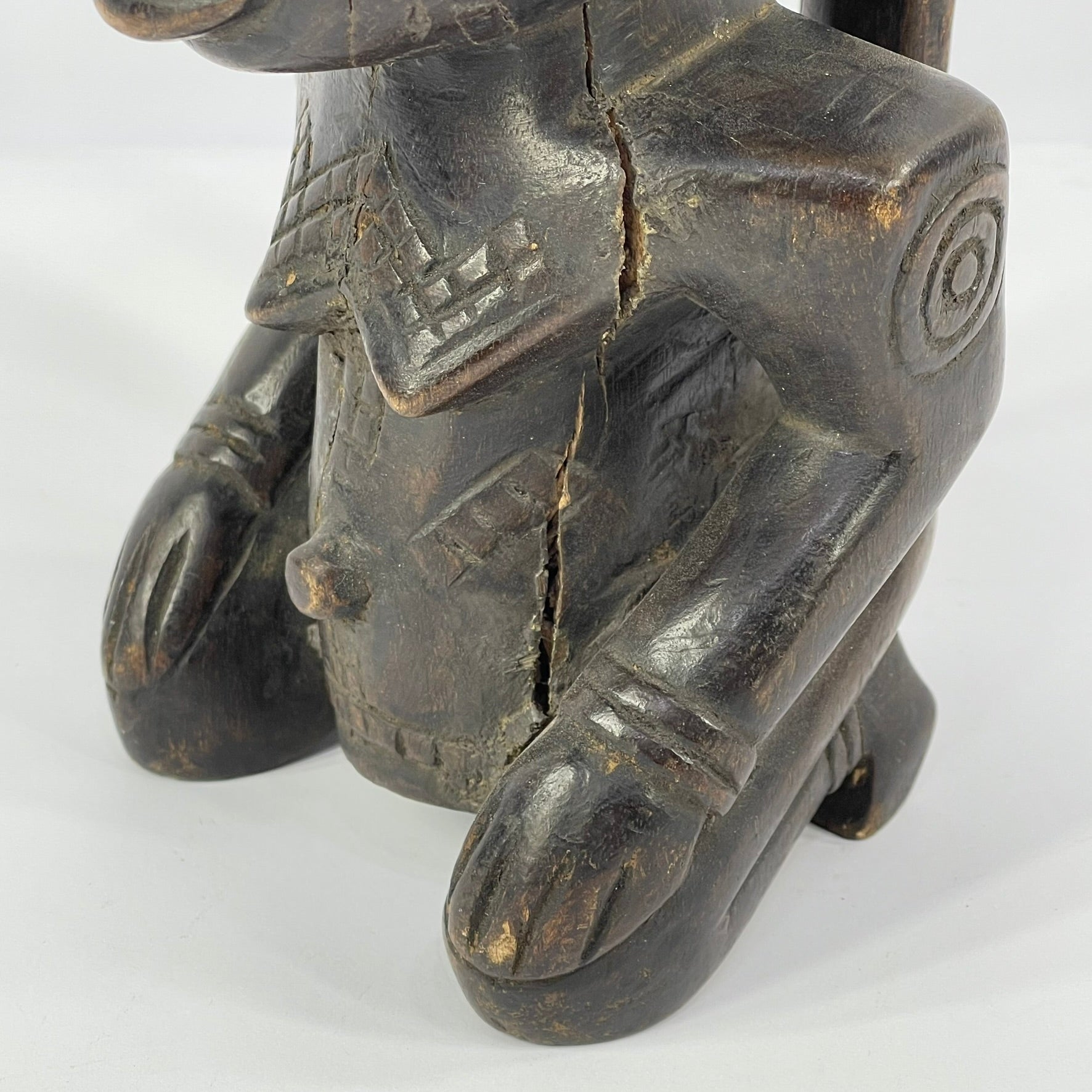 This piece may also have originally formed part of a Kuba pipe, as suggested by its form, carving style, and the hole in the back.
