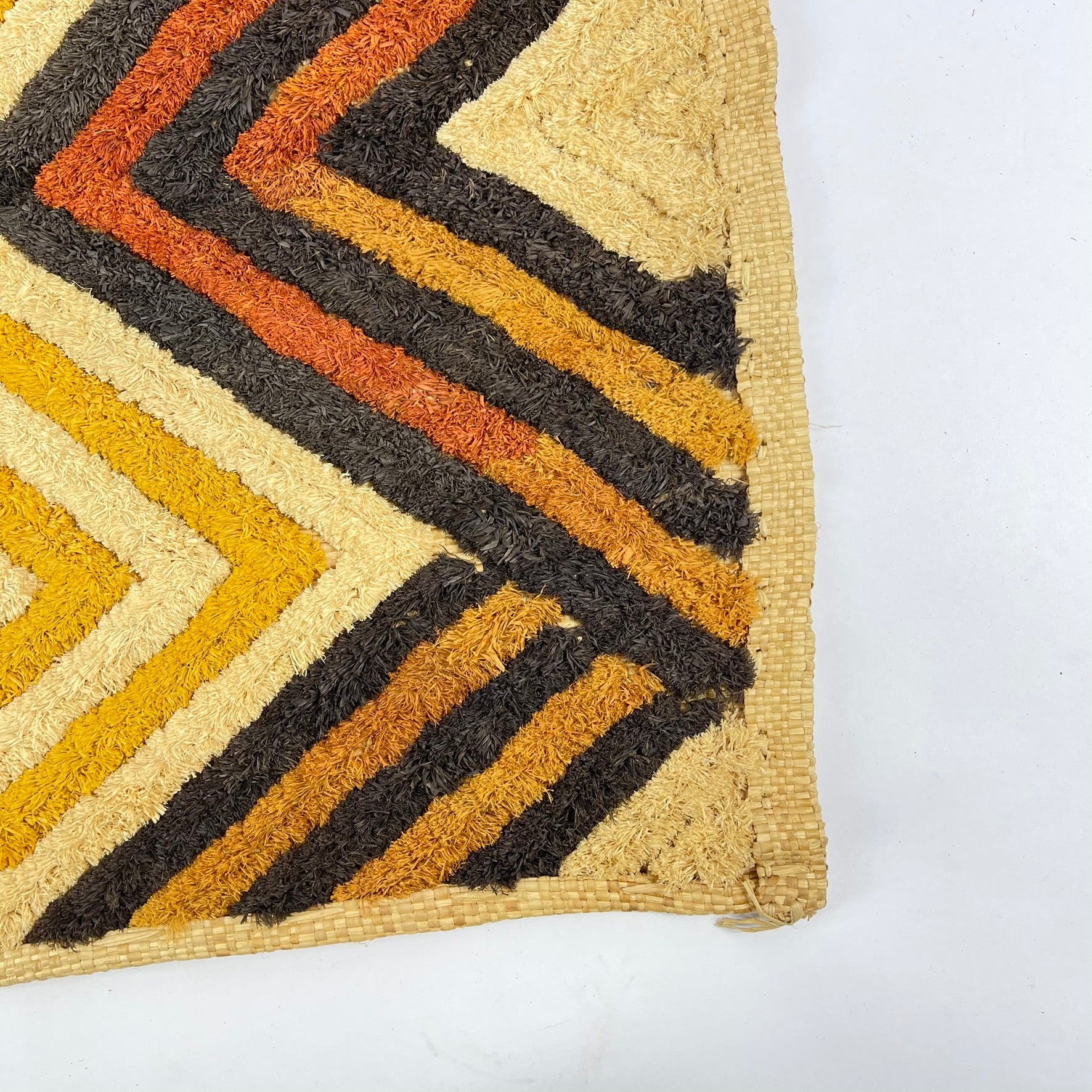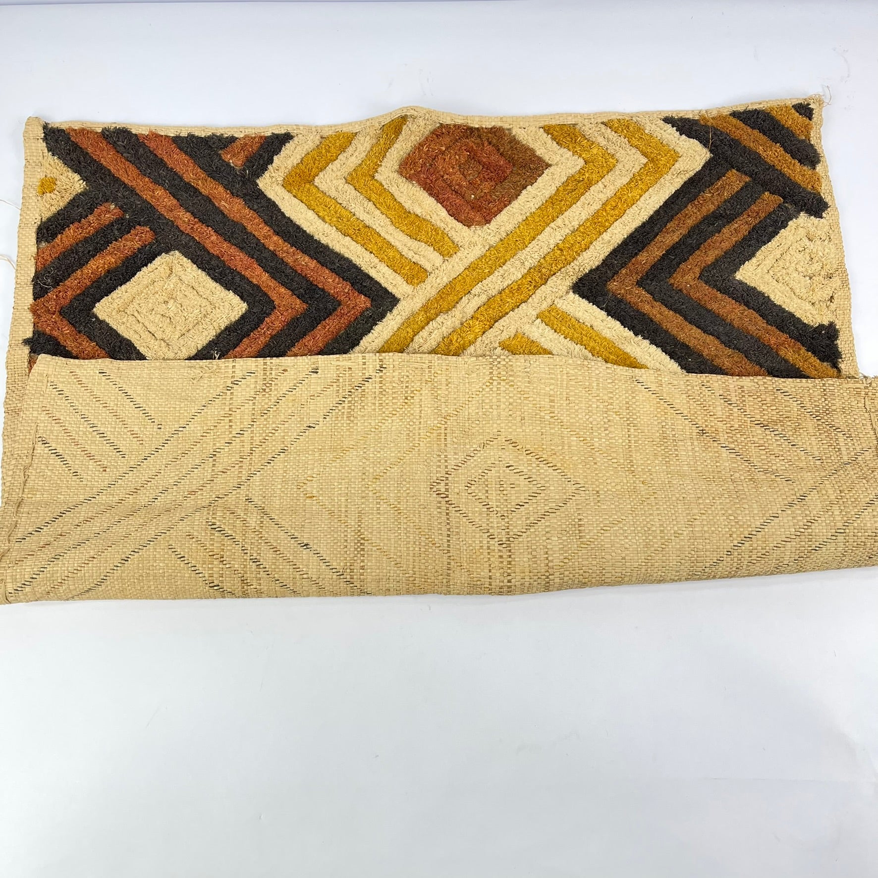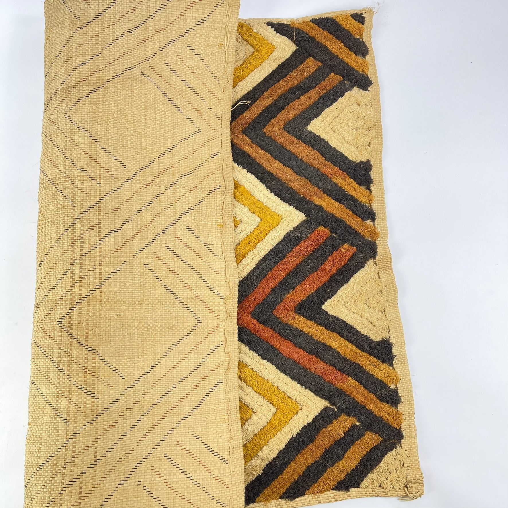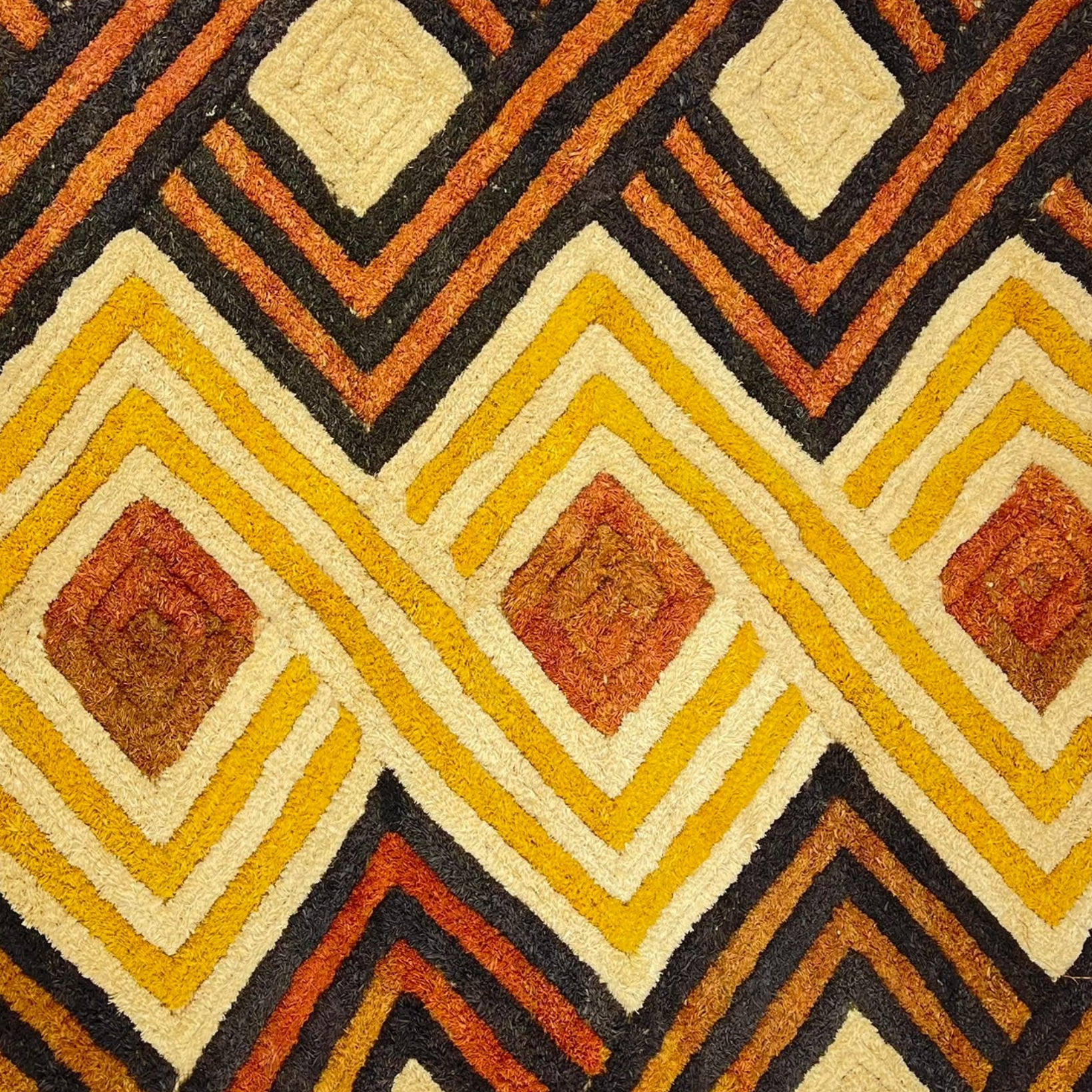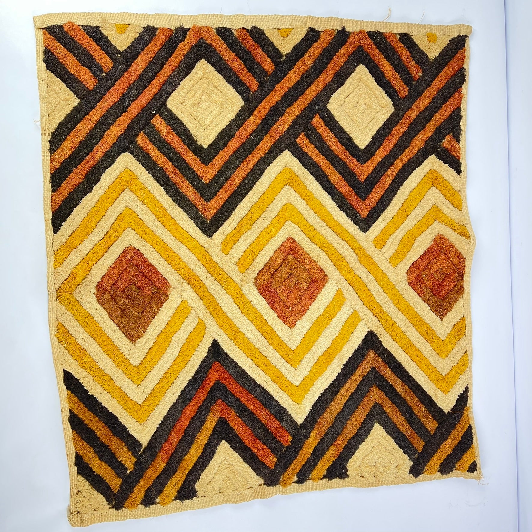 Today, Kuba Shoowa squares are highly regarded for their bold abstraction and modern aesthetic sensibility, making them compelling examples of Central African textile artistry and cultural heritage.