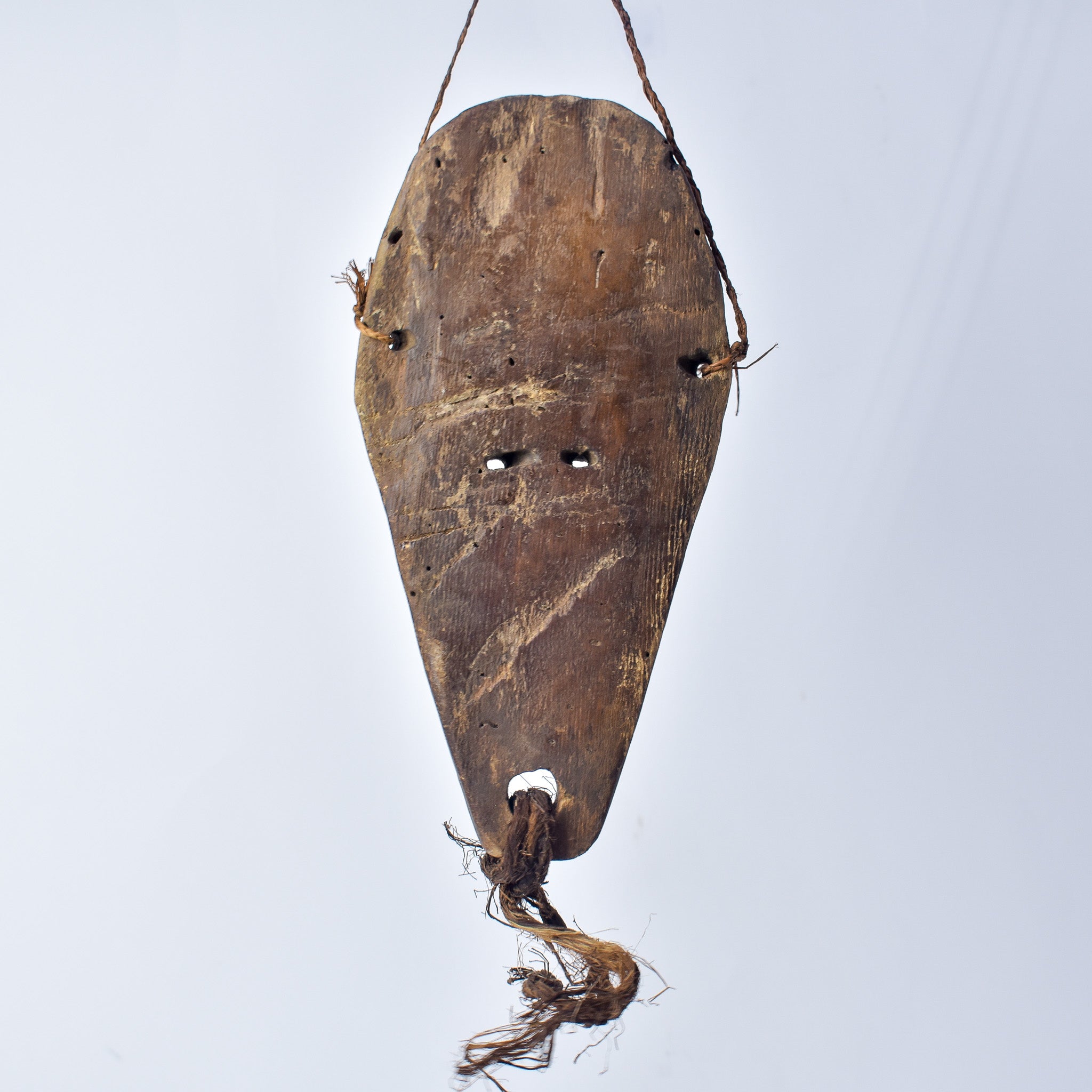 The Lega, also known as Warega, reside along the Lualaba River near Lake Tanganyika in the DRC, governing themselves through the communal "Bwami" association. This group comprises both genders, engaging in a structured progression through its ranks, involving challenges and knowledge demonstrations. Lega masks, wooden and featuring elongated faces with a central ridge, almond-shaped eyes, and symbolic geometric patterns, serve crucial roles in ceremonies, including initiations, funerals, and celebrations. Believed to encapsulate spiritual forces and facilitate communication with ancestors, these masks hold immense cultural and spiritual value for the Lega beyond their artistic appeal. Within the Bwami system, individuals aim to attain the esteemed status of "Kindi," wielding moral influence. Masks act as badges, representing various levels of Bwami knowledge and validating an initiate's rank, with the privilege to wear or display them earned through initiation.