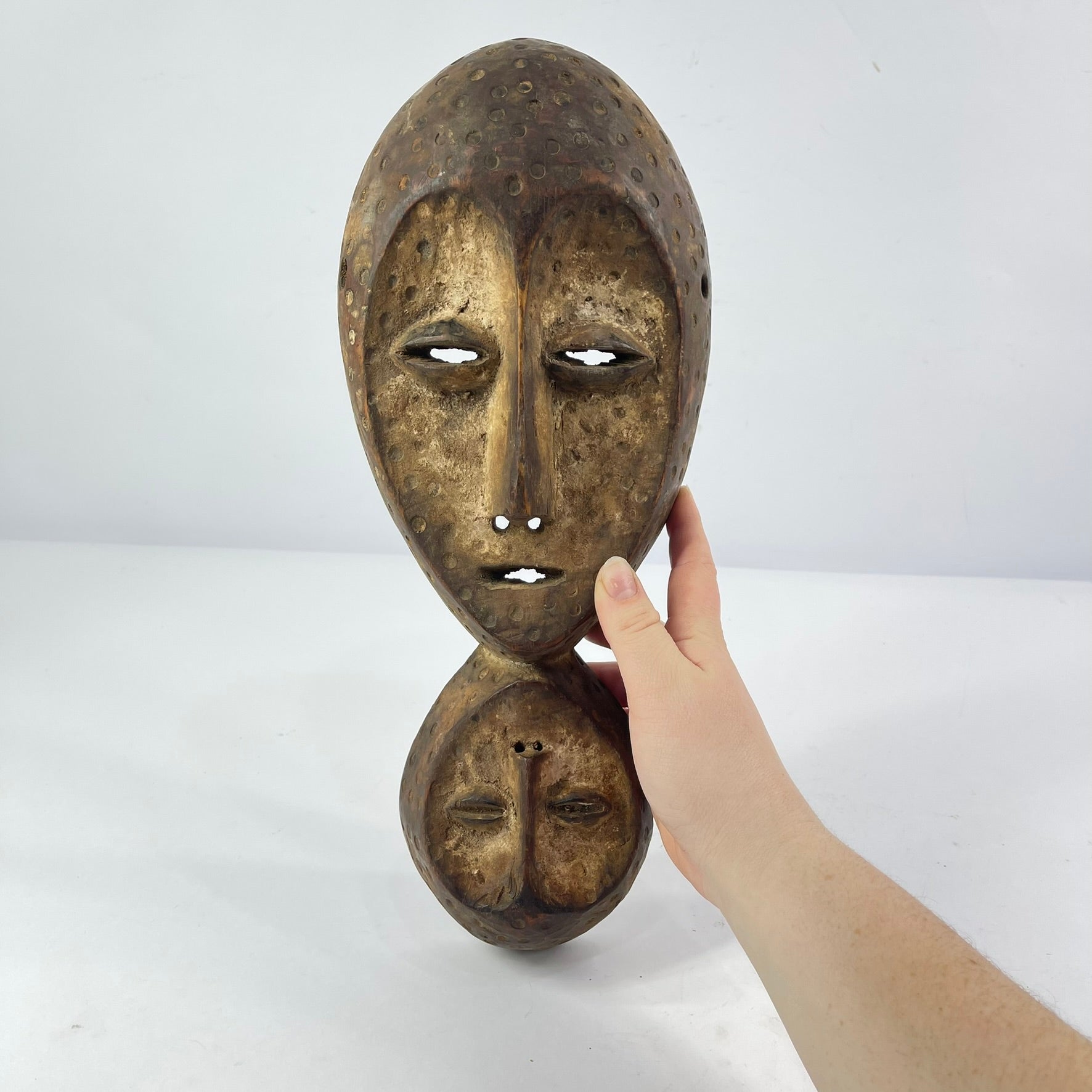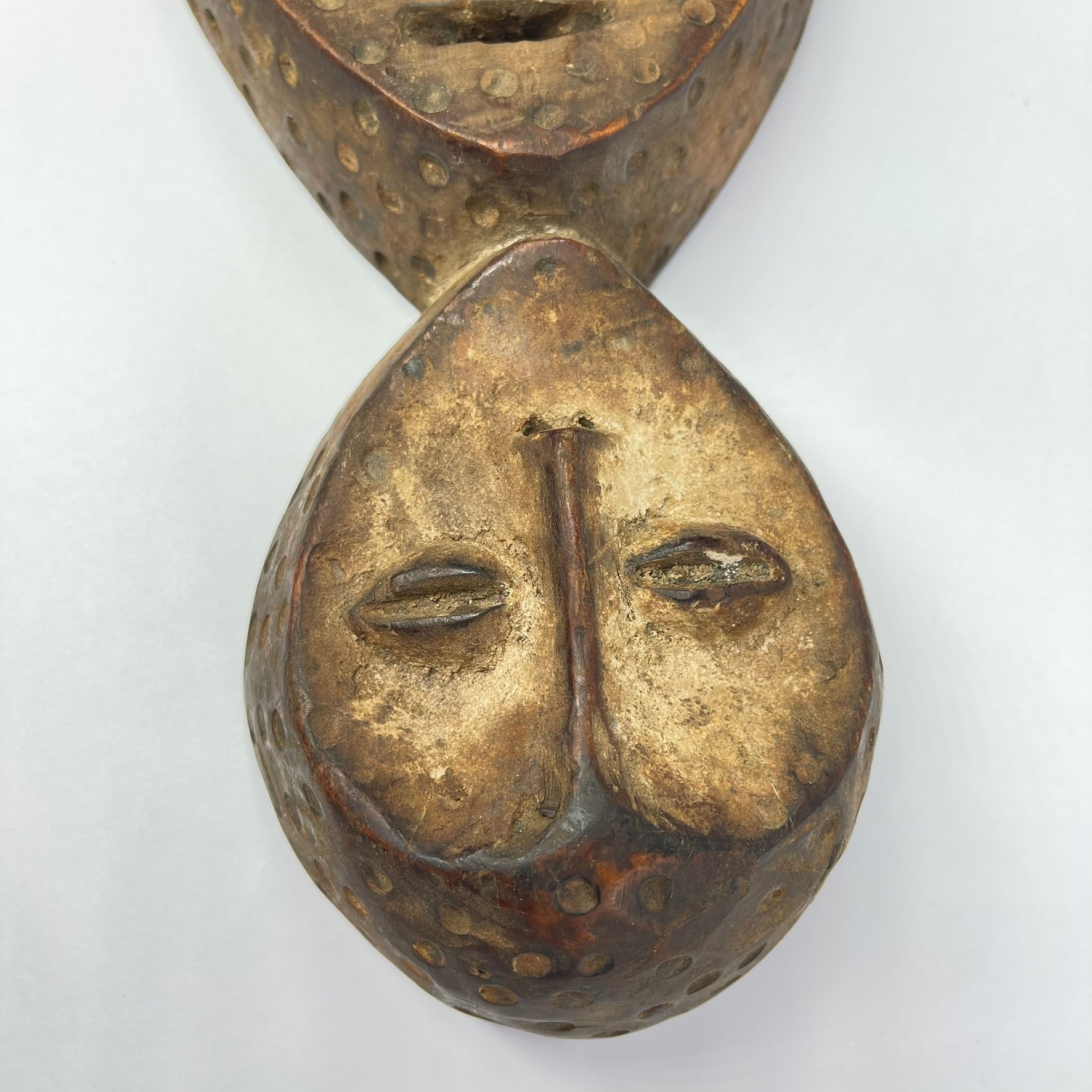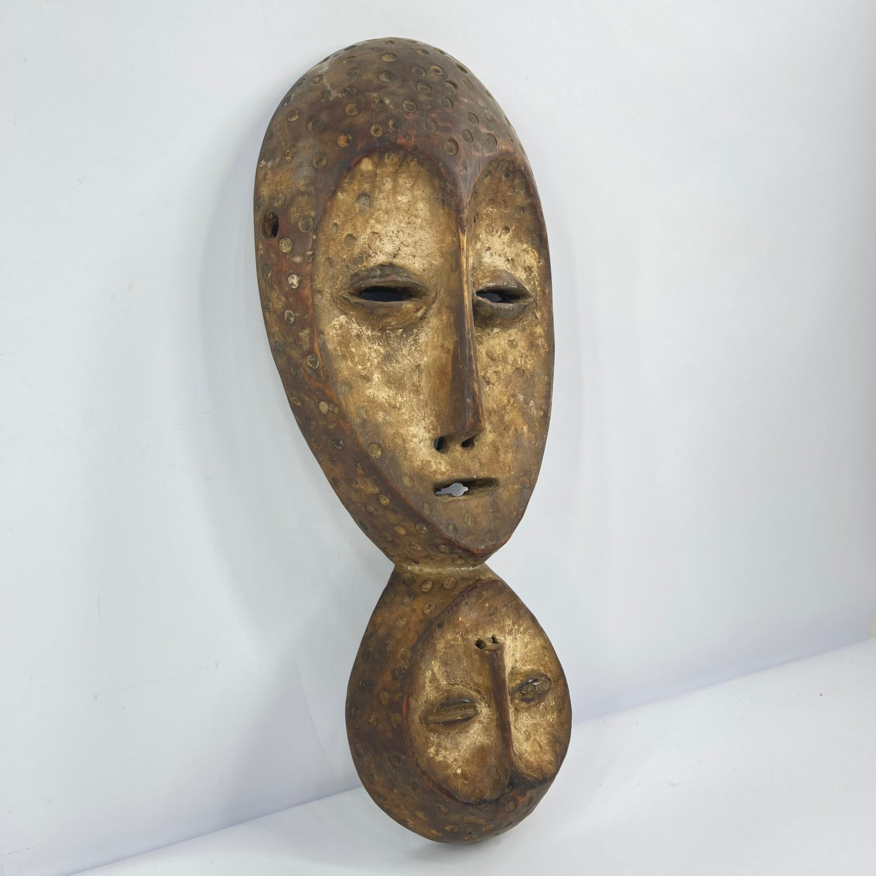 Lega masks, wooden and featuring elongated faces with a central ridge, almond-shaped eyes, and symbolic geometric patterns, serve crucial roles in ceremonies, including initiations, funerals, and celebrations. Believed to encapsulate spiritual forces and facilitate communication with ancestors, these masks hold immense cultural and spiritual value for the Lega beyond their artistic appeal. Within the Bwami system, individuals aim to attain the esteemed status of "Kindi," wielding moral influence. Masks act as badges, representing various levels of Bwami knowledge and validating an initiate's rank, with the privilege to wear or display them earned through initiation. The Lega, also known as Warega, reside along the Lualaba River near Lake Tanganyika in the DRC, governing themselves through the communal "Bwami" association. This group comprises both genders, engaging in a structured progression through its ranks, involving challenges and knowledge demonstrations.