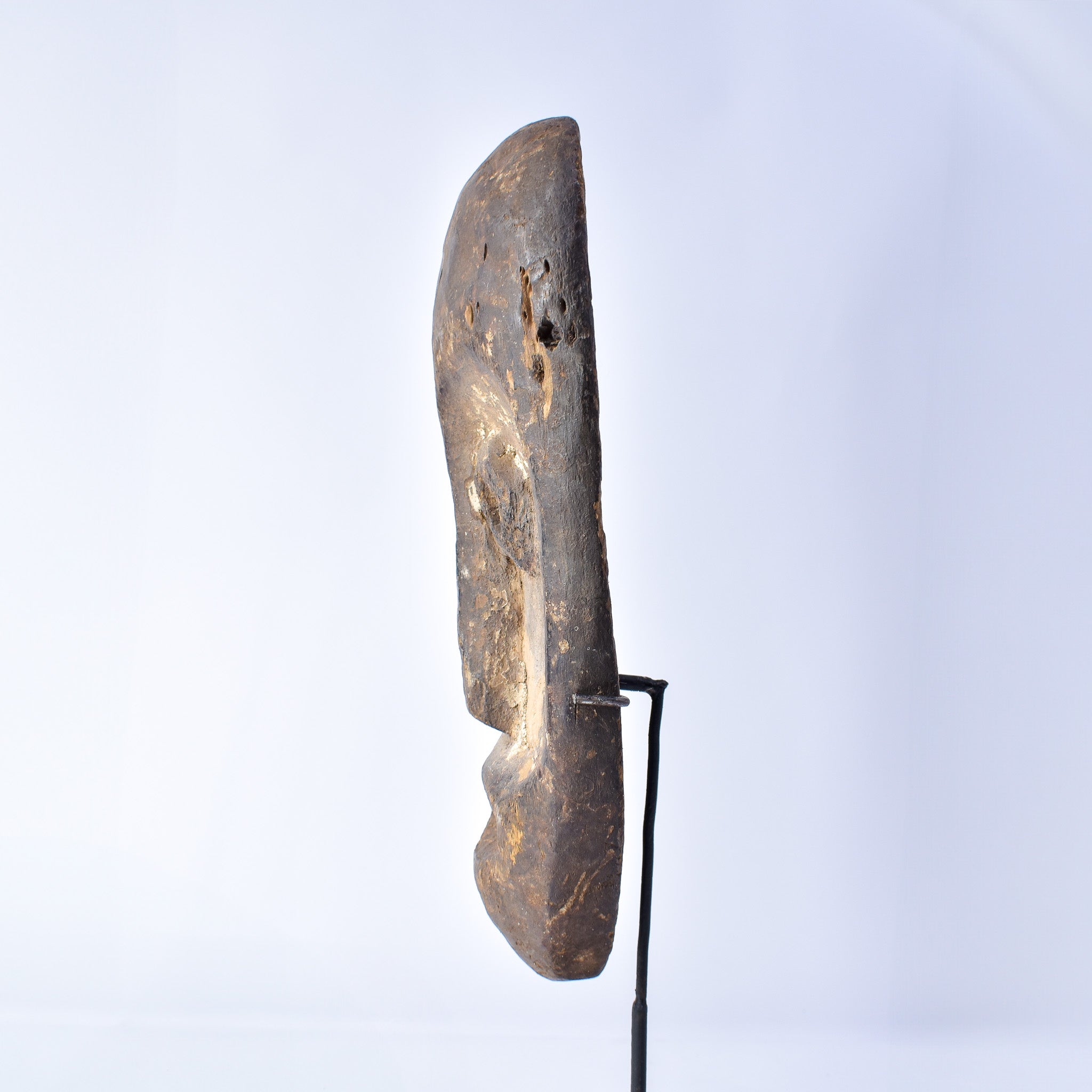 Lega masks, wooden and featuring elongated faces with a central ridge, almond-shaped eyes, and symbolic geometric patterns, serve crucial roles in ceremonies, including initiations, funerals, and celebrations. Believed to encapsulate spiritual forces and facilitate communication with ancestors, these masks hold immense cultural and spiritual value for the Lega beyond their artistic appeal. Within the Bwami system, individuals aim to attain the esteemed status of "Kindi," wielding moral influence. Masks act as badges, representing various levels of Bwami knowledge and validating an initiate's rank, with the privilege to wear or display them earned through initiation. The Lega, also known as Warega, reside along the Lualaba River near Lake Tanganyika in the DRC, governing themselves through the communal "Bwami" association. This group comprises both genders, engaging in a structured progression through its ranks, involving challenges and knowledge demonstrations.
