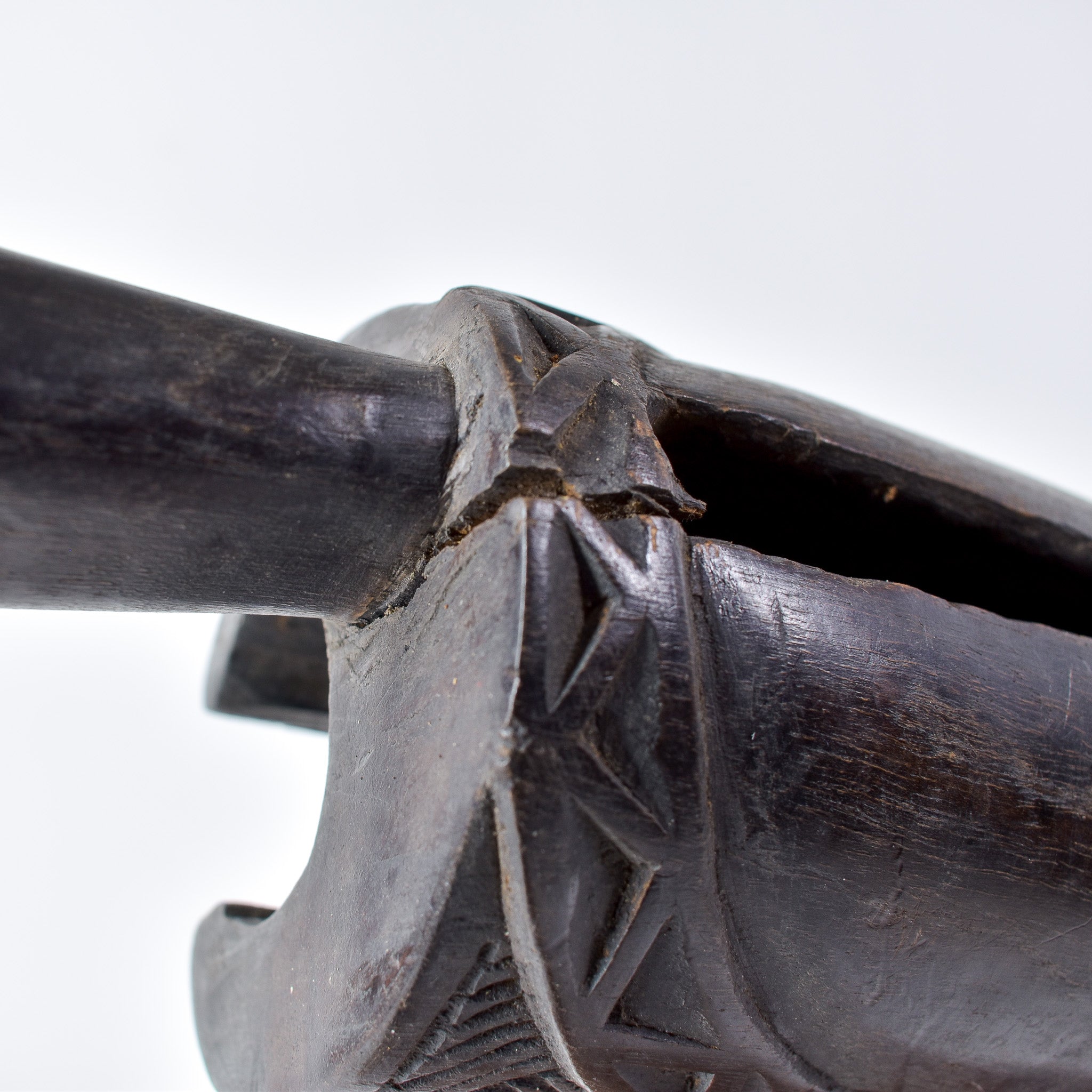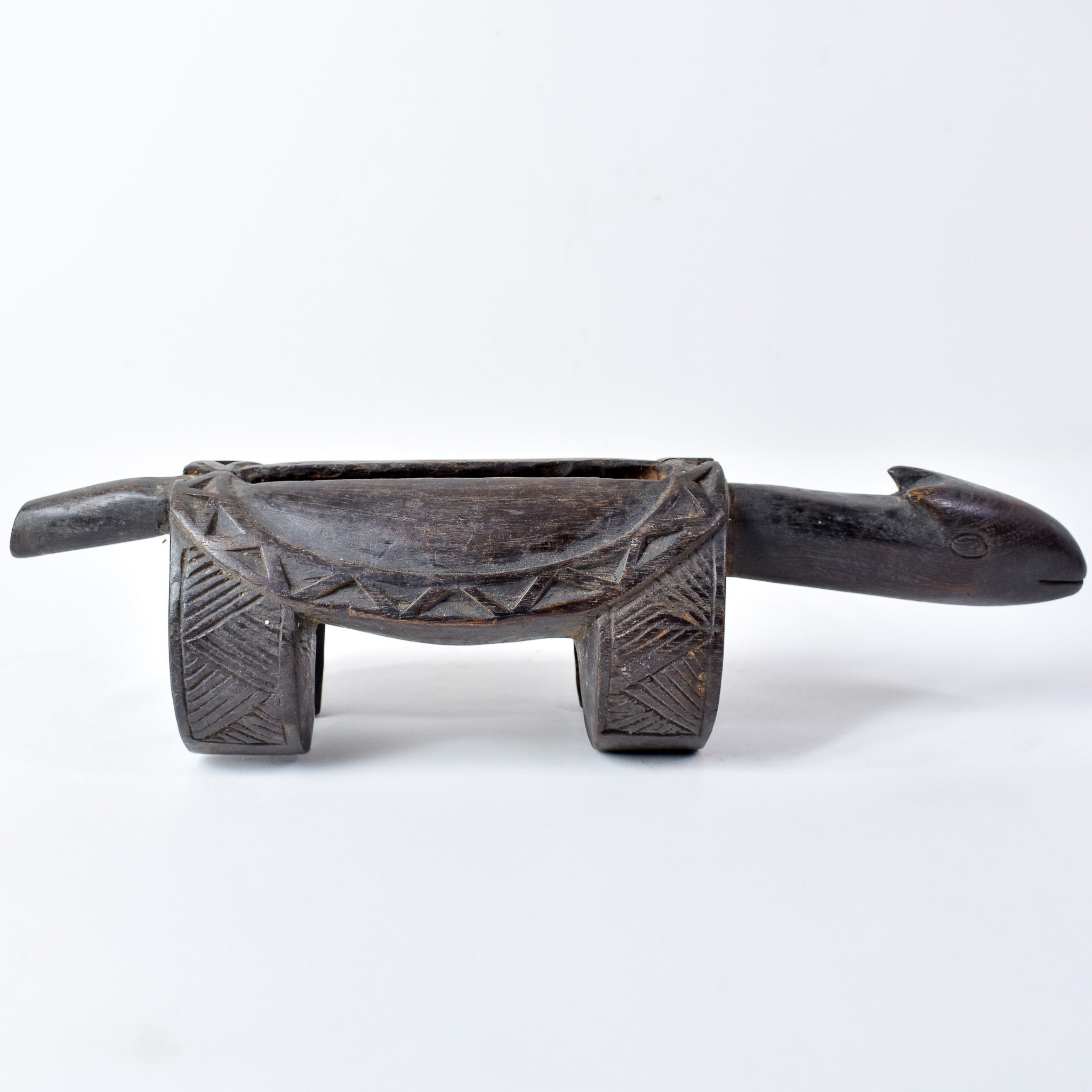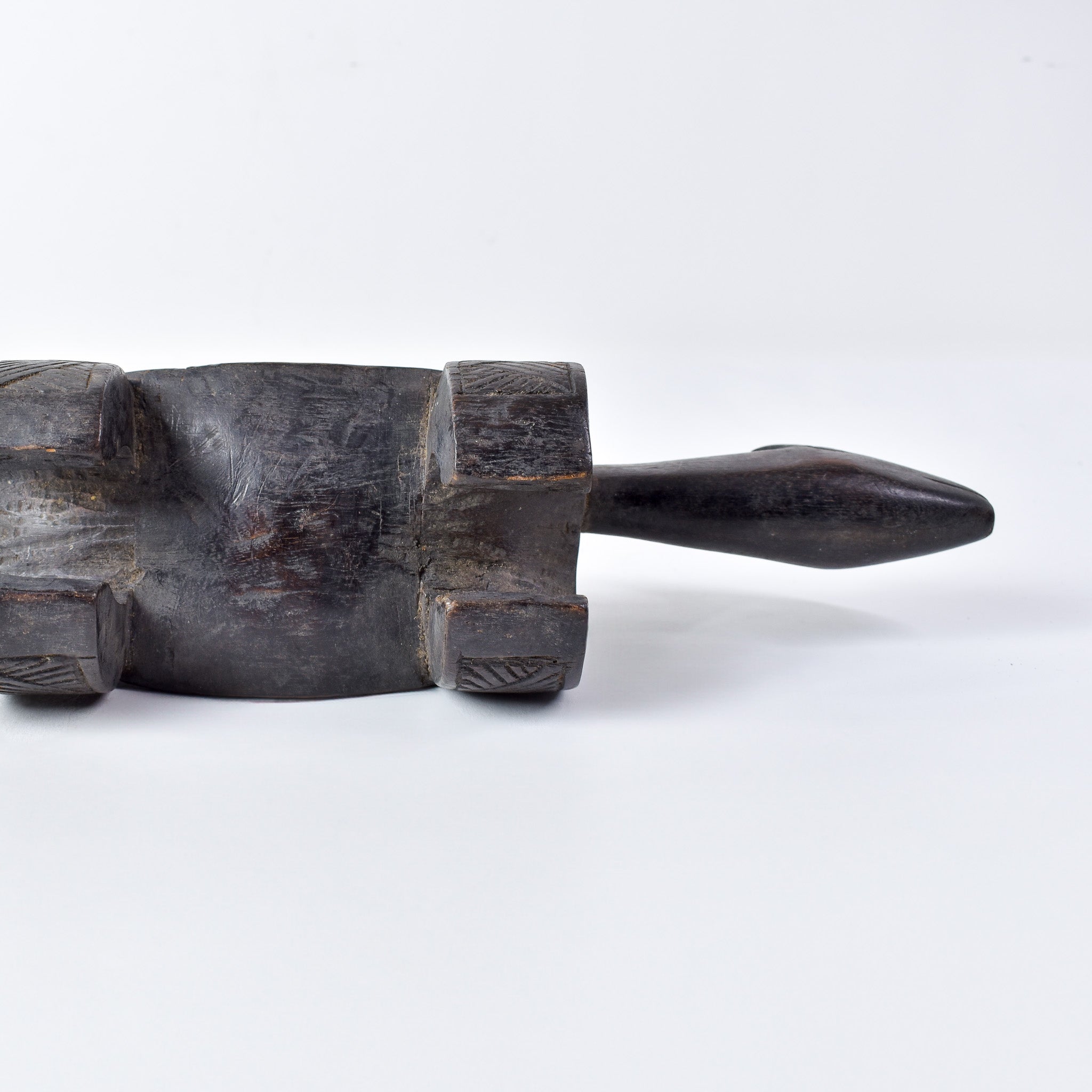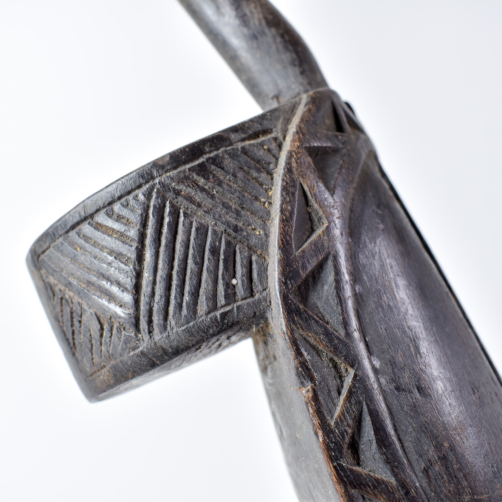 Living on the left bank of the Zaire River are the Lengola people, who number 100,000. Several ethnicities are also found in this region -- the Mbole, the Yela, and the Metoko, and among them, it is difficult to distinguish since their social structure is similar. They make their living from banana farming and hunting. The Butoka society regulates its social, political and economic activities. The Lengola had rituals of circumcision and initiation. Divided into lineages, they are very intricately crossed to the point where statues sculpted by one group may be found among another. Lengola produces large statues, Butoka, which are made of six pieces of wood and have apotropaic functions and ensure social stability. Abstract, polychrome masks were used during the closing initiation rite, when the statues would be ceremonially brought out. Masks, somewhat influenced by Lega style, are also produced.