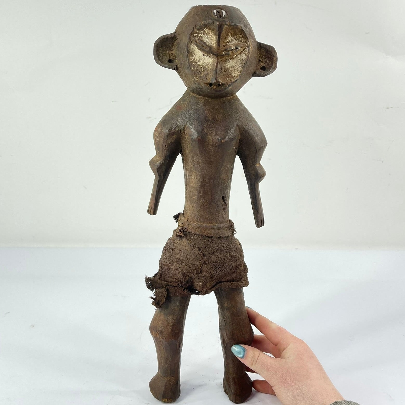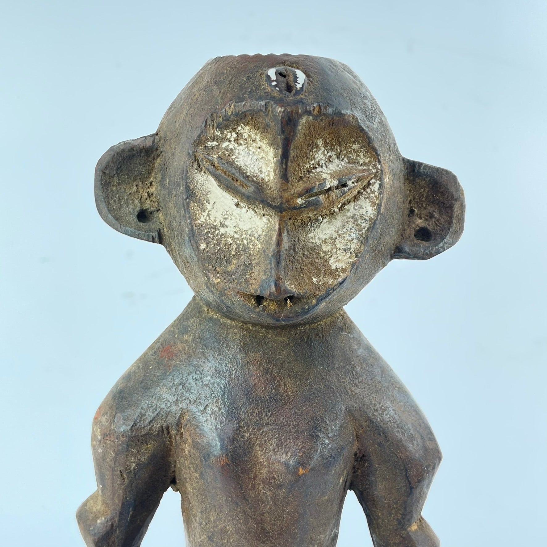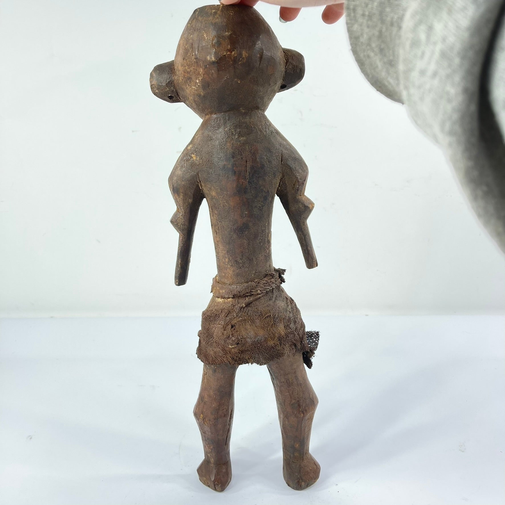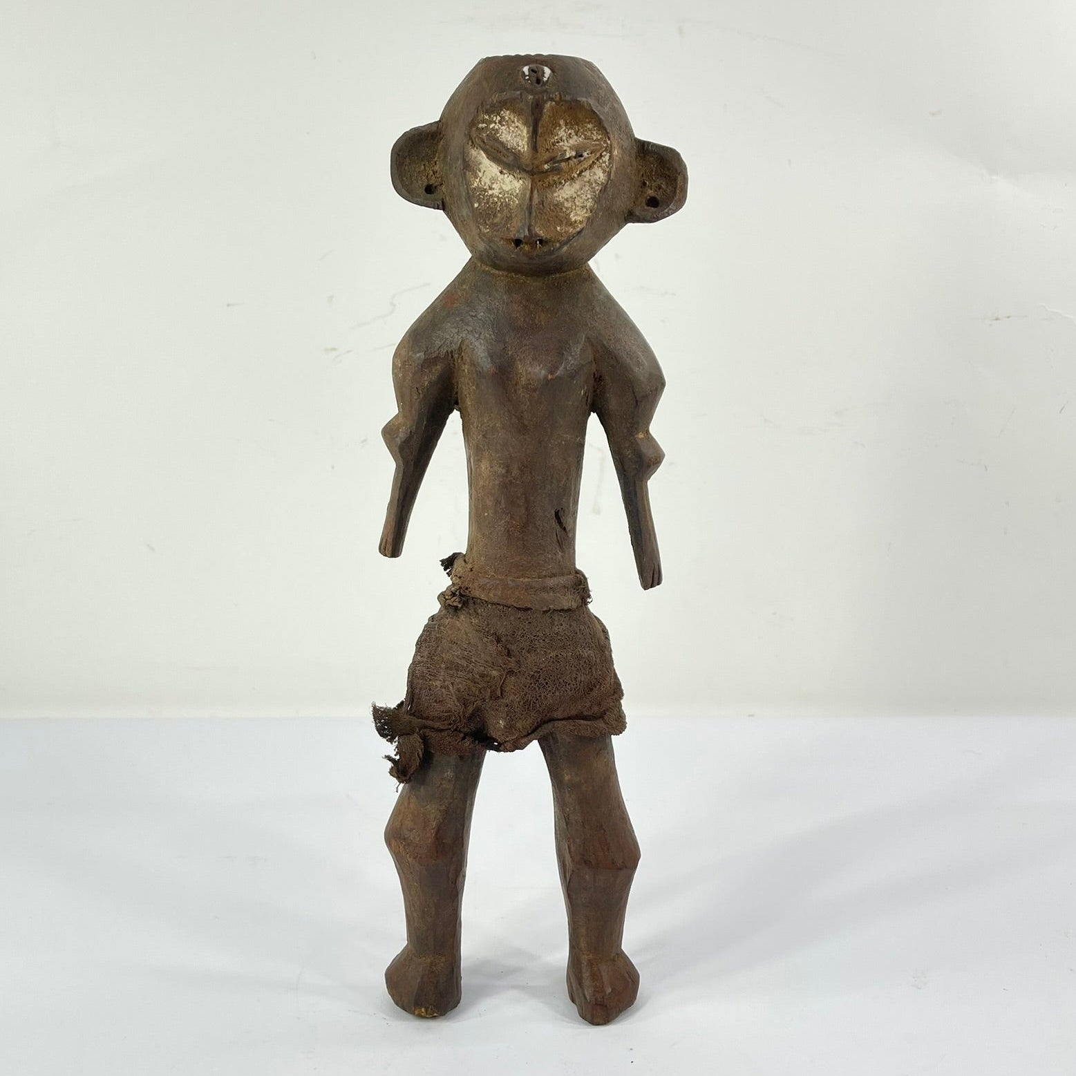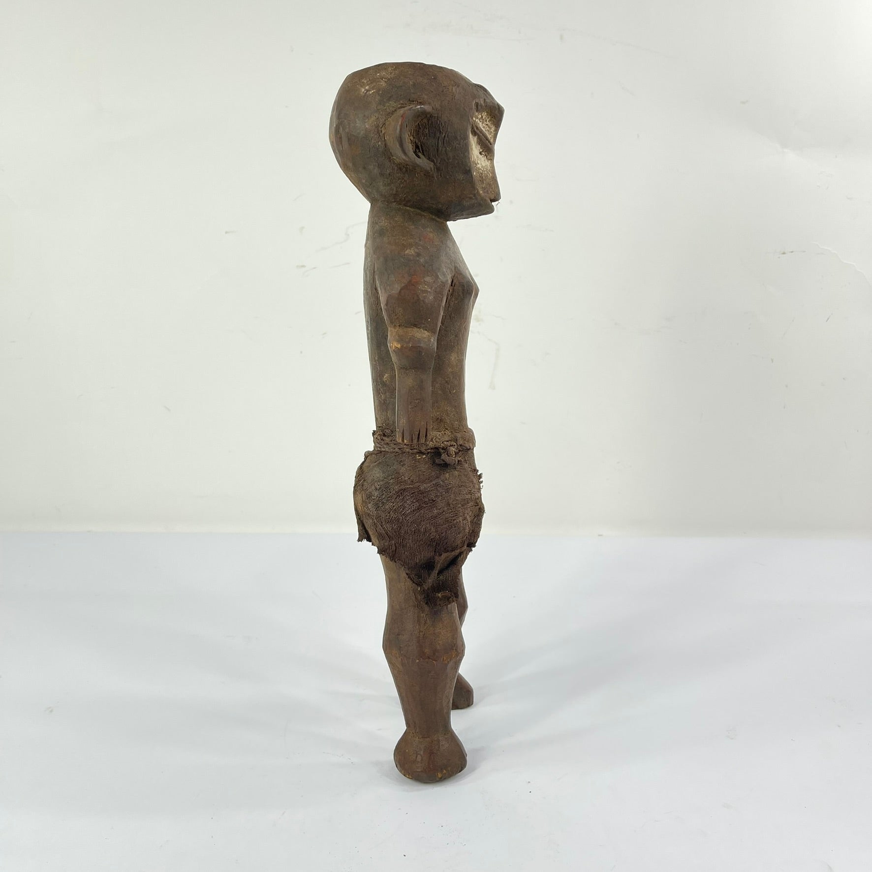 Living on the left bank of the Zaire River are the Lengola people, who number 100,000. Several ethnicities are also found in this region -- the Mbole, the Yela, and the Metoko, and among them it is difficult to distinguish since their social structure is similar. They make their living from banana farming and hunting. The Butoka society regulates their social, political and economic activities. The Lengola had rituals of circumcision and initiation. Divided into lineages, they are very intricately crossed to the point where statues sculpted by one group may be found among another. Lengola produce large statues Butoka, which are made of six pieces of wood and have apotropaic functions and ensure social stability. Abstract, polychrome masks were used during the closing initiation rite, when the statues would be ceremonially brought out. Masks, somewhat influenced by Lega style, are also produced.