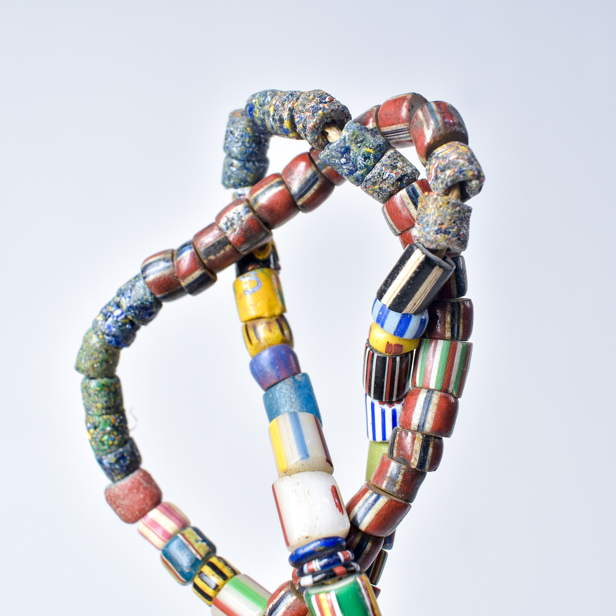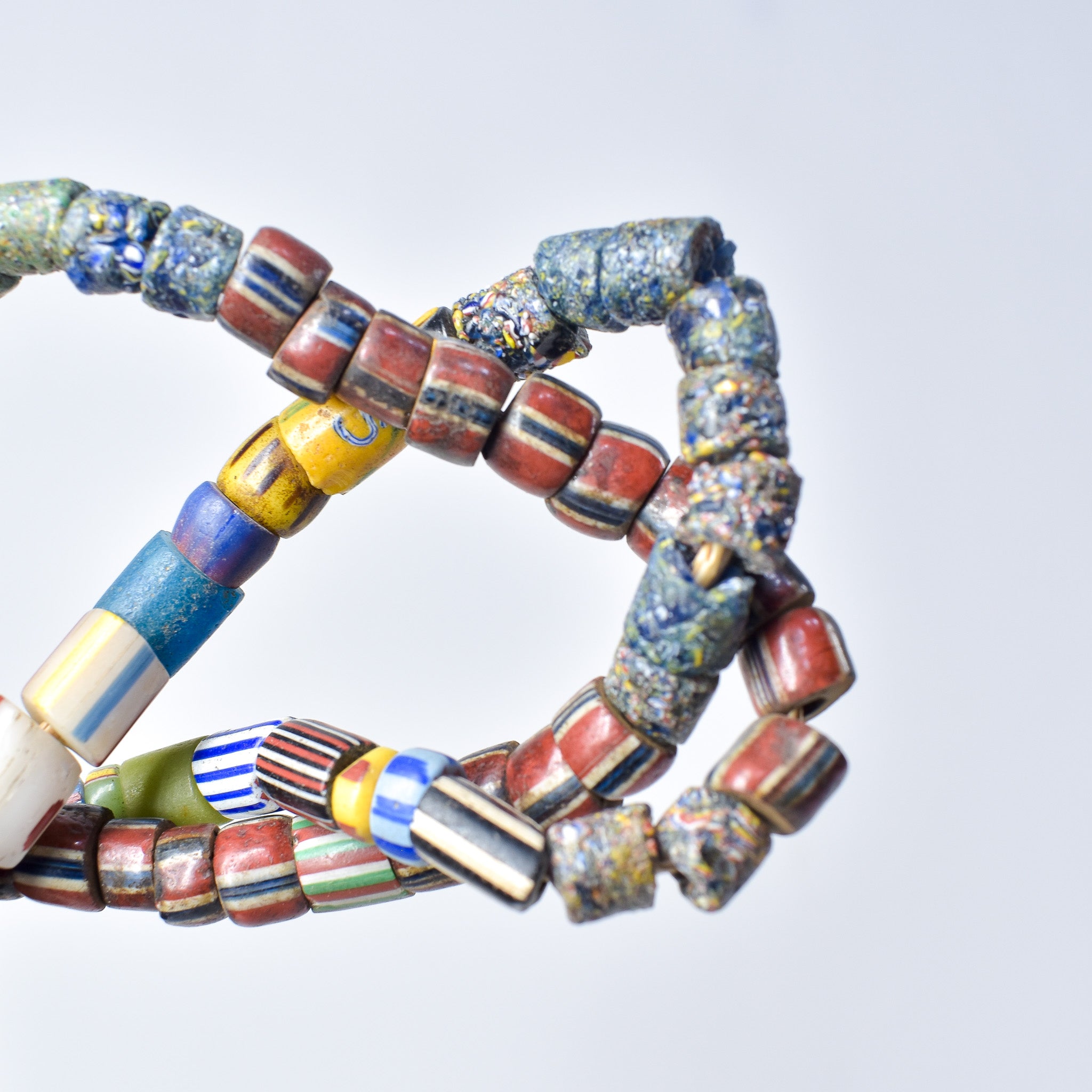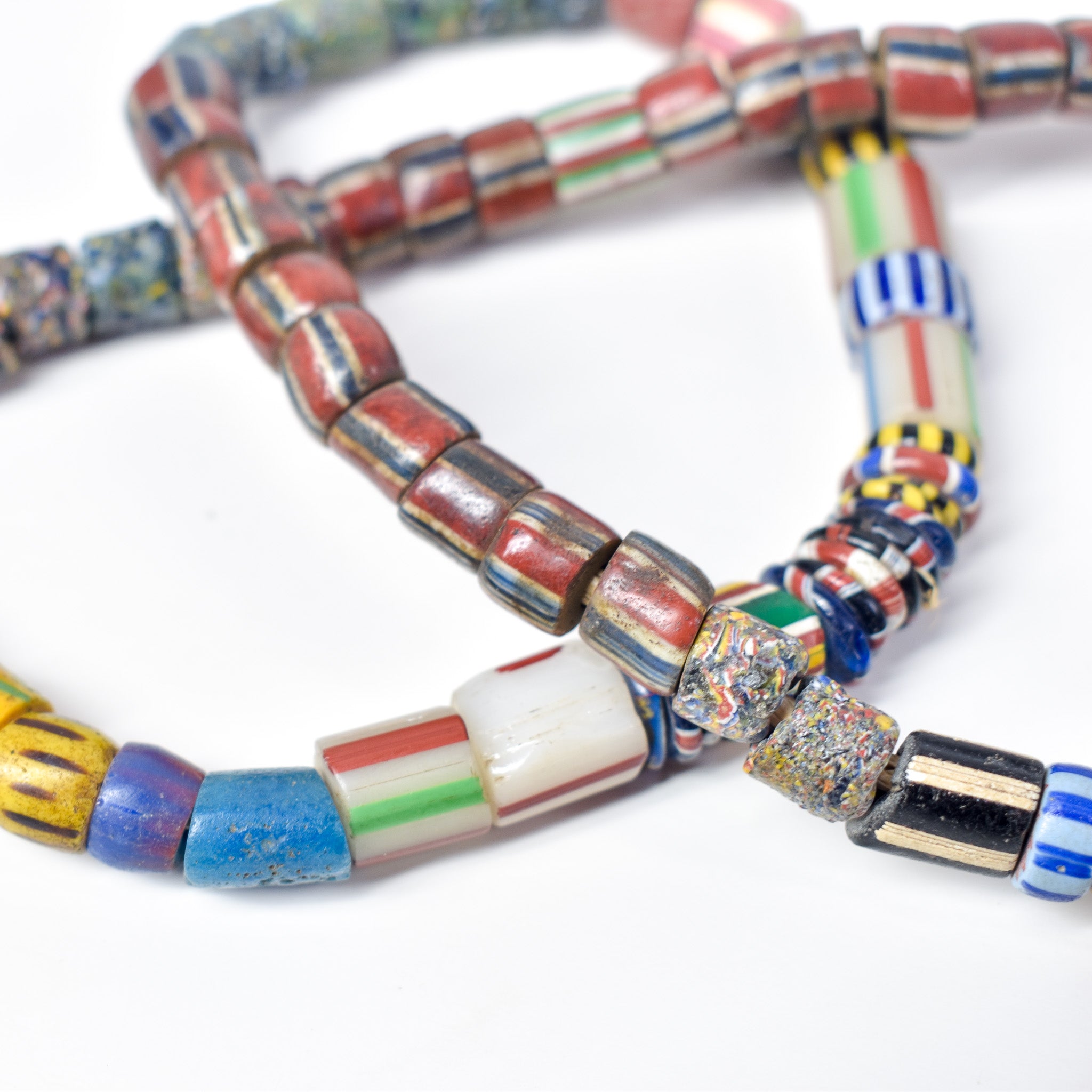 Trade beads, often made of glass, were crucial in historical trade between Europe, Africa, Asia, and the Americas. They were more than just decorative items; they served as currency, symbols of status, and carriers of cultural stories. Produced mainly in Europe, these beads gained immense popularity in Africa, where they were exchanged for valuable resources. Today, these beads are cherished by collectors and artists alike for their beauty, historical significance, and the stories they tell about global trade and cultural exchange.