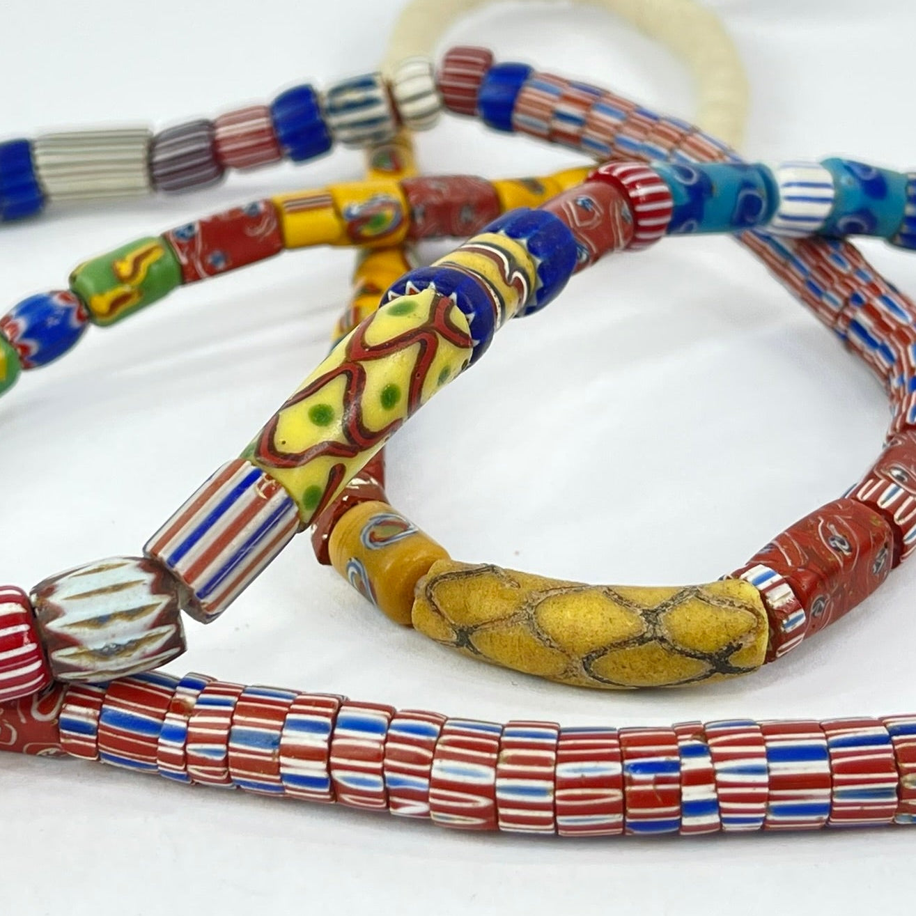 Trade beads, often made of glass, were crucial in historical trade between Europe, Africa, Asia, and the Americas. They were more than just decorative items; they served as currency, symbols of status, and carriers of cultural stories. Produced mainly in Europe, these beads gained immense popularity in Africa, where they were exchanged for valuable resources. Today, these beads are cherished by collectors and artists alike for their beauty, historical significance, and the stories they tell about global trade and cultural exchange.